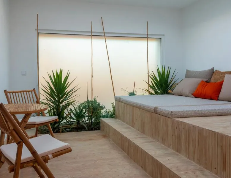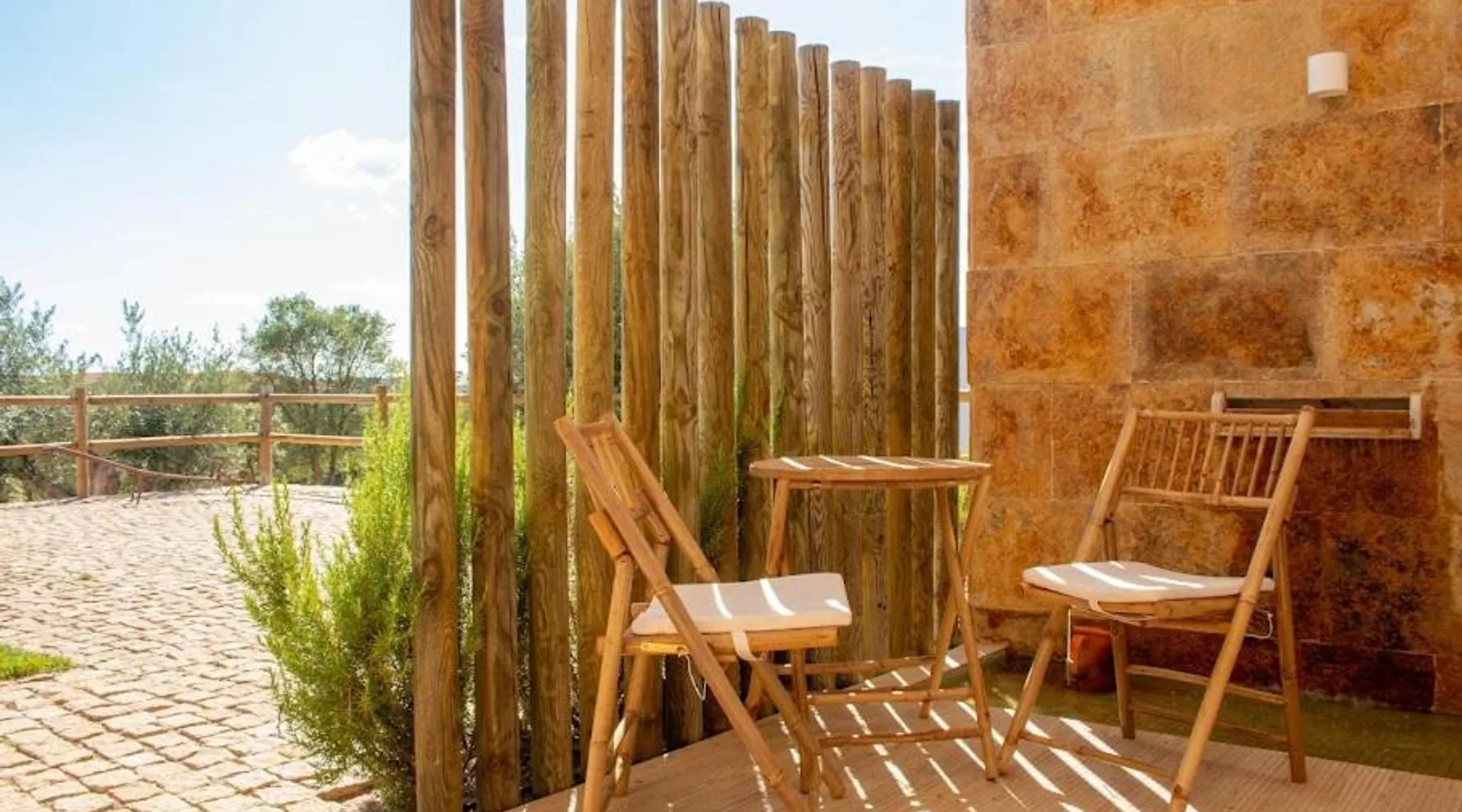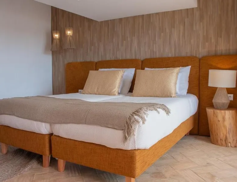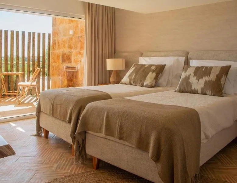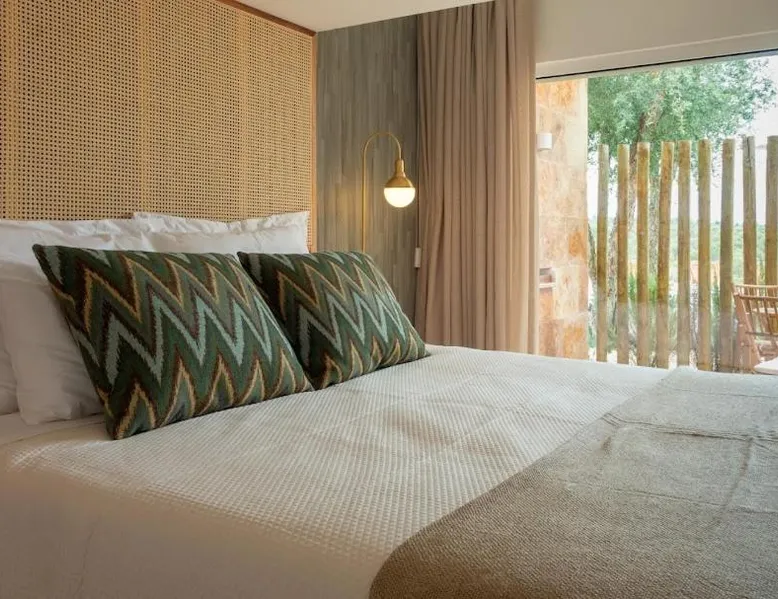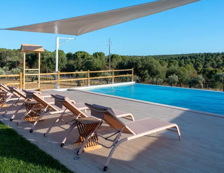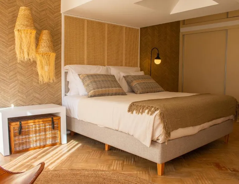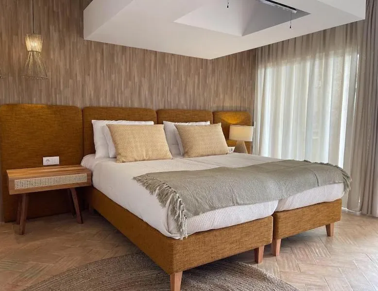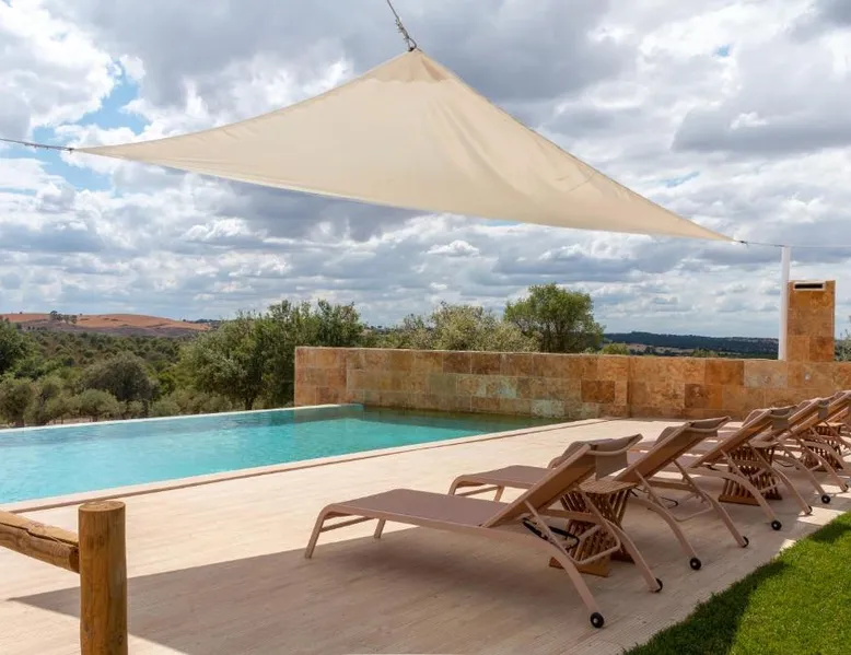 Comfortable Accommodations: Reflexos D'Alma Turismo Rural in Veiros offers family rooms with private bathrooms, air-conditioning, and garden or pool views. Each room includes a balcony, terrace, or patio, ensuring a pleasant stay. Exceptional Facilities: Guests enjoy an infinity swimming pool, sun terrace, and lush garden. The property features a bar, coffee shop, and outdoor seating area. Free WiFi is available throughout the farm stay. Delicious Breakfast: A continental breakfast is served daily, including local specialties, fresh pastries, cheese, fruits, and juice. The breakfast is highly praised by guests for its quality and variety. Convenient Location: Located 9.3 mi from the Convent of the Congregados and 21 mi from Vila Viçosa Castle, the farm stay provides easy access to local attractions. Free on-site private parking is available. This double room features a pool with a view. This air-conditioned double room is consisted of of a flat-screen TV with streaming services, a private bathroom as well as a terrace with garden views. The unit has 1 bed.
