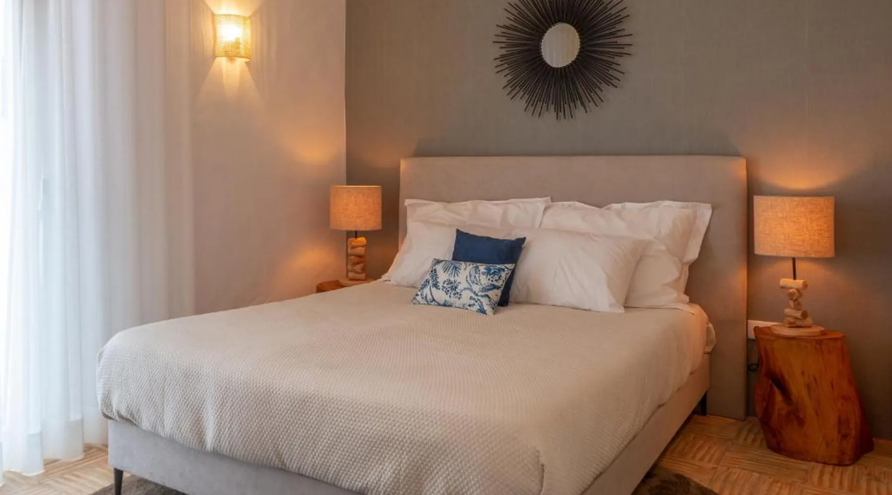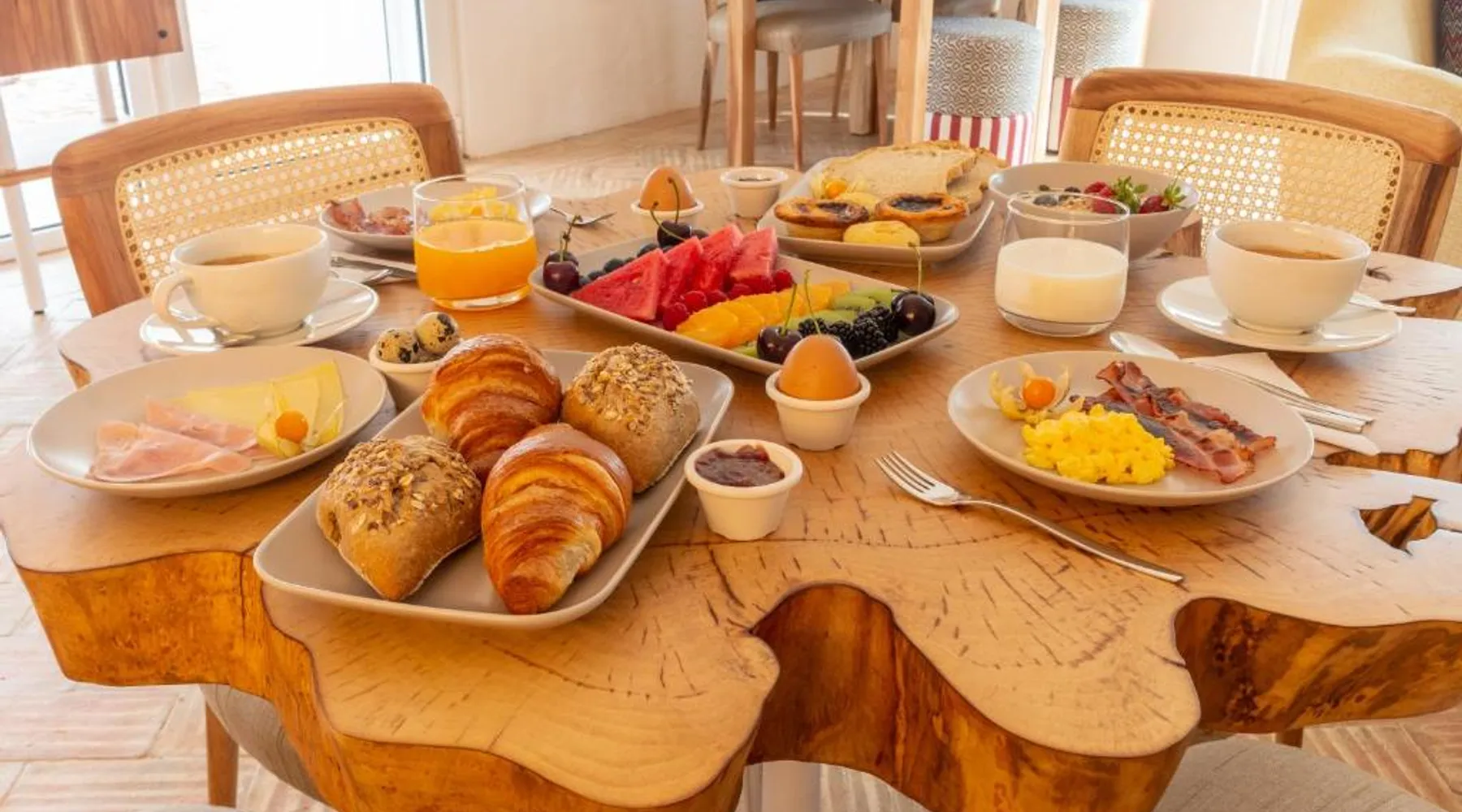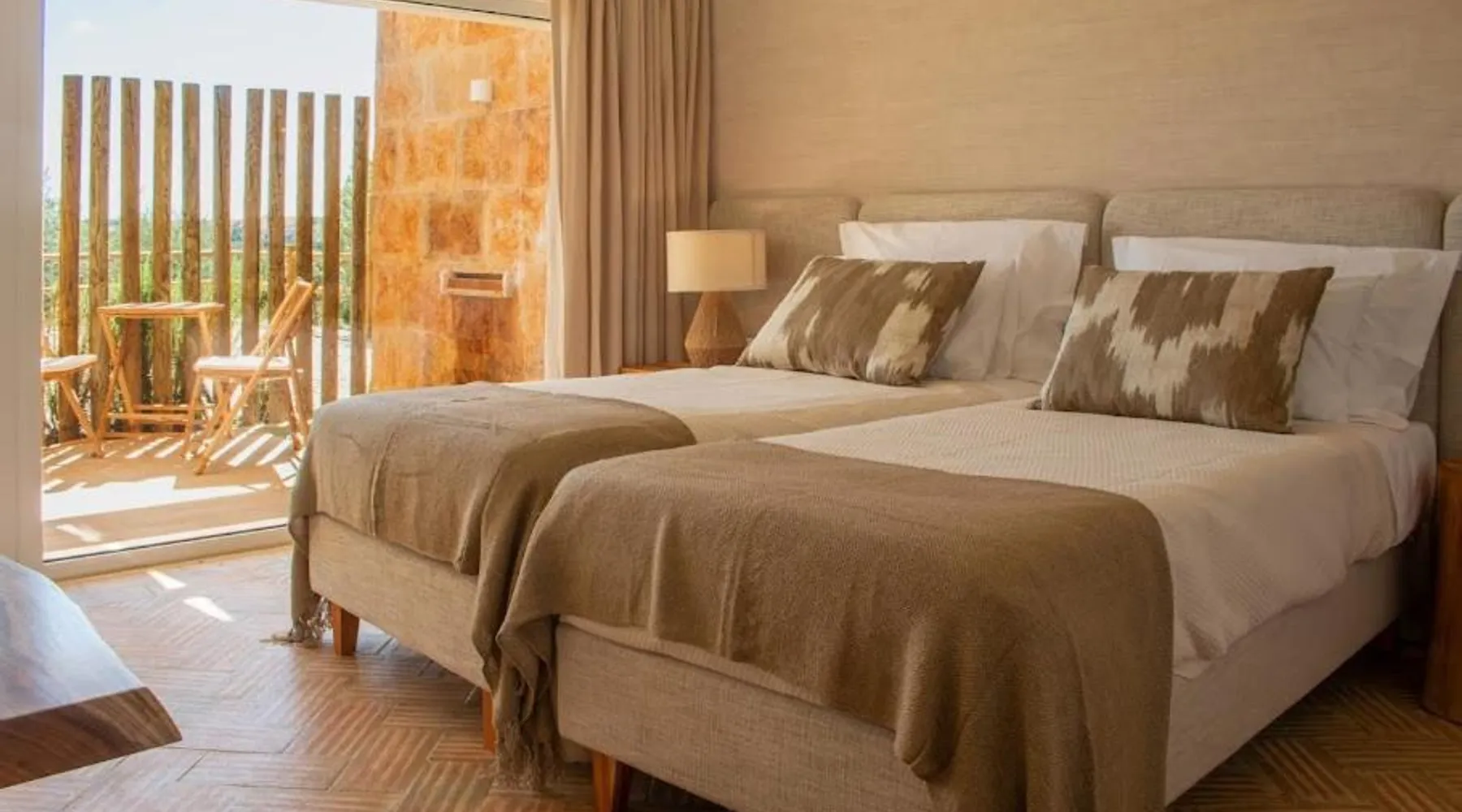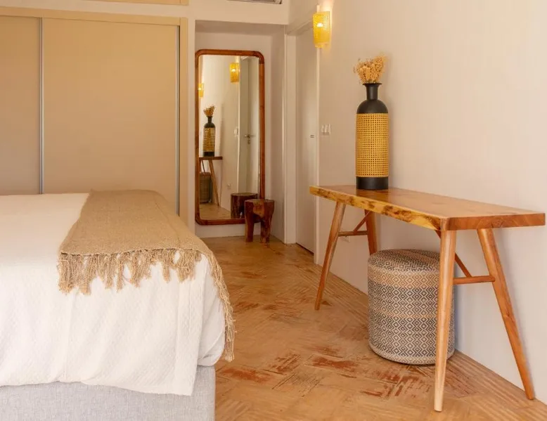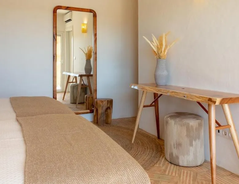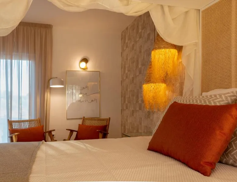 Comfortable Accommodations: Reflexos D'Alma Turismo Rural in Veiros offers family rooms with private bathrooms, air-conditioning, and garden or pool views. Each room includes a balcony, terrace, or patio, ensuring a pleasant stay. Exceptional Facilities: Guests enjoy an infinity swimming pool, sun terrace, and lush garden. The property features a bar, coffee shop, and outdoor seating area. Free WiFi is available throughout the farm stay. Delicious Breakfast: A continental breakfast is served daily, including local specialties, fresh pastries, cheese, fruits, and juice. The breakfast is highly praised by guests for its quality and variety. Convenient Location: Located 9.3 mi from the Convent of the Congregados and 21 mi from Vila Viçosa Castle, the farm stay provides easy access to local attractions. Free on-site private parking is available. This double room features a pool with a view. This air-conditioned double room is consisted of of a flat-screen TV with streaming services, a private bathroom as well as a terrace with garden views. The unit has 1 bed.