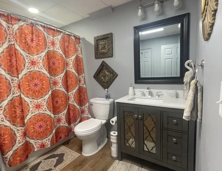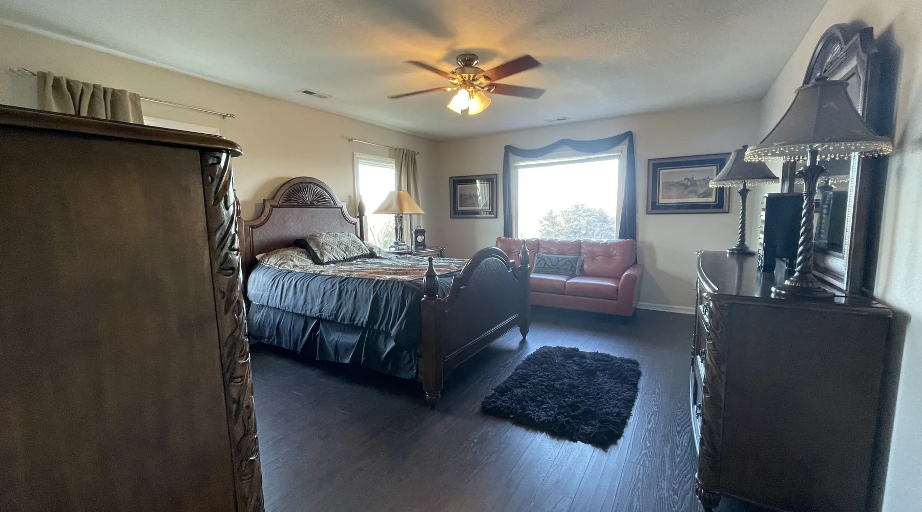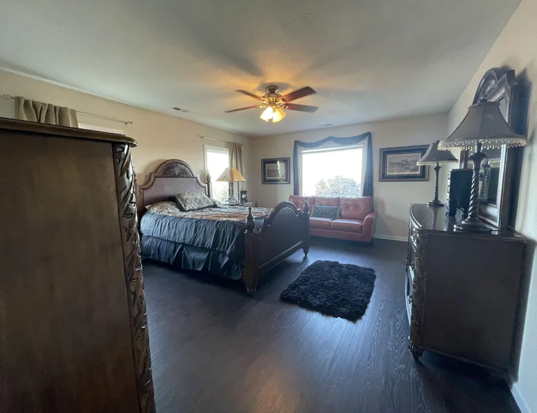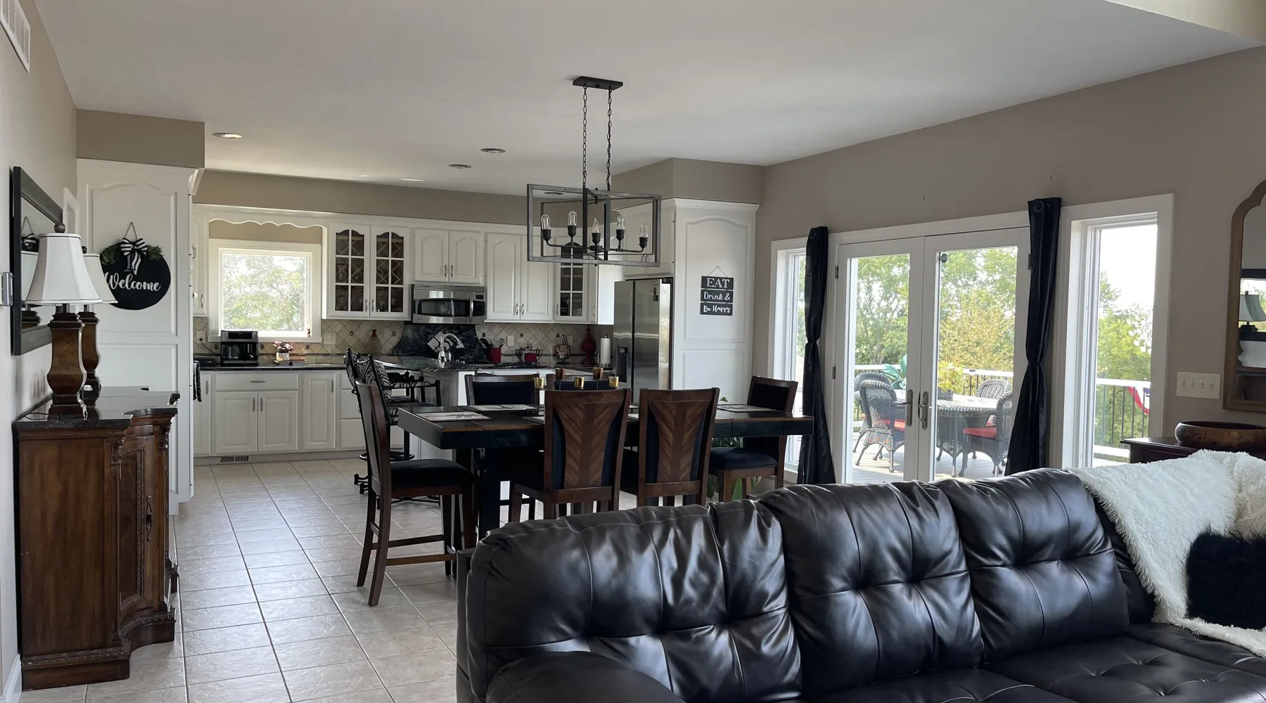 Beautiful large home enough room for everyone to find a space to escape! Hot tub to relax and unwind while the kids are playing basketball, having fun on the swing set, or in the pool. Once you enter the front door the outside view comes into the greatroom!!! the main floor of the house you will immediately be drawn to the great room and the floor to ceiling windows and the beautiful scenery that floods in from outdoors. The sunrises from here are definitely worth the early morning wake up. Walking through the great room you will see one of two dining areas, this one offers seating for 6, with additional bar seating in the kitchen. The deck with a grill overlooks the pool. There are two bedrooms on the main floor and 3 upstairs with two queen beds and 2 king beds.