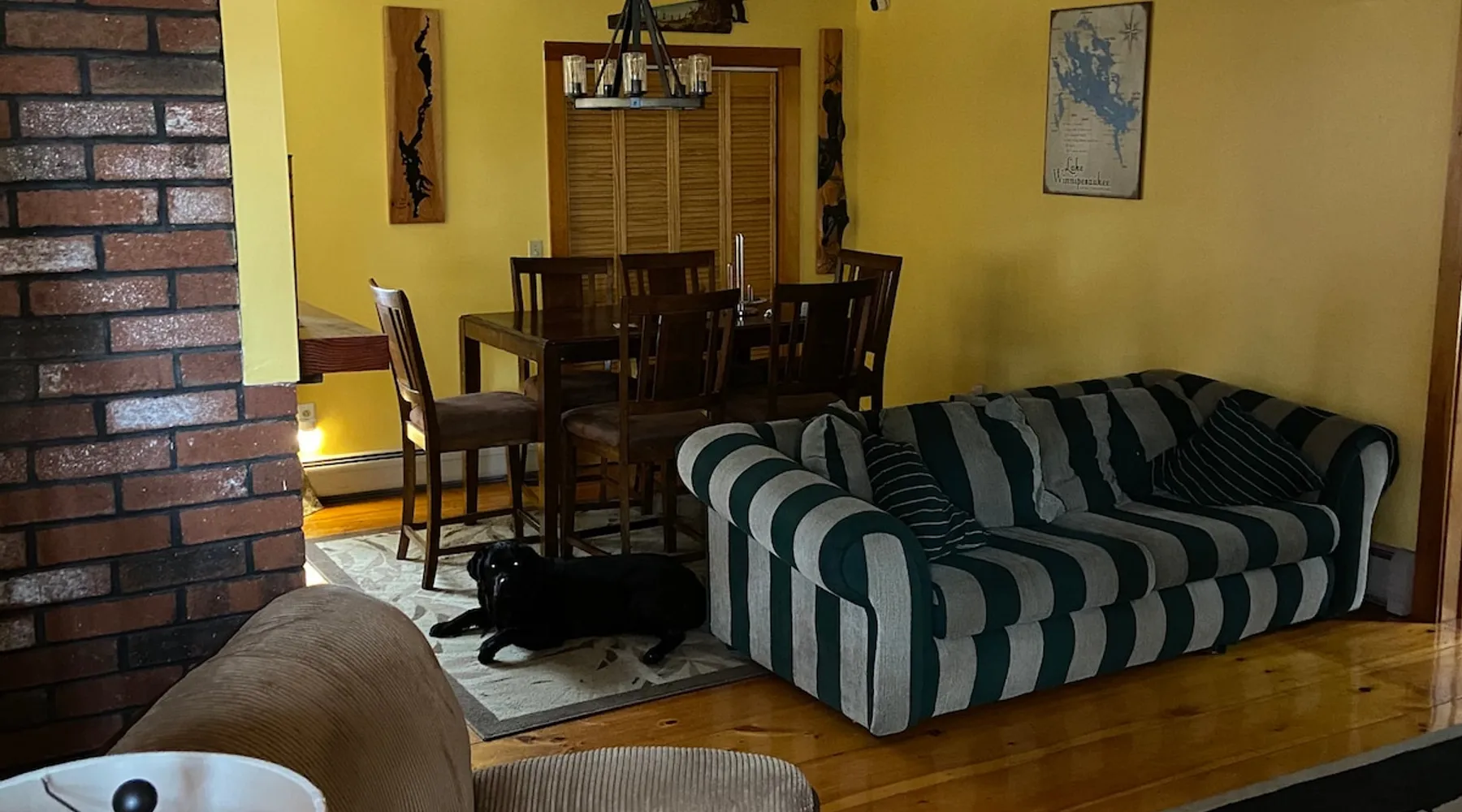Tucked away on the hill on Stonedam Circle, this cozy three bedroom, 1.5 bathroom home boasts Lake Winnipesaukee access, including access to Hubbard beach and Fish Cove. Ideal for a peaceful getaway with your family. By day enjoy swimming, kayaking, and a private sandy beach or in the winter enjoy skiing at Gunstock (28 minutes away). House was featured in 2019 Movie "Alternate Ground". The space The house has a cabin feel to it, with a deck on the front with a gas grill. Two bedrooms upstairs- one on main level. Full bathroom with shower and tub on main level. Bathroom with claw foot tub on second floor. Living room with fire place, 50 inch TV with cable, dining room table , and bonus room with additional 50 inch TV. Basement has washer, dryer and ping pong table. House is .25 mile (down road to fishing and kayak access to Fish Cove). Association sandy beach access is .5 mile from house, perfect for small children. House is situated on a hill and up a driveway. Trailers should not be brought up driveway, as there is no way to turn around. Guest access Entire house access-shed is locked, some closets are locked Other things to note . Bring your bathing suits for beach.