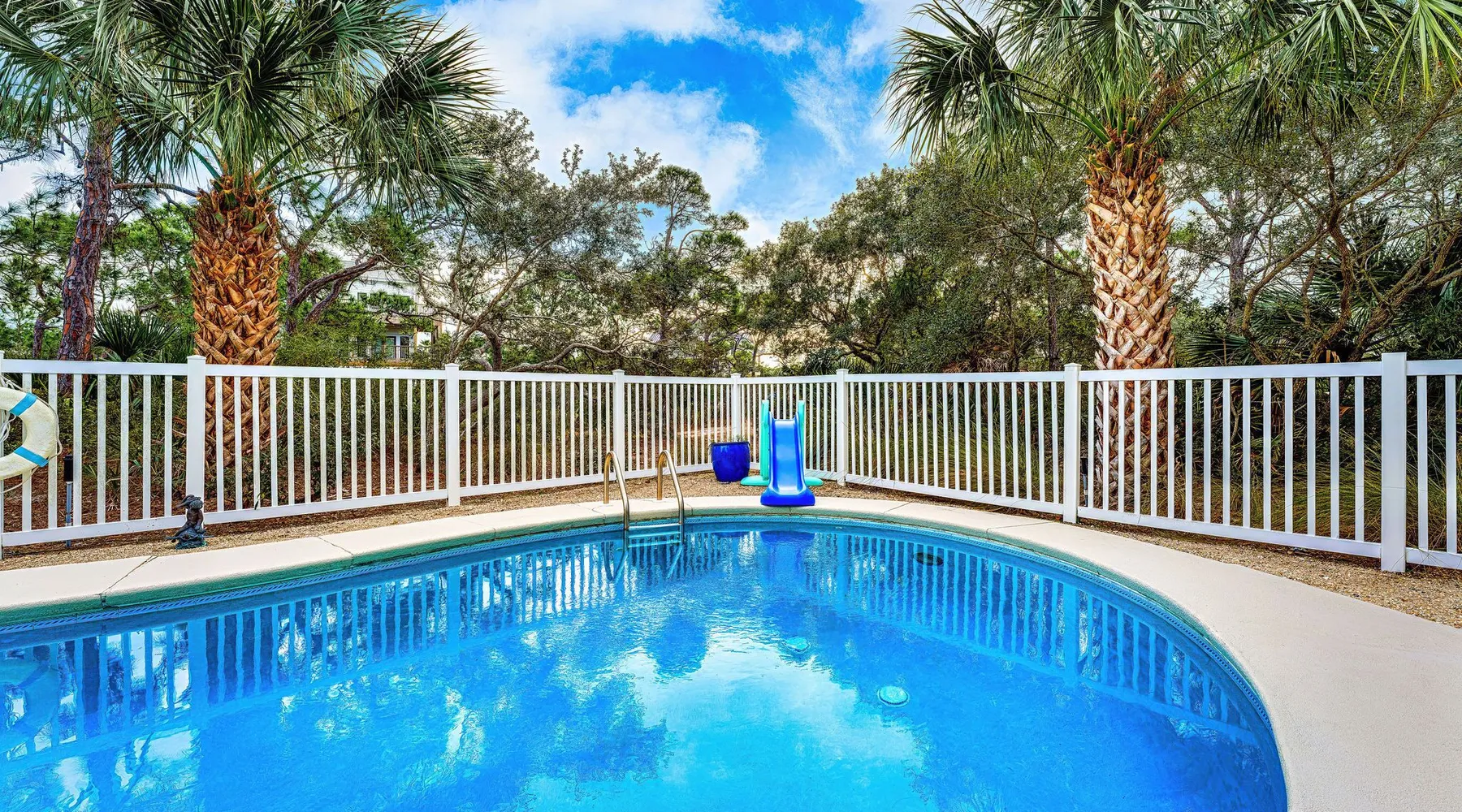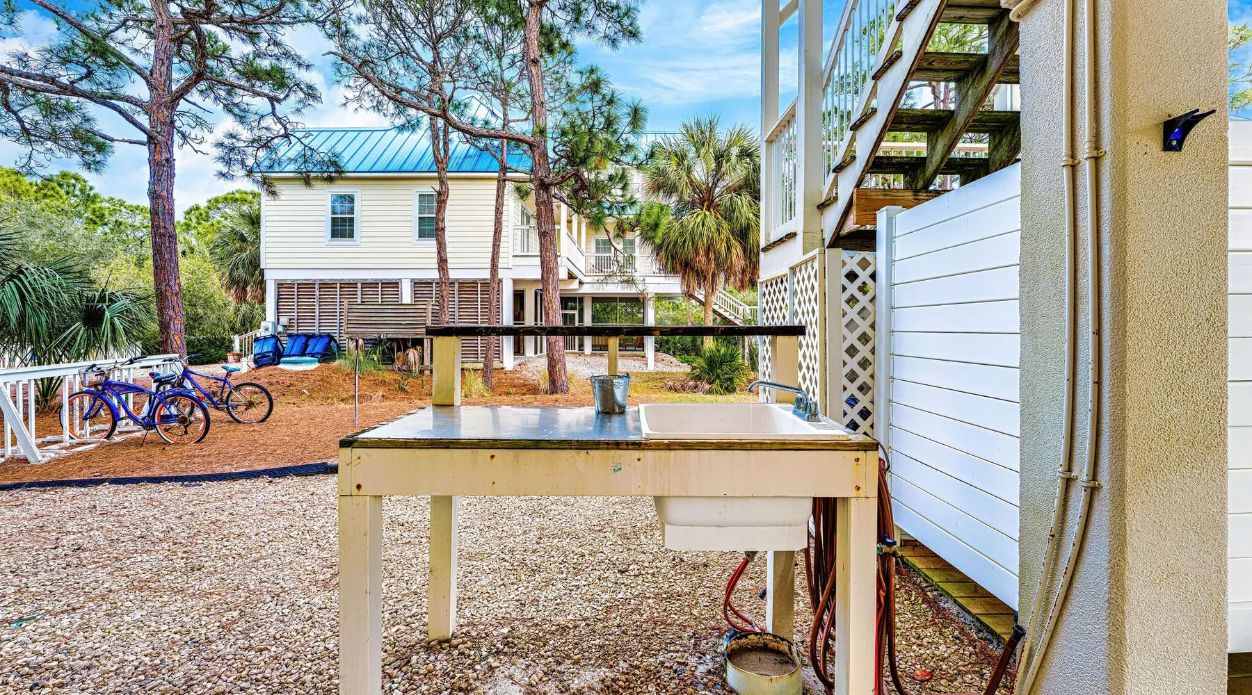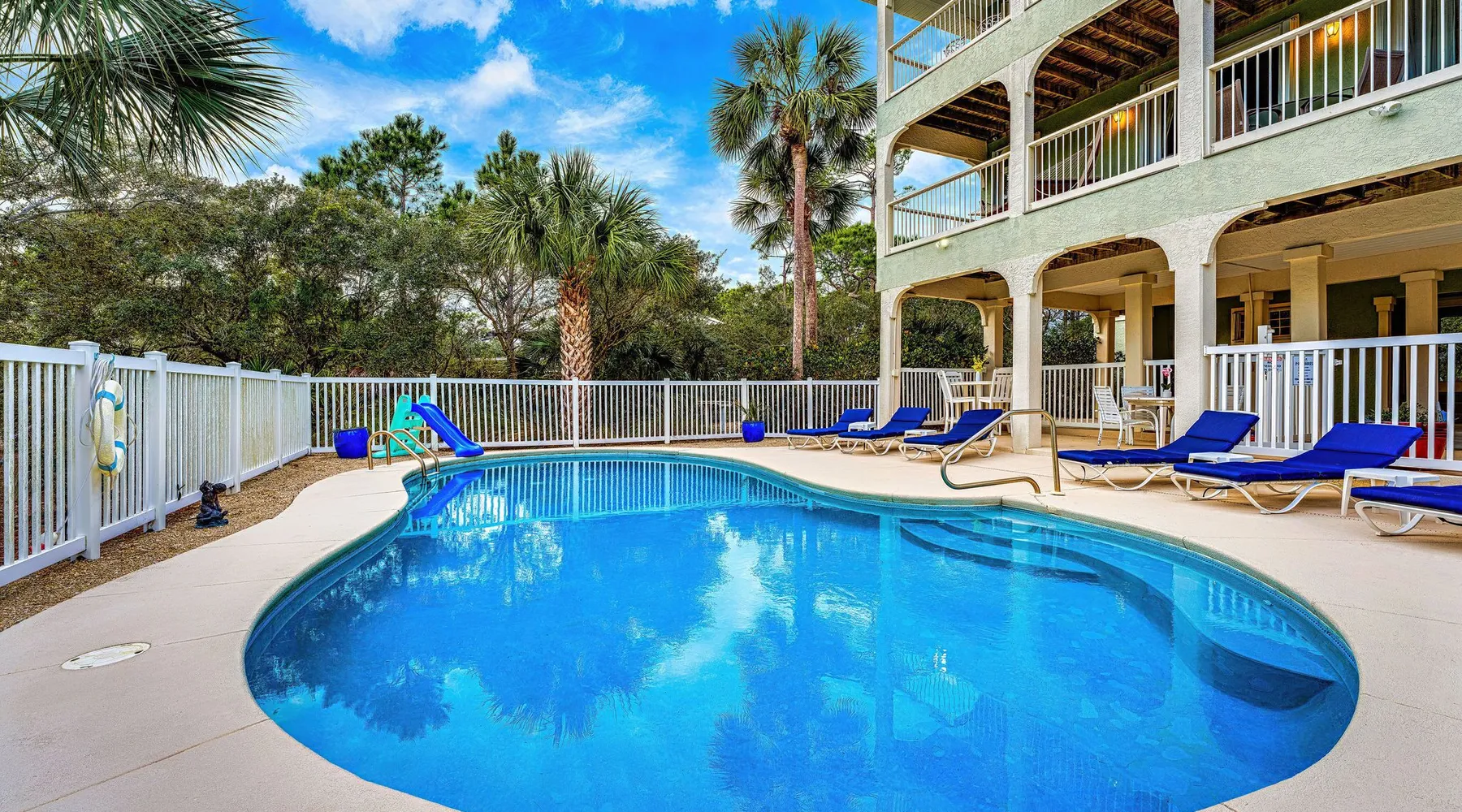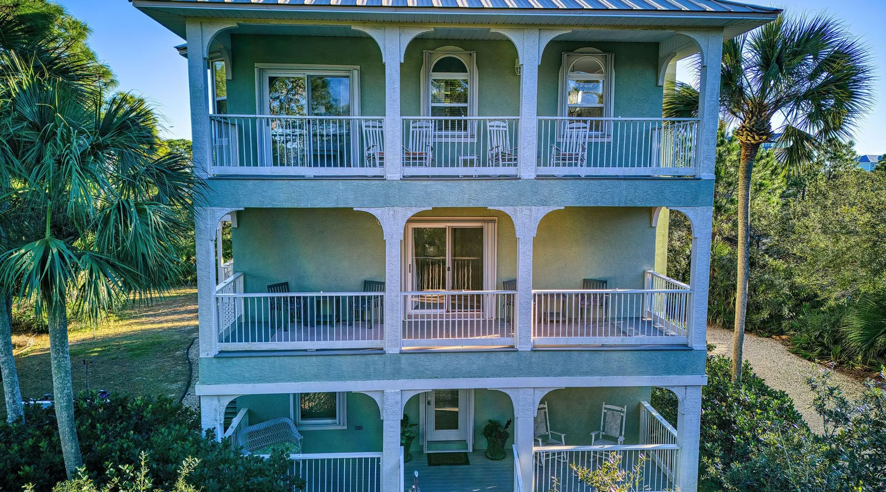 This charming beach vacation home in the exclusive St. George Plantation community features a private swimming pool, spacious decks to take in coastal views and Island breezes, comfortable beachy décor and community amenities including beach boardwalks, multi-use paths, nature trails, access to Bob Sikes Cut, fitness center, 2 Olympic sized swimming pools and tennis and pickleball courts! Just a short walk to our award-winning white sugar sands beaches, this property sleeps 12, so bring the whole family! Although secluded in a gated community, Top 'Sea Turvy Turtle is just minutes by car to local restaurants, nightlife, St. George Lighthouse Museum and playground, fishing pier and State Park. Apalachicola's shops, restaurants and arts scene are just 30 minutes by car, so this property delivers an amazing, secluded location with the best of the Forgotten Coast within easy reach! The exterior of this vacation home features plenty of private parking, a beautiful private swimming pool with lounge chairs, community path to the beach and enclosed outdoor shower. The fish cleaning station and gas grill are perfect for preparing that Fresh from Florida seafood feast. A short set of stairs leads to the covered deck overlooking the driveway. Entering Top 'Sea Turvy Turtle, the tiled foyer greets you. The laundry room with full sized washer and dryer is on the first floor, as well as access to a large deck overlooking the gated, sparkling pool. Stairs take you to the second level's sleeping accommodations. The beautiful large king master bedroom with flat screen TV features private deck access, full bathroom featuring a jetted tub and separate shower stall. A bedroom with a queen bed, flat screen TV and private deck access and bunk room with a twin/full bunk bed, separate single bed and flat screen TV share a full bathroom in the hallway. The third floor of Top 'Sea Turvy Turtle provides lots of open space for your crew to gather in the comfortable living/dining/kitchen area. The living area with smart TV provides indoor entertainment options and the large deck off this living area offers outdoor spaces to enjoy coastal views and Island breezes. The fully stocked kitchen has lots of counter space and stainless appliances and the kitchen counter with 4 stools provides a great spot for visiting with the chef in your crew while the dining table comfortably seats 8, providing plenty of room for everyone at mealtime. The queen master bedroom on this floor has a full bath and direct access to a private deck. An additional half bath off the living area on the third floor offers additional guest convenience. Bed Sizes: 1 King, 2 Queen, 1 Bunk bed (Single/Double), 1 Twin SPECIAL AMENITIES AND PROPERTY RULES Sorry, fireplace is not available for guest use. Golf carts are not allowed with vacation rentals in St. George Plantation. Your beach vacation rental through Gulf Coast Vacation Properties includes a$250 beach gear credit that can be applied to beach chairs, umbrellas, bicycles, paddleboards, kayaks, beach wagons and more! 2026 Monthly Rates (before taxes): January (Jan 3-Jan 30) - $5985 February (Jan 31-Feb 27) - $5985 March (Feb 28-March 27) - $6995 September (Sept 5-Oct 2) - $6995 October (Oct 3-Oct 30) - $6995 November (Oct 31-Nov 28) - $6995 December (Dec 5-Jan 1) - $5985