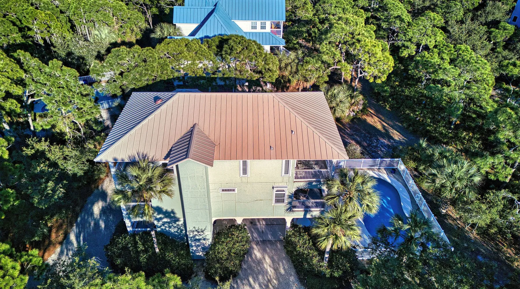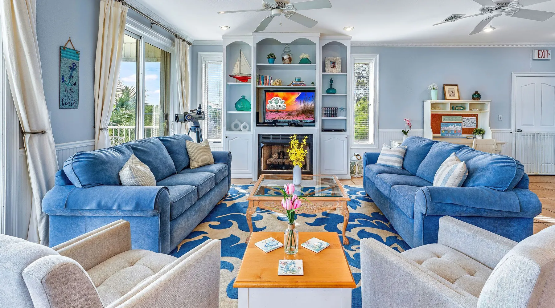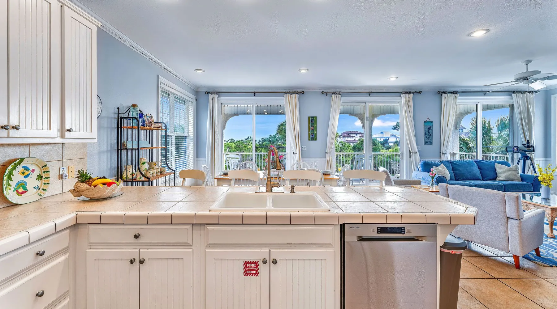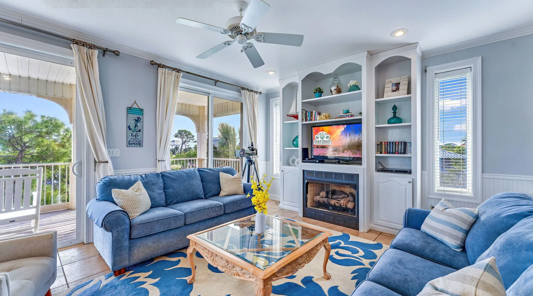This charming beach vacation home in the exclusive St. George Plantation community features a private swimming pool, spacious decks to take in coastal views and Island breezes, comfortable beachy décor and community amenities including beach boardwalks, multi-use paths, nature trails, access to Bob Sikes Cut, fitness center, 2 Olympic sized swimming pools and tennis and pickleball courts! Just a short walk to our award-winning white sugar sands beaches, this property sleeps 12, so bring the whole family! Although secluded in a gated community, Top 'Sea Turvy Turtle is just minutes by car to local restaurants, nightlife, St. George Lighthouse Museum and playground, fishing pier and State Park. Apalachicola's shops, restaurants and arts scene are just 30 minutes by car, so this property delivers an amazing, secluded location with the best of the Forgotten Coast within easy reach! The exterior of this vacation home features plenty of private parking, a beautiful private swimming pool with lounge chairs, community path to the beach and enclosed outdoor shower. The fish cleaning station and gas grill are perfect for preparing that Fresh from Florida seafood feast. A short set of stairs leads to the covered deck overlooking the driveway. Entering Top 'Sea Turvy Turtle, the tiled foyer greets you. The laundry room with full sized washer and dryer is on the first floor, as well as access to a large deck overlooking the gated, sparkling pool. Stairs take you to the second level's sleeping accommodations. The beautiful large king master bedroom with flat screen TV features private deck access, full bathroom featuring a jetted tub and separate shower stall. A bedroom with a queen bed, flat screen TV and private deck access and bunk room with a twin/full bunk bed, separate single bed and flat screen TV share a full bathroom in the hallway. The third floor of Top 'Sea Turvy Turtle provides lots of open space for your crew to gather in the comfortable living/dining/kitchen area. The living area with smart TV provides indoor entertainment options and the large deck off this living area offers outdoor spaces to enjoy coastal views and Island breezes. The fully stocked kitchen has lots of counter space and stainless appliances and the kitchen counter with 4 stools provides a great spot for visiting with the chef in your crew while the dining table comfortably seats 8, providing plenty of room for everyone at mealtime. The queen master bedroom on this floor has a full bath and direct access to a private deck. An additional half bath off the living area on the third floor offers additional guest convenience. Bed Sizes: 1 King, 2 Queen, 1 Bunk bed (Single/Double), 1 Twin SPECIAL AMENITIES AND PROPERTY RULES Sorry, fireplace is not available for guest use. Golf carts are not allowed with vacation rentals in St. George Plantation. Your beach vacation rental through Gulf Coast Vacation Properties includes a$250 beach gear credit that can be applied to beach chairs, umbrellas, bicycles, paddleboards, kayaks, beach wagons and more! 2026 Monthly Rates (before taxes): January (Jan 3-Jan 30) - $5985 February (Jan 31-Feb 27) - $5985 March (Feb 28-March 27) - $6995 September (Sept 5-Oct 2) - $6995 October (Oct 3-Oct 30) - $6995 November (Oct 31-Nov 28) - $6995 December (Dec 5-Jan 1) - $5985