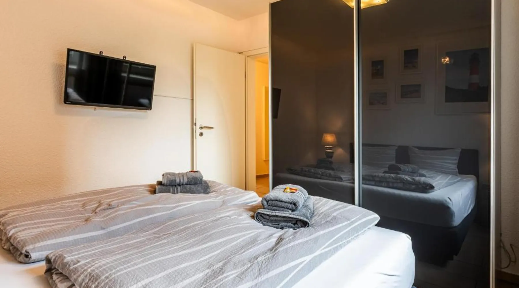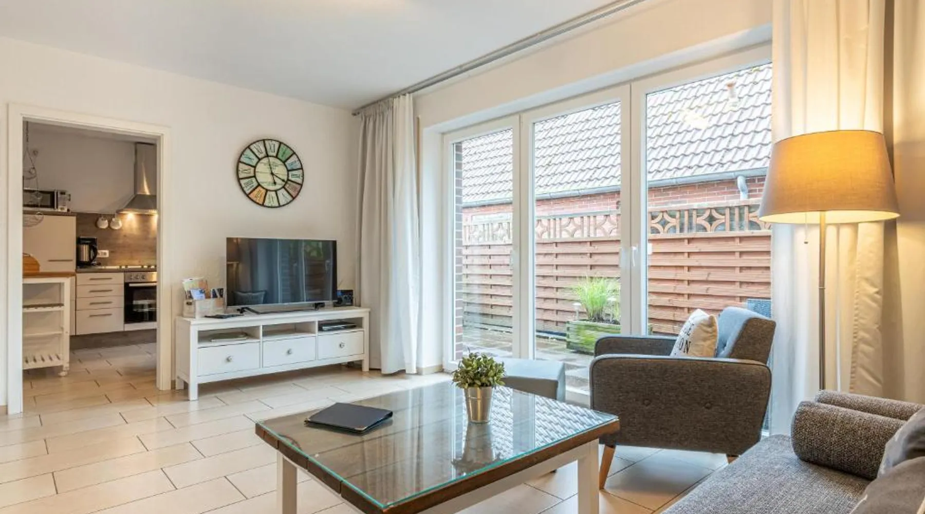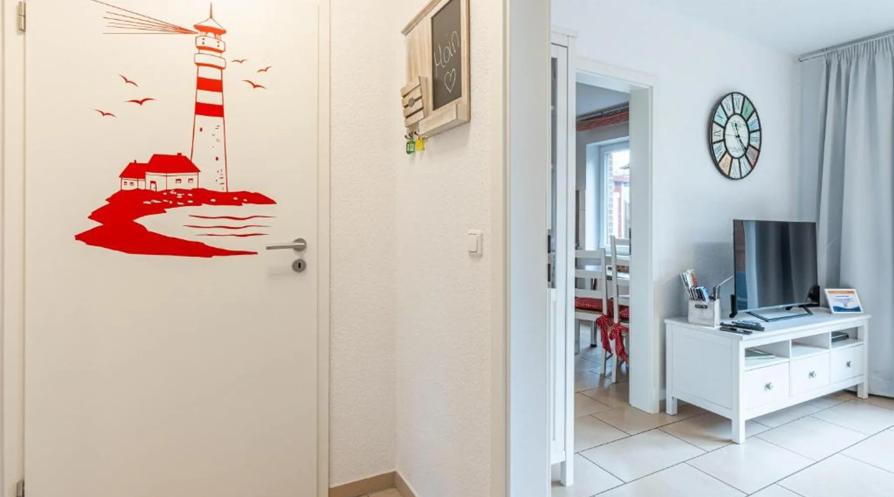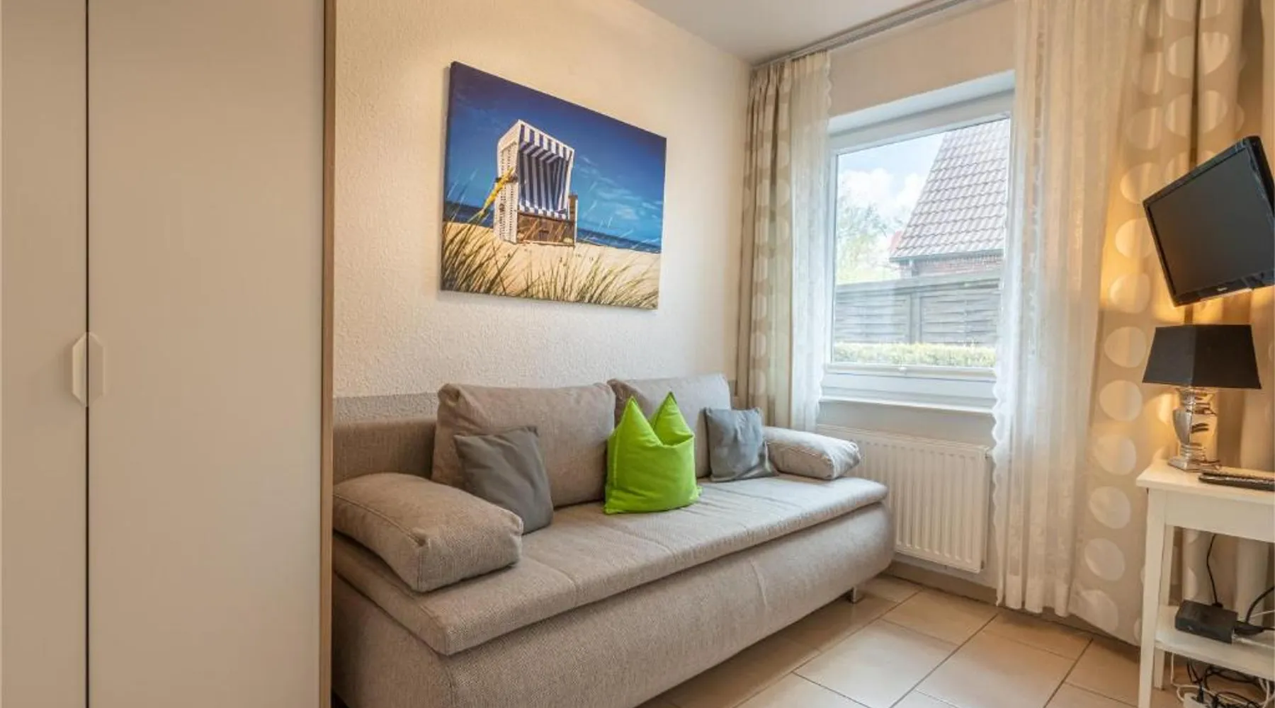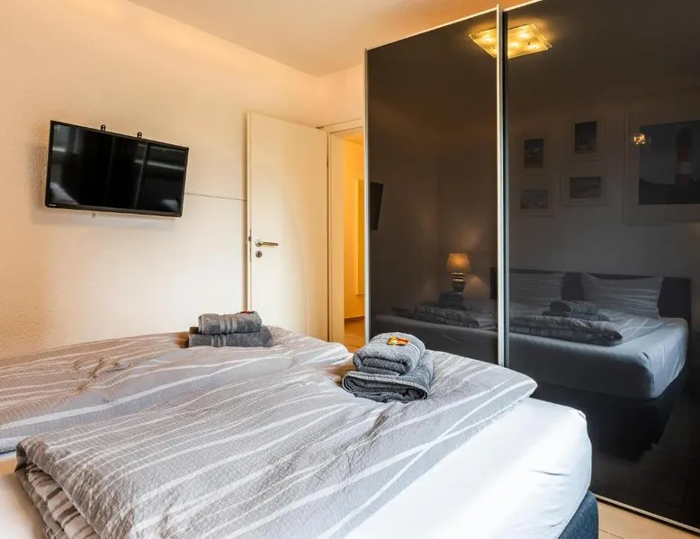 Spacious Accommodations: Kleiner Pirat in Norden offers a spacious apartment with two bedrooms and a bathroom. The property includes a terrace and free WiFi, ensuring a comfortable stay. Modern Amenities: Guests can enjoy a fully equipped kitchen with a coffee machine, dishwasher, and microwave. Additional amenities include a washing machine, work desk, and free on-site private parking. Local Attractions: Norddeich Train Station is 2 mi away, while Otto Huus, Amrumbank lightship, and Emden Kunsthalle art gallery are each 22 mi from the property. The Bunker museum and East-Frisian local history museum are also nearby. Featuring 2 bedrooms, this spacious apartment offers 1 bathroom with a shower, a seating area and terrace where you can relax. In the fully equipped kitchen, guests will find a stovetop, a refrigerator, a dishwasher and kitchenware. The apartment provides a washing machine, a coffee machine, a wardrobe, a sofa and a TV. The unit has 2 beds.
