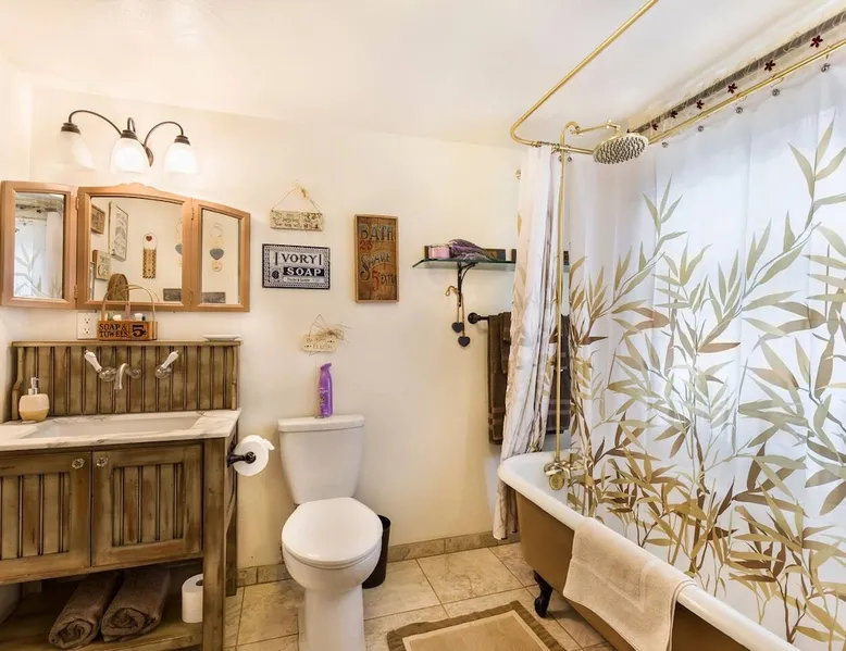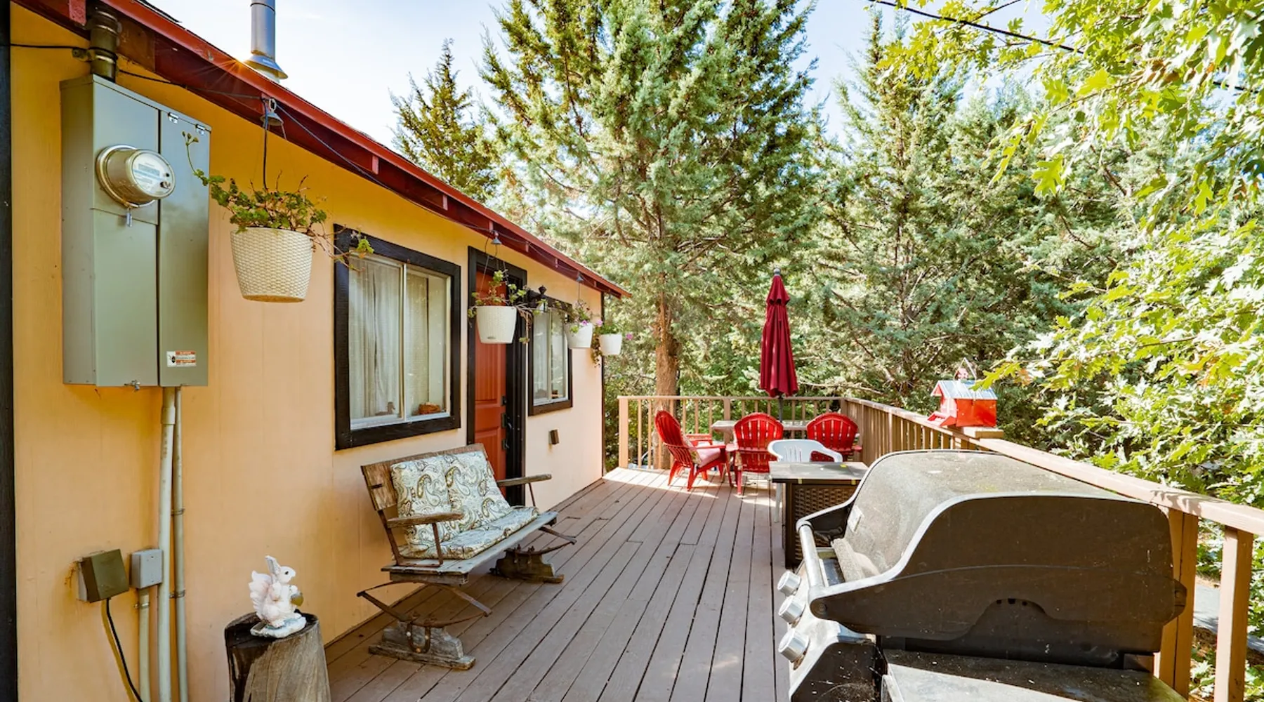 Monthly rental or more only. This charming & quiet cabin in Julian is away from it all yet near downtown Julian. Built in the 1940's yet tastefully upgraded in 2020. Clawfoot Tub, Large Deck, Wood Stove & Antiques. Comfy beds await your stay at the end of a paved road w/ manzanitas & pines all around. If you want privacy, romance, or a quiet family gathering this is your place! Designated Dark Sky Area for amazing stargazing. Book in advance as this cabin is very popular. The space Just scroll to the bottom and click on our profile picture to see all of our vacation rentals in Julian. Pets welcome! This listing includes the use of the laundry room. The office is located in the front room, featuring a small desk. Looking for the perfect getaway? Look no further than Julian Cabins! Nestled in the heart of the picturesque Julian countryside, our cabins offer a blend of rustic charm and modern convenience. Each of our cabins is expertly crafted from the finest materials and features luxurious amenities, including plush bedding, fully equipped kitchens, and stunning views of the surrounding wilderness. Whether you're looking for a romantic retreat or a family-friendly escape, our cabins provide the ideal setting for your next vacation. And with a wide range of activities available just steps from your door, there's never a shortage of things to do. From hiking and biking to fishing and horseback riding, our cabins offer something for everyone. So why wait? Book your stay at Julian Cabins today and experience relaxation and rejuvenation. Our friendly staff is standing by to help you plan your perfect getaway, so contact us today to reserve your spot in paradise! This is a duplicate listing of the Time Traveler Retreat, but without the use of the laundry room. You have chosen one of Julian's nicest 2-bedroom 5-star rated cabins. Complete with A/C and Heat. You may also use our high-end ceramic wood stove (firewood extra or bring your own) Fully stocked kitchen with microwave, antique fridge, stove, oven and microwave. You only need to bring your food and drinks. Built in the 1940s and completely renovated in 2016, this cabin is a secluded and quiet retreat. The furnishings will remind you of how simple things were in the past. There is even an old outhouse! It's only 1.5 miles from Julian Center, so it's close but quiet. Many walk into town. Trails like the Old Banner Trail are abundant, and it's conveniently located near Volcan Mountain Preserve, a fantastic place to visit and hike. The ceramic wood stove gives it a very special ambiance. The clawfoot tub (and shower, too) is a big hit. There is a wonderful deck with patio furniture outside. Inside, there are many antiques and historical information about Julian to help you plan your stay. A Washer and dryer are in the shed for your use if needed. Hiking trails are close by. My favorite is the Old Banner Trail, which is within walking distance of the cabin and is open almost all the time. The location is home to a variety of wildlife, including deer, wild turkeys, blue jays, falcons, hawks, woodpeckers, roadrunners, hummingbirds, and many other species. Length of Stay: We gladly welcome longer stays. Please feel free to send an inquiry! If you want to get away from it all and have a quiet rest, this is the place. A high-quality hammock is also in the shed for your enjoyment. It is located between the two trees to the left of the shed and faces them. There is a propane BBQ. The first room next to the bathroom has a clawfoot tub and a new super comfortable queen-sized bed with plush bedding. It has its own TV with Disney and Amazon Prime. Also Youtube TV The second bedroom also features a new queen-size bed that is softer than firm, accompanied by plush bedding. Each bedroom features a TV with access to Amazon Prime and YouTube TV. Wifi is free! Just so you know, a separate charge of $25 applies for wood (if required). Please let us know if you would like to pay to use our wood or bring your own. Bring fire starters if you want to start a fire easily, or use twigs from the property. There is a Pet fee of $55 per pet per stay plus tax. Please keep pets off the beds and furniture to avoid additional cleaning fees. During the winter, when the weather is freezing, you will have to turn the water off outside the house to prevent the pipes from freezing. There is a nice mini split heater in the house. The amazing ceramic wood stove is not necessary, but it can be used to heat the home if desired. We have YouTube TV and Amazon Prime for free. If you buy or rent movies on our account, we will bill you plus a $2.50 service fee. If you wish to bring additional people after booking, a $20 per person per night charge applies. Have a very special stay and book early, as this cabin is in high demand! Guest access Entire house Cabin is for you exclusively and not shared Other things to note There is a code to enter the house that will be sent 2 days before arrival The bathroom is off the master Bedroom so that means that whoever is sleeping elsewhere in the house must go through the master bedroom to get to the only bathroom. Storage shed with washer/Dryer on site. No hot water or heat in the shed. Hiking trails nearby A/C and heater in unit as well as a wood burning stove If you want to use our firewood during the stay there is an additional fee $15. Just let us know. There is also a $45 fee for each pet, just let us know so we can add to the reservation. There is a security camera on the property that only looks onto the entrance. Feel free to unplug if you want. Just plug back in when you leave. SUMMER... If there are high winds or fire danger the electricity can be shut off by the power company. This is beyond our control. We cannot issue any refunds for things beyond our control. We do have a generator that we will try to setup if this occurs for minimal needs. During the winter you will have to shut off the water which you can see a sign that says "shut 