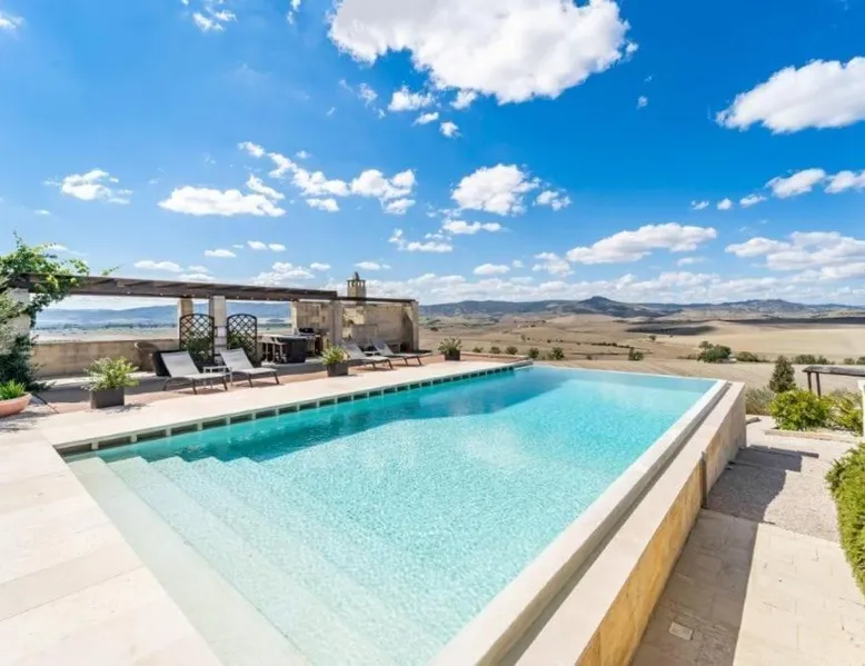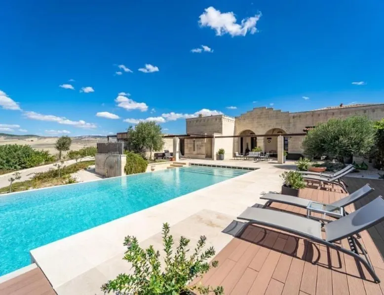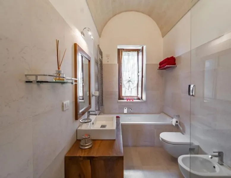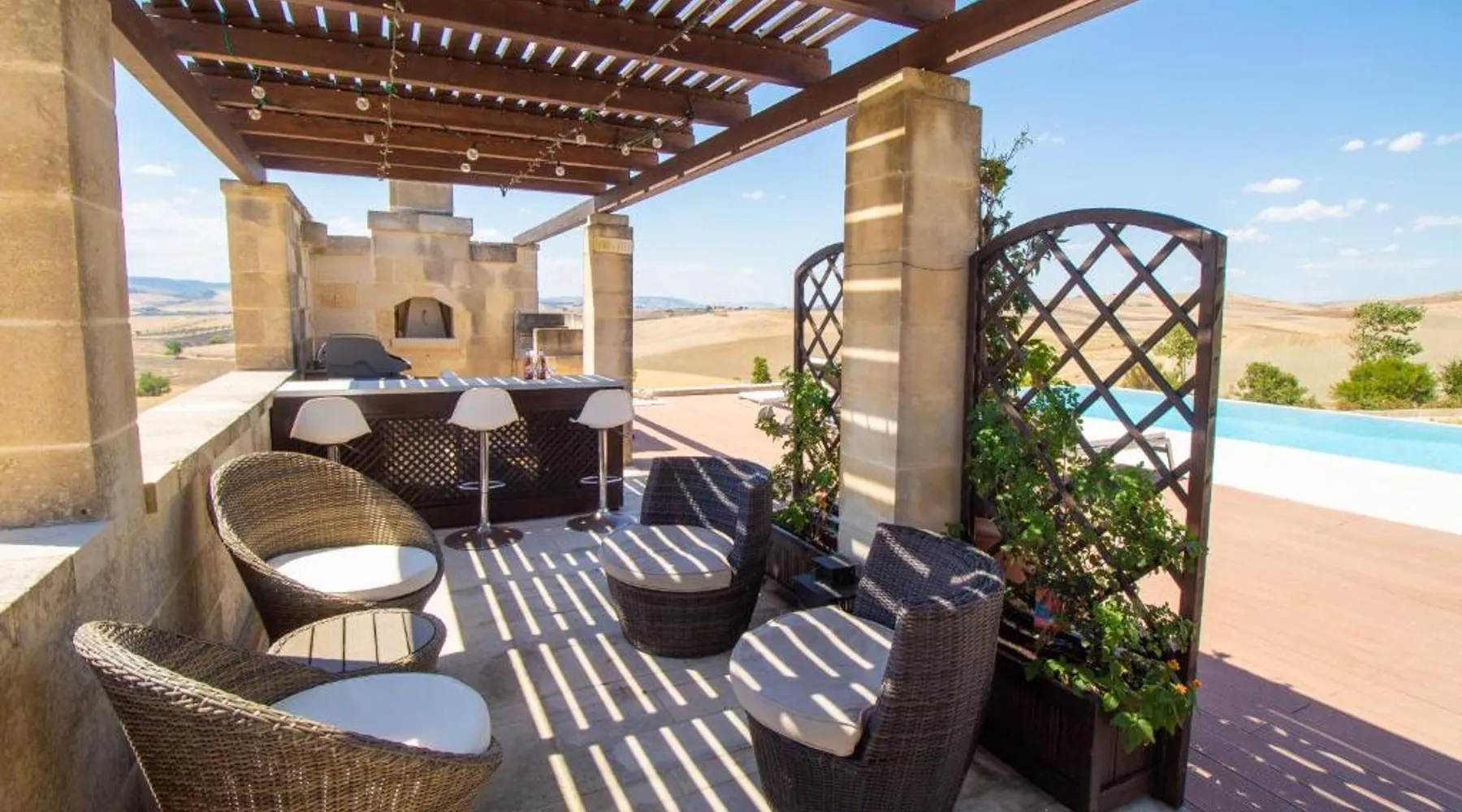 Spacious Accommodations: Villa Matera in Matera offers three bedrooms and four bathrooms, including a living room. The property features a spacious layout with family rooms and interconnected spaces. Outdoor Amenities: Guests can enjoy an infinity swimming pool, sun terrace, and lush garden. The villa includes an outdoor seating area, barbecue facilities, and bicycle parking. Free WiFi is available throughout the property. Convenient Location: Located 48 mi from Bari Karol Wojtyla Airport, Villa Matera is near Casa Grotta nei Sassi (8.1 mi), MUSMA Museum (8.7 mi), and Matera Cathedral (8.7 mi). Free on-site private parking is provided. This villa's special features are the pool with a view and the fireplace. Boasting a private entrance, this air-conditioned villa comes with 1 living room, 3 separate bedrooms and 4 bathrooms with a walk-in shower and a bath. Guests will find a stovetop, a refrigerator, a dishwasher and kitchenware in the well-fitted kitchen. The villa also includes a barbecue. The spacious villa features a flat-screen TV with streaming services, a washing machine, soundproof walls, a tea and coffee maker as well as garden views. The unit has 4 beds.