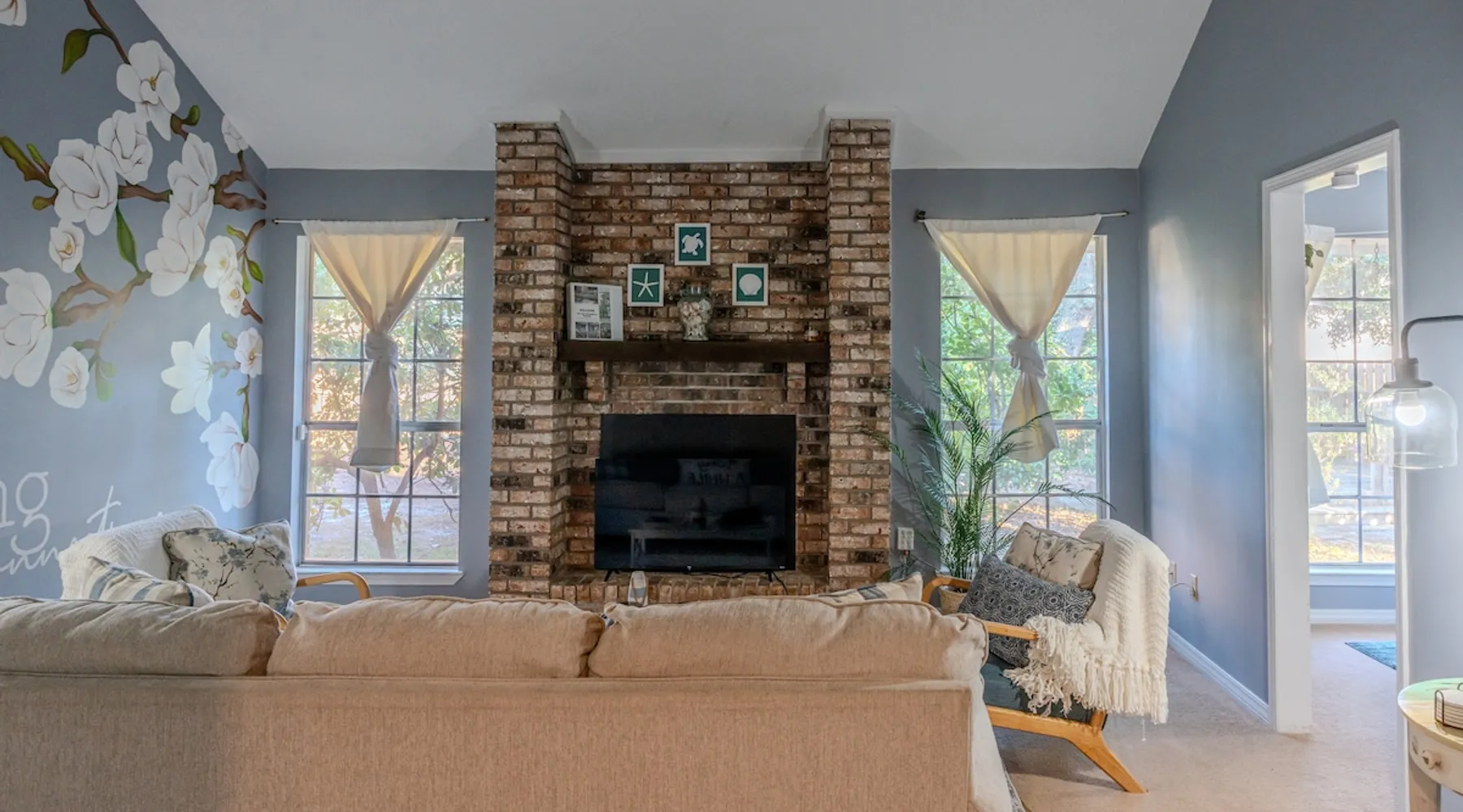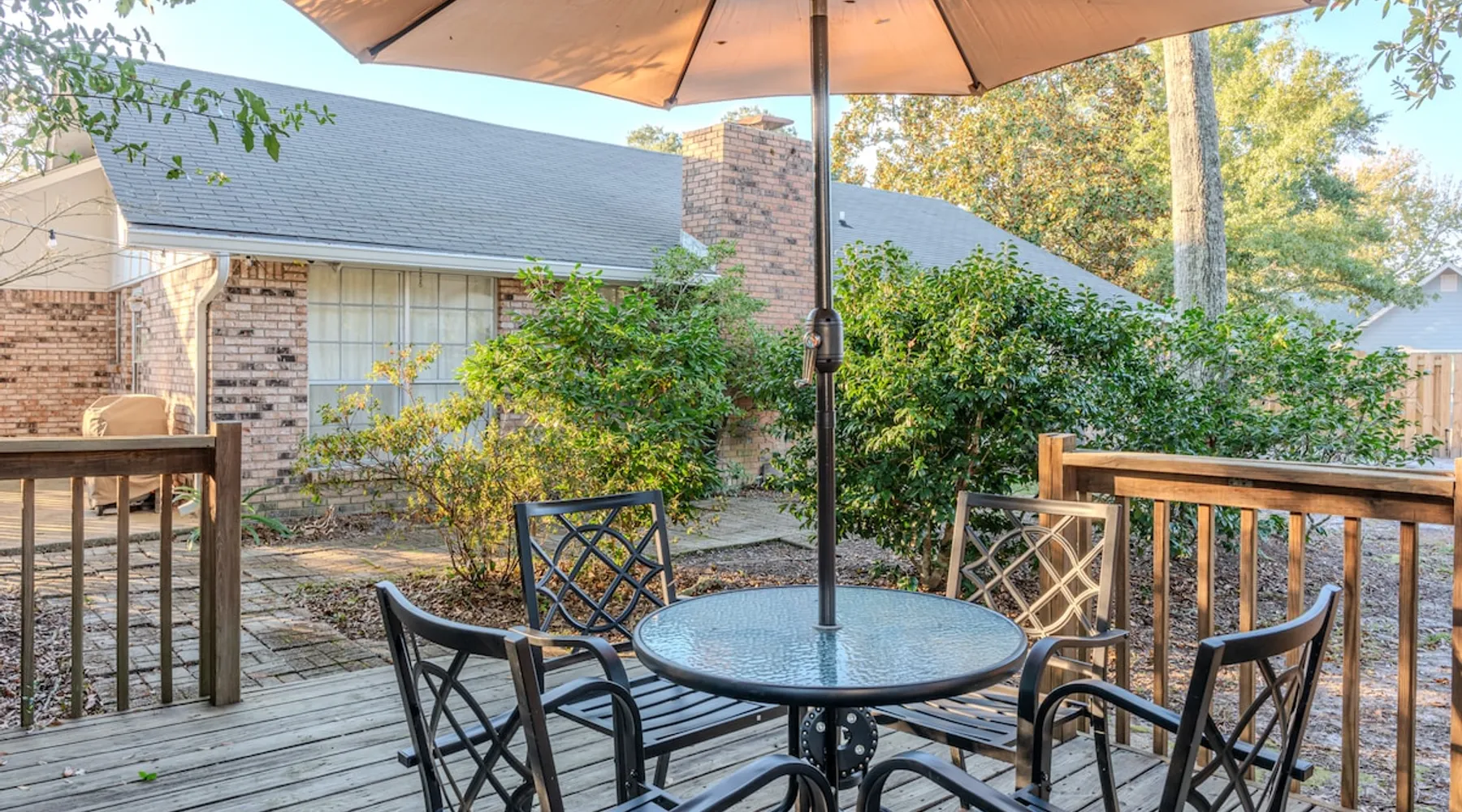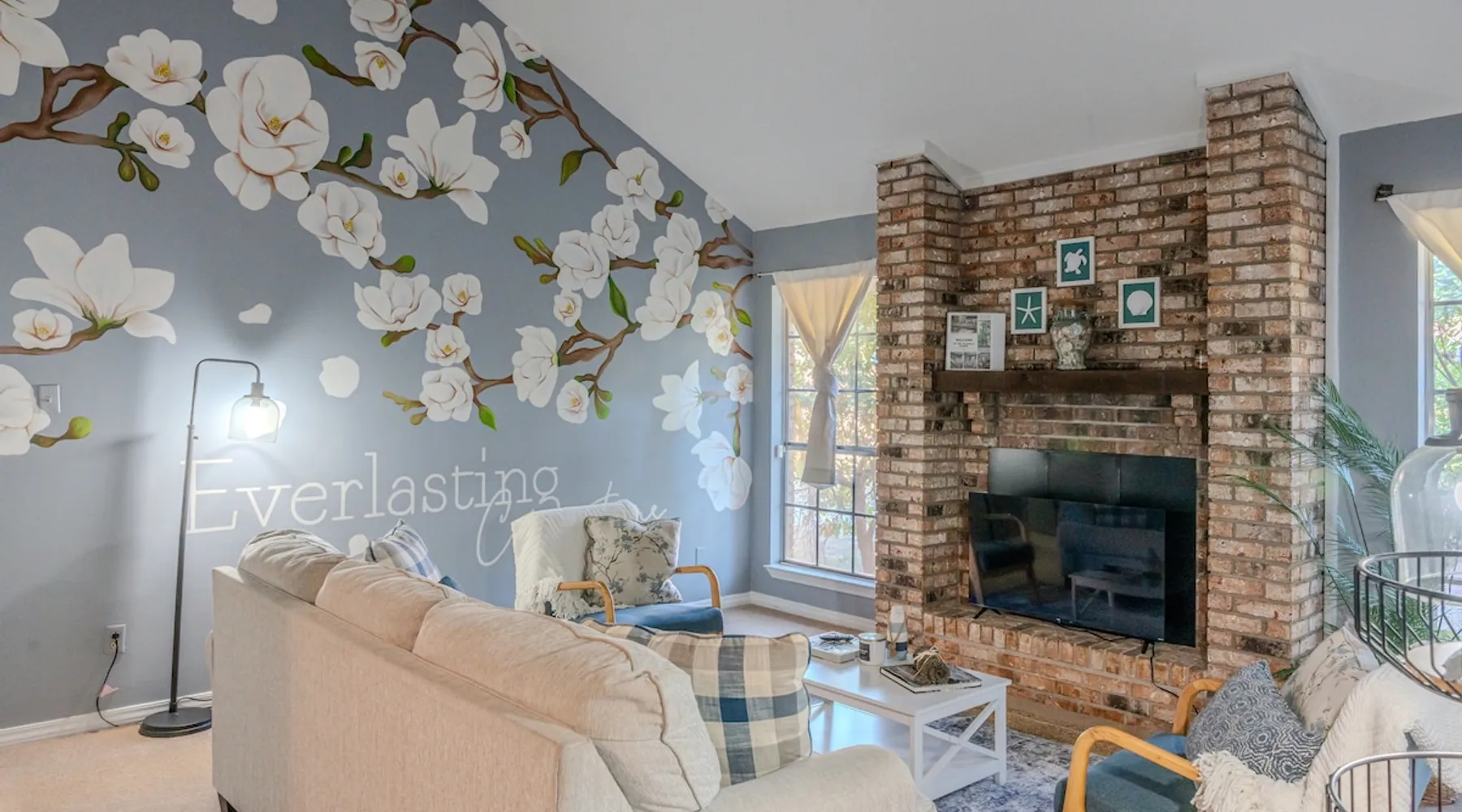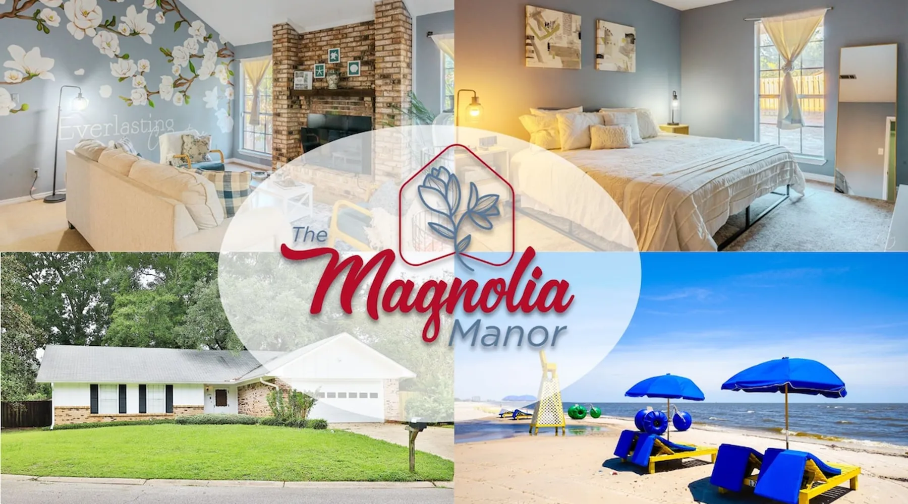 The Magnolia Manor is perfect for short & long stays with the whole family or group. Multi-night & monthly discounts are available. Your stay includes: • King bed master suite • TVs in EVERY Bedroom • Memory foam mattresses • Fast Wi-Fi • Gorgeous locally-created custom mural • Cooking utensils • Fun board & outdoor games • BBQ grill • Shampoo, body wash, & conditioners • Indoor and outdoor dining areas • Private backyard • Short drives to the beach, casinos, & event centers Book your stay! The space As our beautiful, "Everlasting Connections" mural illustrates, the magnolia, the Mississippi state flower, is a symbol of positive memories and connections. We aim to make this property a place where you can make lasting memories and connections. Drive Times (times may vary depending on traffic) Gulfport Beach: 5 min Biloxi Casinos: 15-20 min Ocean Adventures Marine Mark: 8 min Lynn Meadows Discovery Center: 5 min Mississippi Aquarium: 9 min Memorial Health Hospital - Gulfport: 15 min Memorial Health Hospital - Biloxi: 17 min Jones Park: 10 min Keesler Air Force Base: 12 min Mississippi Coast Coliseum & Event Center: 10 min ‼ IMPORTANT: Please scroll to the bottom to ensure you fully understand all of the important information and rules about the home. We strive for transparency and we strive to provide enough detail in our listing for this reason. If you have any doubts about the property, please contact us, thank you. Entry: The home is equipped with a keypad on the front door and a code will be generated for you. This code will only work during your stay, and no one else will be given this code. We’d love to get your help and ask if you’d please remove your shoes when entering the home. If you're coming from the beach, please keep sand out of the inside of the home. Living Room: The main living area is located right after the entryway. Our custom, one-of-a-kind mural, "Everlasting Connections" was designed by Paula, one of your hosts, and painted and brought to life by locally-based artist, Jerika Broussard. The living room also offers a Roku TV to stream your favorite shows or movies. • Logins for TV apps will not be provided, but you are free to log into your own accounts • Please log out of your accounts before leaving the property Dining & Games Enjoy your home away from home while sitting down for a meal with family and friends around the beautiful dining table in the eat-in kitchen! Once finished, feel free to use the table to play any one of our board games or round of cards that we've provided. Seating for 6. Bedrooms Each of the four bedrooms has its own keypad entry lock for extra privacy as well as their own Roku Smart TV. In addition, each room is carefully designed with its theme and includes foam mattresses to ensure maximum coziness. Towels, linens, and washcloths are provided. The master bedroom includes a full-body mirror and a king-size bed. !Please note: The bed frames are lower than most bed frames are, so you will sleep close to the floor. Kitchen The kitchen is fully stocked with cooking and eating utensils to make your own southern meals. Plus you'll find a drip coffee maker, a French Press coffee maker, wine glasses, and a cocktail mixing kit. If you feel an item is missing from our kitchen, please let us know and we will consider purchasing it for you and future guests! Office Space Located in the fourth bedroom next to the kitchen, this dedicated workspace is a great spot to get some work done during your time in Gulfport Laundry The laundry room is located in the fourth bedroom and includes detergent pods, washer, and dryer. You'll also find an iron and ironing board in the laundry area. Extras In the entryway and 4th bedroom closets, you will find games for the backyard, including cornhole, as well as items for spending time near or at the beach - umbrellas, a wagon, and a stroller. Backyard The private backyard is fenced for your convenience for the whole family or group to enjoy. Underneath the trees at the patio table you'll find the festoon lights overhead. You are also welcome to use the propane grill in the backyard at your own risk, we’ve provided grilling utensils for you. Tiny Humans If you're traveling with babies or toddlers, a high chair, pack 'n-play, and a small bathtub can be found in the fourth bedroom closet with the twin beds. Security A security camera/motion sensor light is outside above the garage door which records audio and video. Also, a noise meter is located in the dining room, it does NOT record audio but only records noise levels. There are NO cameras or audio devices inside the property that record audio or video. Checkout Unlike other hosts, our checkout instructions are minimal so you can enjoy your time away. All we ask is that you put used towels in the tubs and sink and generally tidy up. That's it! If you have any questions before booking please let us know, thank you! Guest access You will be provided a temporary code to access the front door for the duration of your stay. The beautiful backyard with the patio deck is accessible through the kitchen door or the side wooden fence next to the "garage" door. Please do not attempt to enter either the attic or the cleaner's closet in the hallway which also has a digital keypad lock. Other things to note Stays 28 Days or Longer Long stays are allowed, however, a separate lease agreement will be required to sign as well. In addition, to maintain the integrity of the property, our cleaning team will be required to clean the property once each month (no additional cost). Trash and Recycling Trash pickup occurs twice each week, Tuesday morning and Friday morning. Please take the trash bins located at the end of the driveway out Monday and Thursday evenings to ensure trash buildup doesn't occur during your stay. Garage space The garage has been converted into the fourth bedroom with the laundry room, so there is no garage parking. However, there is sto