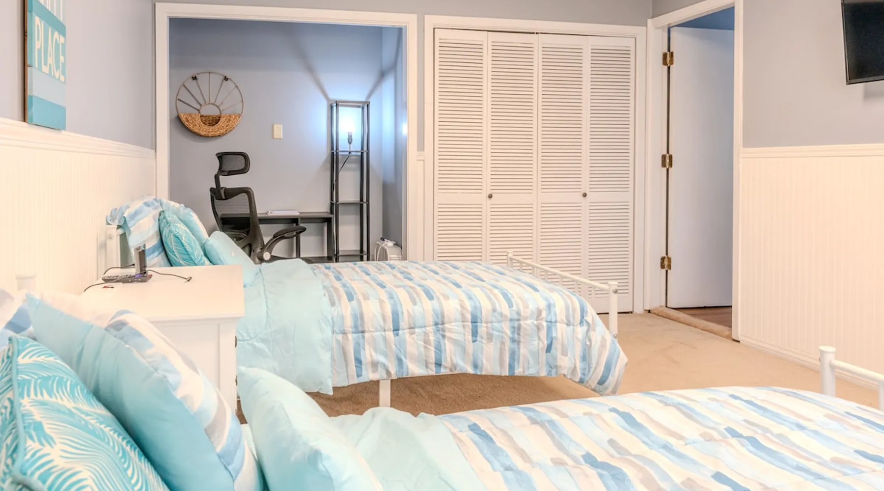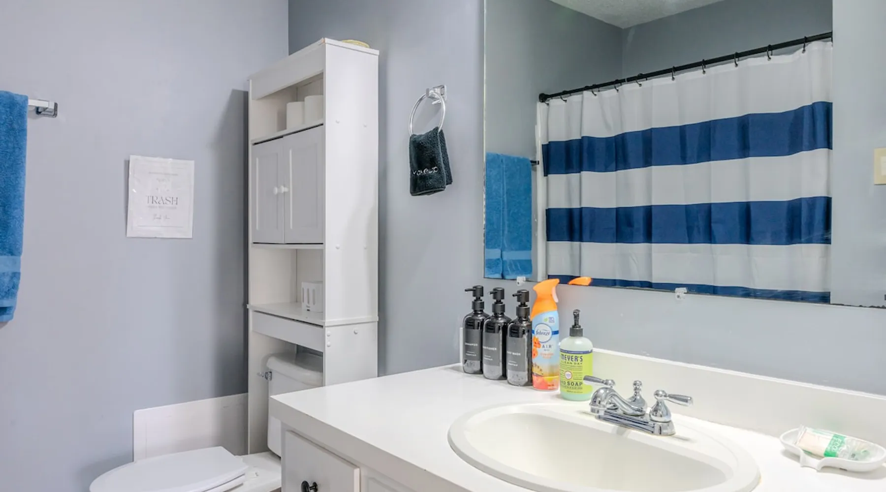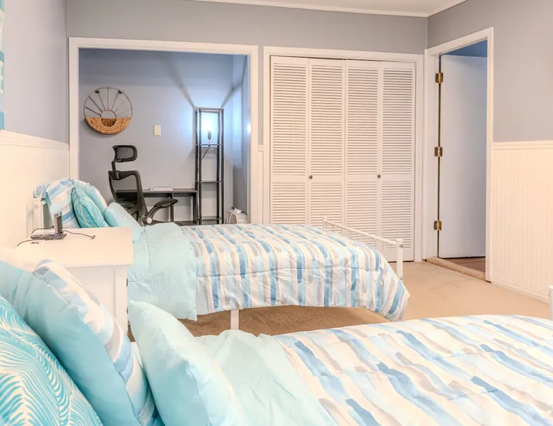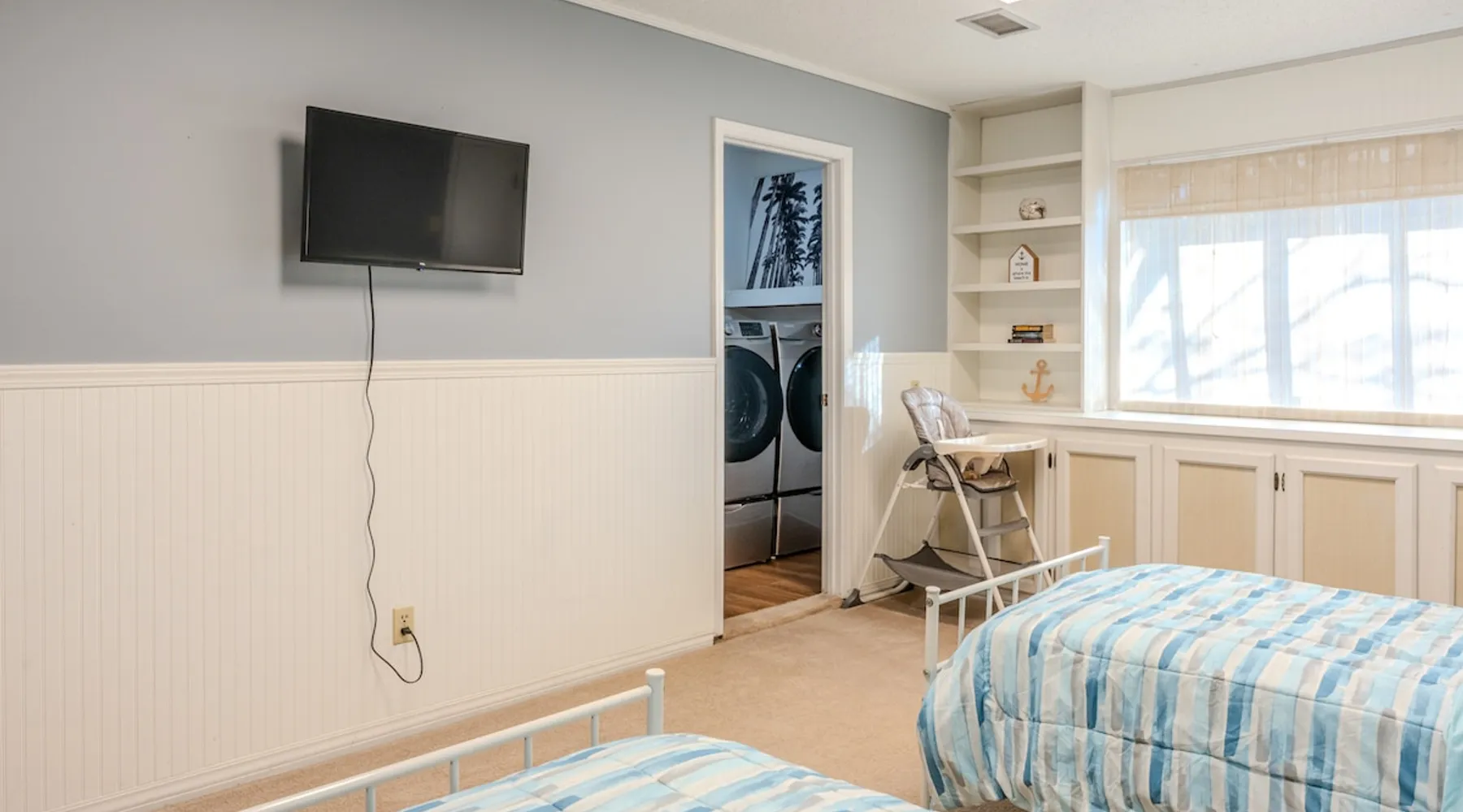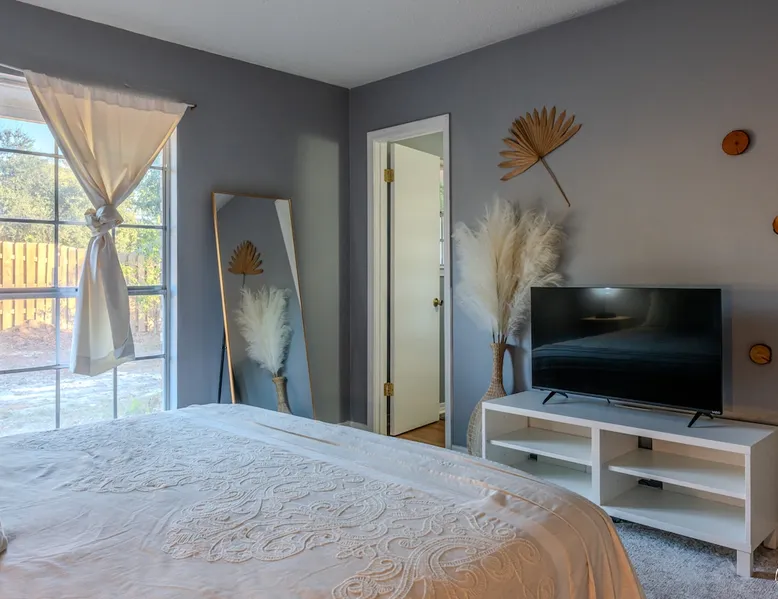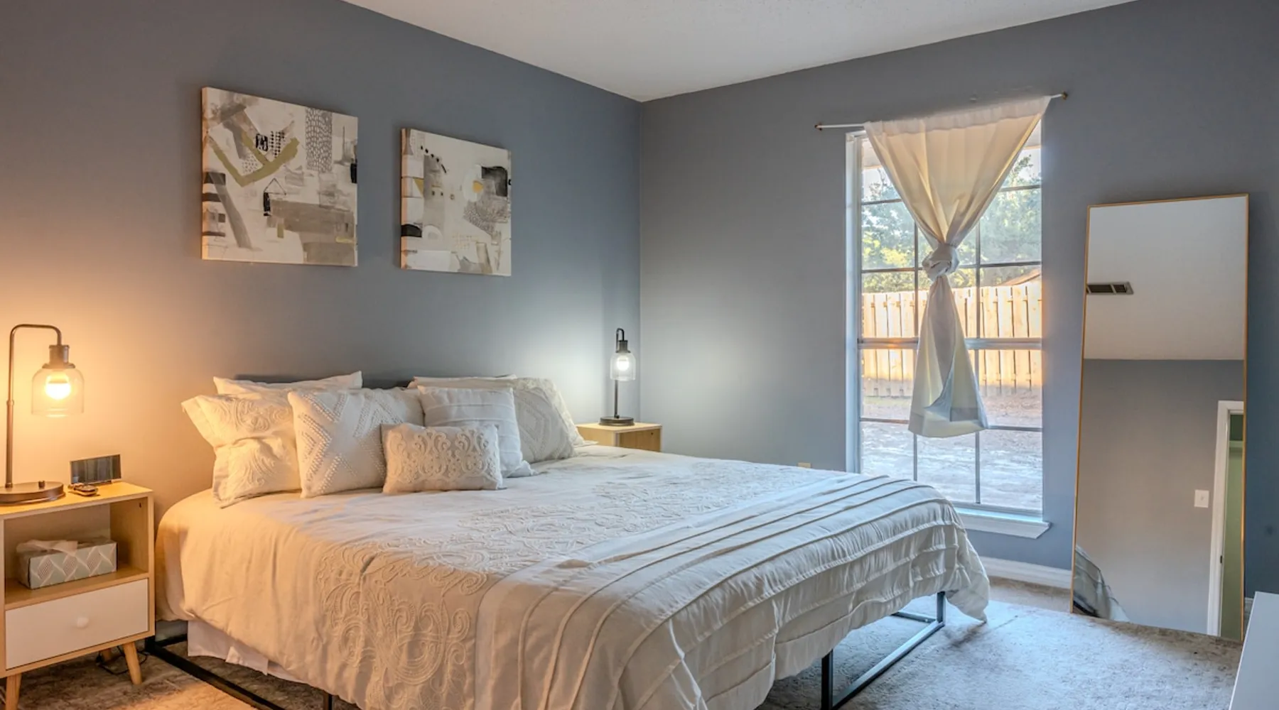 The Magnolia Manor is perfect for short & long stays with the whole family or group. Multi-night & monthly discounts are available. Your stay includes: • King bed master suite • TVs in EVERY Bedroom • Memory foam mattresses • Fast Wi-Fi • Gorgeous locally-created custom mural • Cooking utensils • Fun board & outdoor games • BBQ grill • Shampoo, body wash, & conditioners • Indoor and outdoor dining areas • Private backyard • Short drives to the beach, casinos, & event centers Book your stay! The space As our beautiful, "Everlasting Connections" mural illustrates, the magnolia, the Mississippi state flower, is a symbol of positive memories and connections. We aim to make this property a place where you can make lasting memories and connections. Drive Times (times may vary depending on traffic) Gulfport Beach: 5 min Biloxi Casinos: 15-20 min Ocean Adventures Marine Mark: 8 min Lynn Meadows Discovery Center: 5 min Mississippi Aquarium: 9 min Memorial Health Hospital - Gulfport: 15 min Memorial Health Hospital - Biloxi: 17 min Jones Park: 10 min Keesler Air Force Base: 12 min Mississippi Coast Coliseum & Event Center: 10 min ‼ IMPORTANT: Please scroll to the bottom to ensure you fully understand all of the important information and rules about the home. We strive for transparency and we strive to provide enough detail in our listing for this reason. If you have any doubts about the property, please contact us, thank you. Entry: The home is equipped with a keypad on the front door and a code will be generated for you. This code will only work during your stay, and no one else will be given this code. We’d love to get your help and ask if you’d please remove your shoes when entering the home. If you're coming from the beach, please keep sand out of the inside of the home. Living Room: The main living area is located right after the entryway. Our custom, one-of-a-kind mural, "Everlasting Connections" was designed by Paula, one of your hosts, and painted and brought to life by locally-based artist, Jerika Broussard. The living room also offers a Roku TV to stream your favorite shows or movies. • Logins for TV apps will not be provided, but you are free to log into your own accounts • Please log out of your accounts before leaving the property Dining & Games Enjoy your home away from home while sitting down for a meal with family and friends around the beautiful dining table in the eat-in kitchen! Once finished, feel free to use the table to play any one of our board games or round of cards that we've provided. Seating for 6. Bedrooms Each of the four bedrooms has its own keypad entry lock for extra privacy as well as their own Roku Smart TV. In addition, each room is carefully designed with its theme and includes foam mattresses to ensure maximum coziness. Towels, linens, and washcloths are provided. The master bedroom includes a full-body mirror and a king-size bed. !Please note: The bed frames are lower than most bed frames are, so you will sleep close to the floor. Kitchen The kitchen is fully stocked with cooking and eating utensils to make your own southern meals. Plus you'll find a drip coffee maker, a French Press coffee maker, wine glasses, and a cocktail mixing kit. If you feel an item is missing from our kitchen, please let us know and we will consider purchasing it for you and future guests! Office Space Located in the fourth bedroom next to the kitchen, this dedicated workspace is a great spot to get some work done during your time in Gulfport Laundry The laundry room is located in the fourth bedroom and includes detergent pods, washer, and dryer. You'll also find an iron and ironing board in the laundry area. Extras In the entryway and 4th bedroom closets, you will find games for the backyard, including cornhole, as well as items for spending time near or at the beach - umbrellas, a wagon, and a stroller. Backyard The private backyard is fenced for your convenience for the whole family or group to enjoy. Underneath the trees at the patio table you'll find the festoon lights overhead. You are also welcome to use the propane grill in the backyard at your own risk, we’ve provided grilling utensils for you. Tiny Humans If you're traveling with babies or toddlers, a high chair, pack 'n-play, and a small bathtub can be found in the fourth bedroom closet with the twin beds. Security A security camera/motion sensor light is outside above the garage door which records audio and video. Also, a noise meter is located in the dining room, it does NOT record audio but only records noise levels. There are NO cameras or audio devices inside the property that record audio or video. Checkout Unlike other hosts, our checkout instructions are minimal so you can enjoy your time away. All we ask is that you put used towels in the tubs and sink and generally tidy up. That's it! If you have any questions before booking please let us know, thank you! Guest access You will be provided a temporary code to access the front door for the duration of your stay. The beautiful backyard with the patio deck is accessible through the kitchen door or the side wooden fence next to the "garage" door. Please do not attempt to enter either the attic or the cleaner's closet in the hallway which also has a digital keypad lock. Other things to note Stays 28 Days or Longer Long stays are allowed, however, a separate lease agreement will be required to sign as well. In addition, to maintain the integrity of the property, our cleaning team will be required to clean the property once each month (no additional cost). Trash and Recycling Trash pickup occurs twice each week, Tuesday morning and Friday morning. Please take the trash bins located at the end of the driveway out Monday and Thursday evenings to ensure trash buildup doesn't occur during your stay. Garage space The garage has been converted into the fourth bedroom with the laundry room, so there is no garage parking. However, there is sto