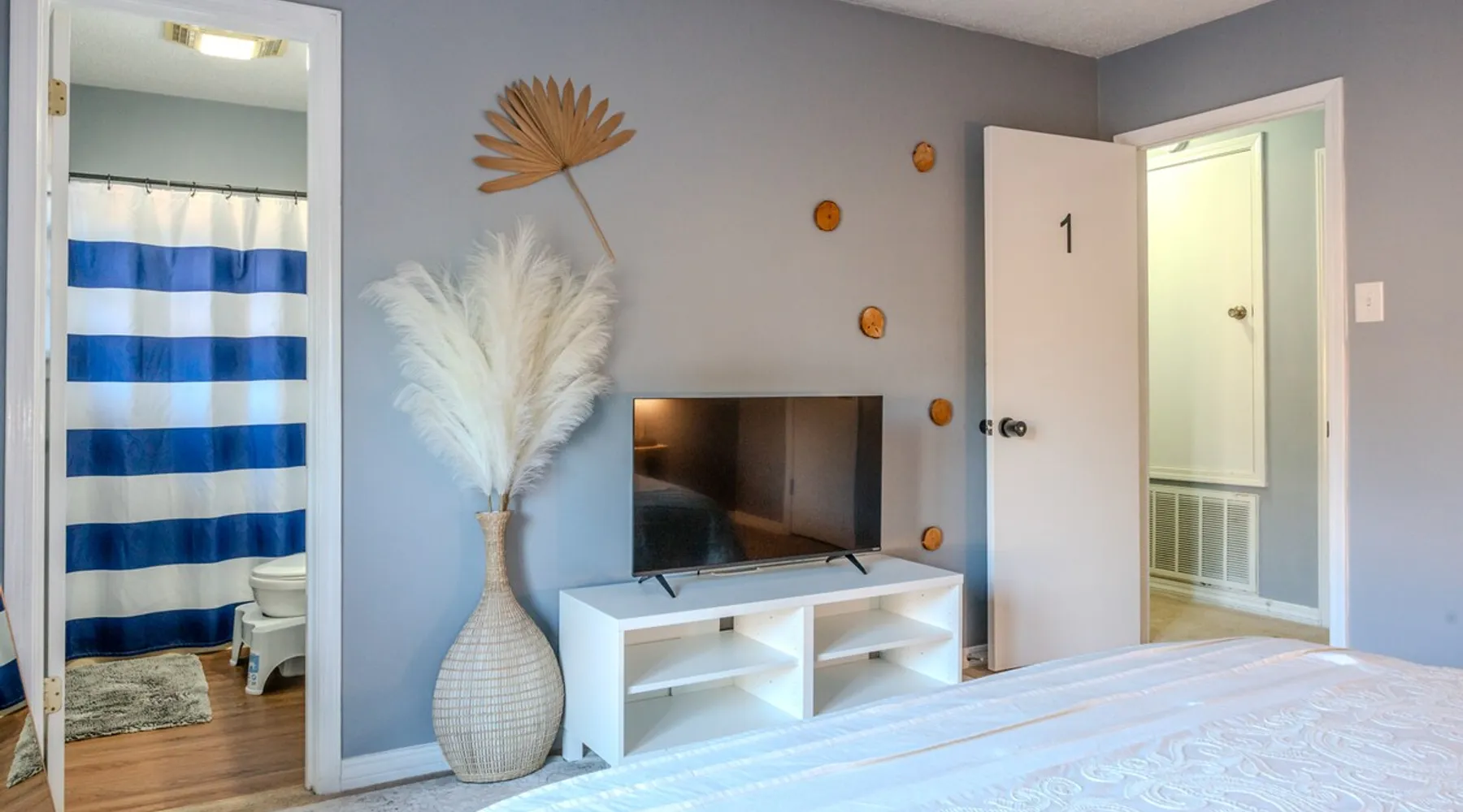 Vibrant King Bed Suite, Fast Wi-Fi, Multiple TVs, Custom Mural, Close to Beach!