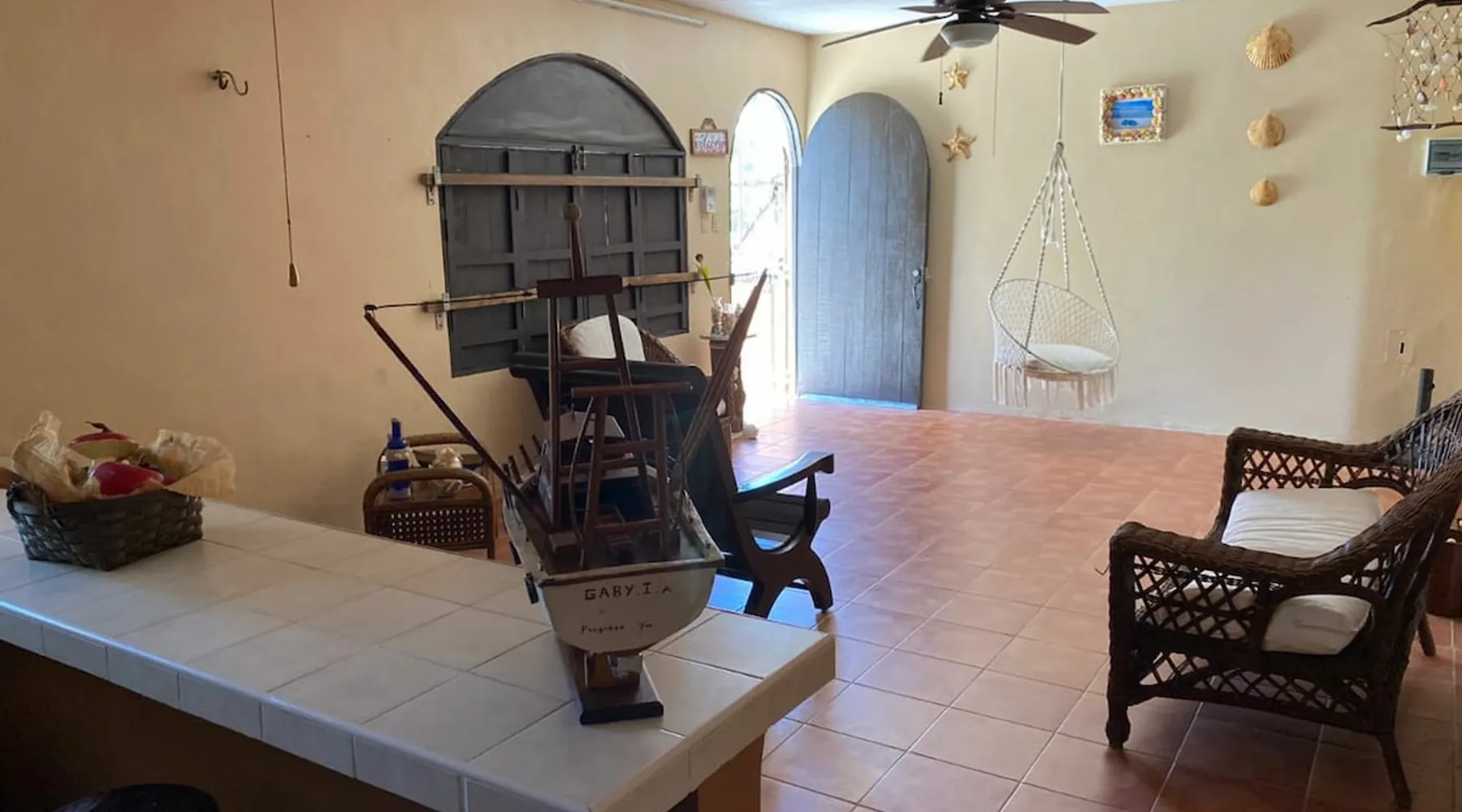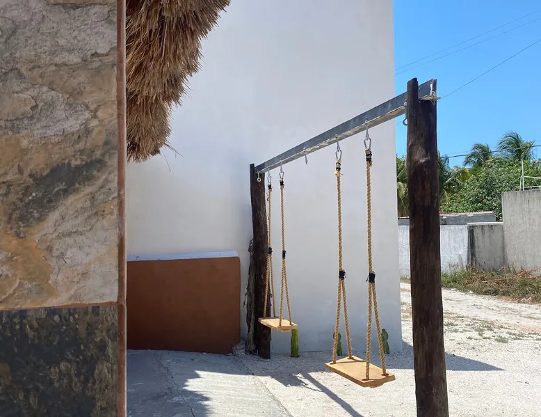 If you want peace of mind this CABIN is for you, relax on this unique and quiet getaway. Comfortable cabin for up to 4: One corner from the beach. 1 bedroom with king size bed and air conditioning. Furnished and equipped. 2 bathrooms. Wide backyard. Ideal for people seeking a quiet place. 300 meters from a commercial area. 5 minutes from the village of Chixchulub, 8 minutes from "Jurassic Trail" and 10 minutes from "Corchito" Newly married and in love packages.