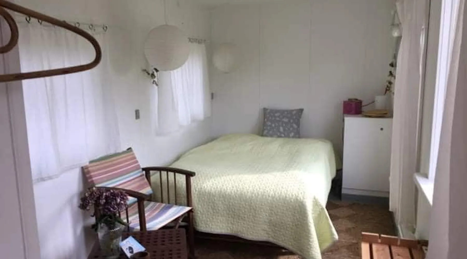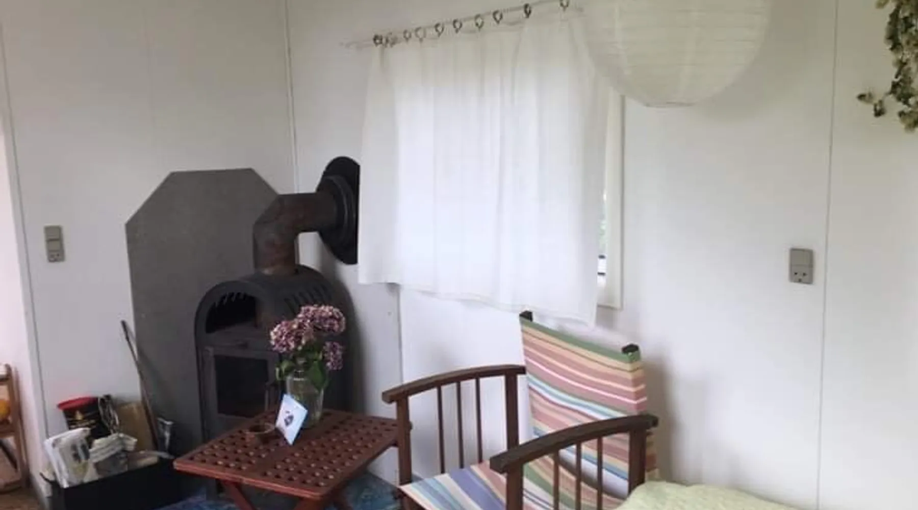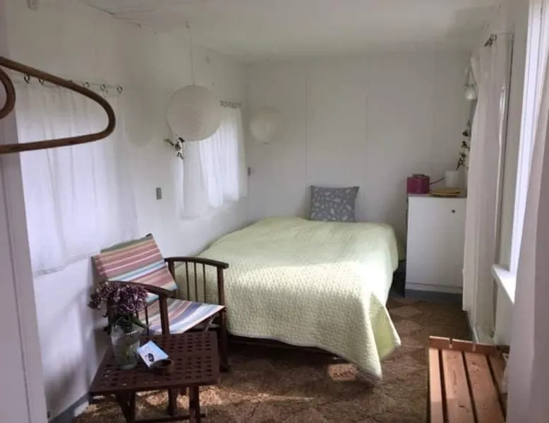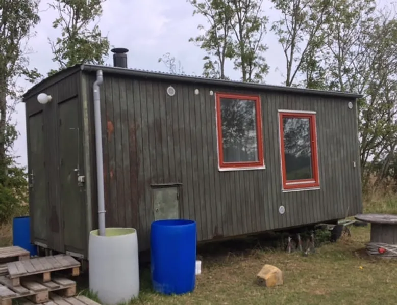 7 km from Allinge: Stay close to nature in my cozy shed. The trailer contains a small kitchenette. The trailer can be heated with a wood-burning stove. Towels, bedding and final cleaning included. The bathroom and toilette can be used in the farmhouse. The space Farmhouse in the countryside The wagon is in the field near the farmhouse Guest access You can use my bathroom and possibly wash up in my kitchen During your stay The owner lives in the main house Other things to note Smoking, drug use and alcohol abuse are not allowed. Electricity is charged extra. On the property, there are 2 border collies