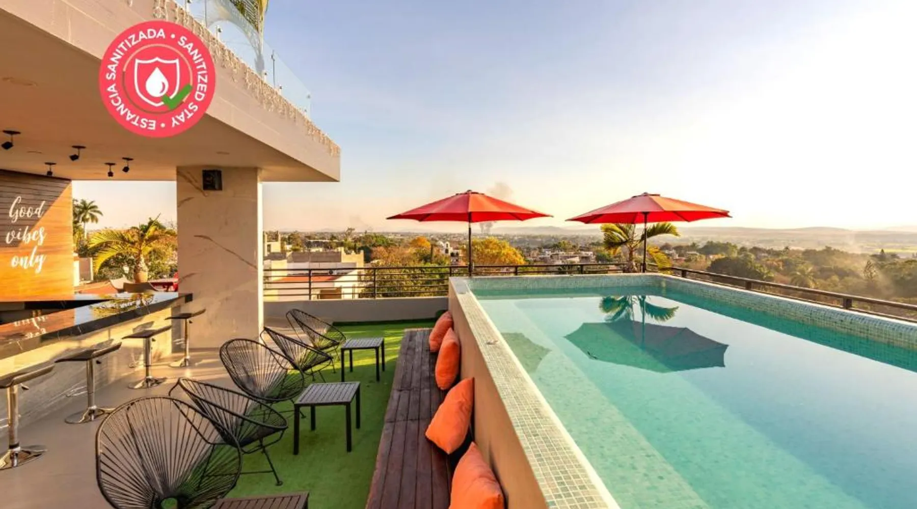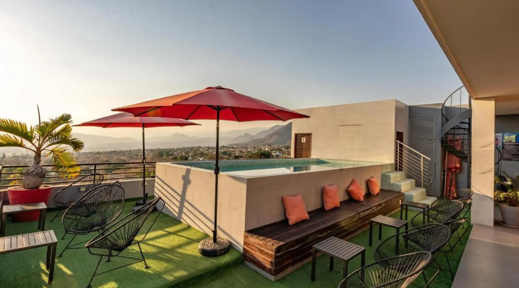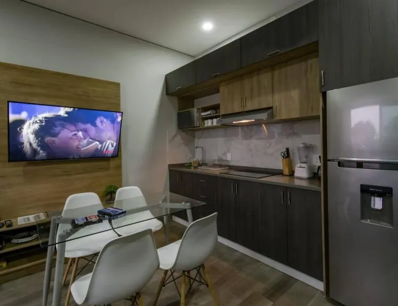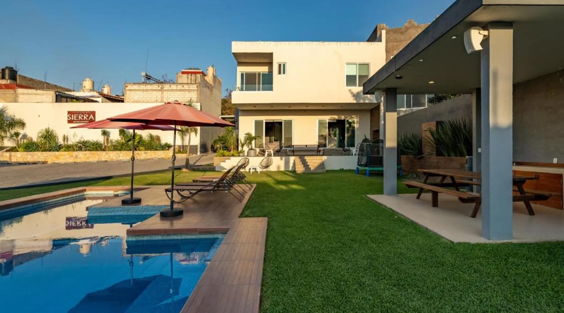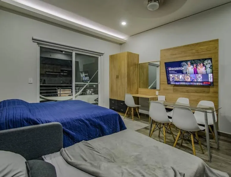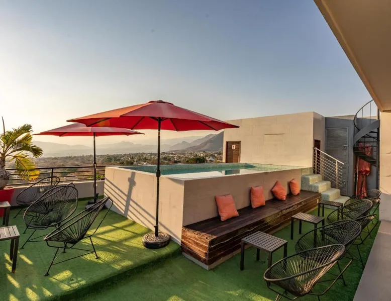 Elegant Accommodations: Sierra Apartments Estudios en Oaxtepec in Oaxtepec offers a holiday home with a rooftop swimming pool, garden, terrace, bar, and free WiFi. Guests enjoy garden, pool, and mountain views from the balcony and dining area. Comfortable Amenities: The property features a private bathroom, work desk, and free toiletries. Additional amenities include a kitchen, sofa bed, and outdoor fireplace. Free on-site private parking is available. Prime Location: Located 58 mi from Benito Juarez International Airport, the property is 24 mi from the Robert Brady Museum and 1.2 mi from Six Flags Oaxtepec. Guests appreciate the swimming pool, hot tub, and scenic location. This holiday home's standout feature is the infinity pool. This holiday home includes 1 living room, 1 separate bedroom and 1 bathroom with a shower and free toiletries. The holiday home's kitchen, which has a stovetop, is available for cooking and storing food. Boasting a terrace with garden views, this holiday home also offers a private entrance and a TV. The unit has 2 beds.