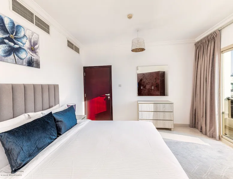 Welcome to Your Dubai Home at Niwah Residence: Unlike big management companies, this is our home, and we provide a complimentary breakfast and NO cleaning chores at checkout. Step into a world where authenticity meets the convenience and comfort of your home. Nestled in Dubai's scenic coastal district, our apartment offers more than just a place to stay—it’s an experience. 10 min Walk to J1 Beach, La Mer. 7 min Drive to Dubai Mall/ Burj Khalifa Near bus stop connecting to Metro station The space Why Choose Our Space?: ☀ Location: An easy 10-min stroll to the shimmering La Mer beach. Just minutes by car to Dubai’s landmarks like the Dubai Mall and Burj Khalifa. ☀ Comfort Redefined: Sleep soundly with plush king beds, and a cozy sofa bed. Watch your favorite shows on our 55” Smart TV or whip up a meal in our fully equipped kitchen. ☀ Daily Cleaning: We want your Dubai experience to be truly carefree. That’s why we offer complimentary daily cleaning. Focus on creating memories, and leave the tidying to us. ☀ Stunning Views: Sip your morning coffee or evening beverage on our shared rooftop terrace, soaking in the breathtaking Dubai skyline, including the iconic Burj Khalifa. ☀ **Legal compliance**: To comply with Dubai laws and ensure a smooth check-in, we've implemented an easy-to-use form where you can upload your passport photos directly to the DET portal through a secure, authorized third-party vendor. Note: A 200 AED admin fee may apply for manual check-in. Our Personal Touches: Every guest is family. From the children's books and toys we've tucked away, to the special welcome pack of tea, coffee, and water, we've thought of everything. Want to enjoy a complimentary specialty coffee + croissant, daily except on Sundays, between 8-11 am? We've got an exclusive lounge just for that. Driving in? A complimentary parking space awaits. And our high-speed Wi-Fi keeps you connected, whether you're sharing holiday pics or working on the go. Hear From Our Guests: ☀ “The apartment was spacious, super clean, beautifully decorated and had everything we needed for our 30 day stay. ” - Andre ☀ “The location is very good. 5 min walk to the best beach. It’s called La Mer. There are shops, restaurants, pharmacy nearby. Landlord is friendly and any time online. ” - Dmitriy Ready for a Dubai Trip You'll Cherish Forever? Book now and let us, your Dubai family, take exceptional care of you! KEY FEATURES: ☀ Daily light cleaning (Vacuuming and bed making) + Full linen change every 3 nights (Effective bookings made from April 24th, 2023) ☀ 2 large bedrooms; 2 kings w/ high-end linens ☀ 2 bathrooms; 2 walk-in showers behind frosted glass doors ☀ Open kitchen area w/ granite countertops ☀ Spacious + modern lounge ☀ Great balcony views of Downtown Dubai ☀ Shared rooftop terrace + private lounge ☀ Free high speed Wifi Here Are A Few Kind Words From Our Past Guests: “By far, this place has been the best AirBnB apartment that I have ever rented. I cannot explain how much my family and I enjoyed staying at this place. Everything was perfect. I truly appreciate the generous owner and the respectful staff. The cleanliness, the brand new furnitures, the towels, the kitchen appliances, the beds, everything was great. I can only say, Thank you very much.”- Saeed “It was a great pleasure to stay at Abdulrahman’s place. The building is very close to La Mer beach, our favorite beach in Dubai. The apartment was spacious, super clean, beautifully decorated and had everything we needed for our 30 day stay. Abdulrahman was an amazing host: always available via messages, always helpful, kind and generous. The staff in the building was very nice and made sure our stay was enjoyable. Overall it was one of the most wonderful Airbnb stays. Thank you, Abdulrahman, from the bottom of our hearts.”- Andre “The location is very good. 5 min walk to the best beach. It’s called La Mer. There are shops, restaurants, pharmacy nearby. Landlord is friendly and any time online. If you ask something, he solves your problem immediately.”- Dmitriy “I had a wonderful stay here. The place is clean, well stocked, comfortable, felt like a hotel room, but more personable! Abdul was an outstanding host, so helpful, communicative and supportive. Truly an excellent experience. great location. close to the beach and some fantastic cafes. Certainly recommend. Thank you Abdul!”- Mendel ☆☆ BEDROOMS ☆☆ This beautiful two-bedroom apartment in the coastal Jumeirah district is perfect for couples, small families, business travelers, and even solo adventurers. Both bedrooms have a king-sized bed, and plenty of storage space to make yourself at home. Small details like plenty of outlets to keep your devices charged, decorative light fixtures, laptop-friendly workspaces, and easy access to ensuite bathrooms make each bedroom a welcome and comfortable retreat. Enjoy sleeping on comfortable mattresses and watching your favorite shows on the flat-screen TV from the comfort of your own room. ☆☆ BATHROOMS ☆☆ Both bathrooms have spacious showers hidden behind floor-to-ceiling frosted glass doors. They both have a well-lit mirrored vanity, fresh towels, and plenty of storage space to keep all of your bathroom essentials organized. Complimentary shampoo and shower gel are provided for your convenience. ☆☆ KITCHEN & LOUNGE ☆☆ The kitchen packs everything you need to cook a homemade meal into a convenient space. The kitchen is complete with a full-size refrigerator, oven, microwave, and drawers stocked with all of the gadgets you need to cook as you do at home. Swing by the local grocery store and stock the custom cabinets with your family's favorite groceries, or order takeout and enjoy it in the formal dining area. Be sure to help yourself to the complimentary tea and coffee provided in your welcome pack. The spacious living room has a high-end sectional sofa with cozy accent pillows 