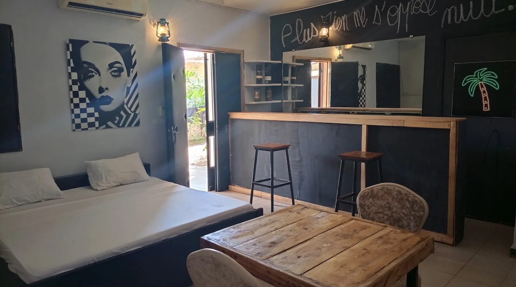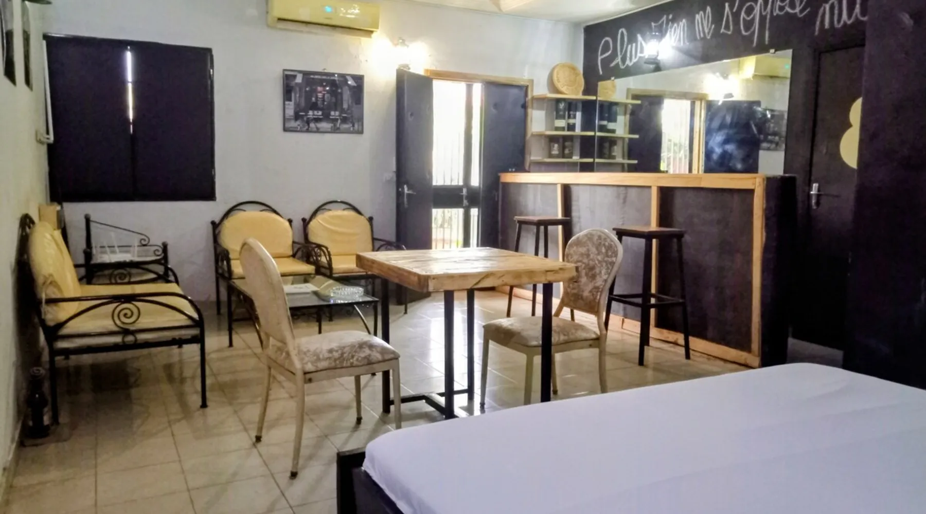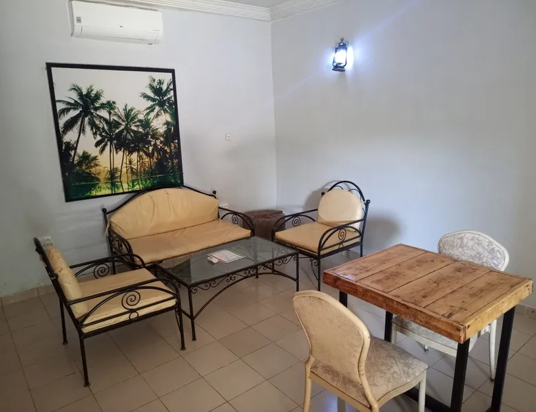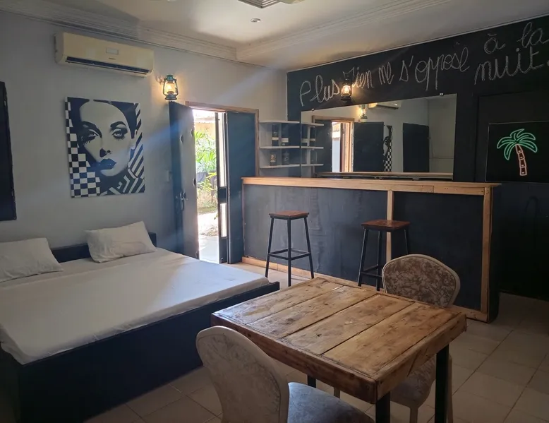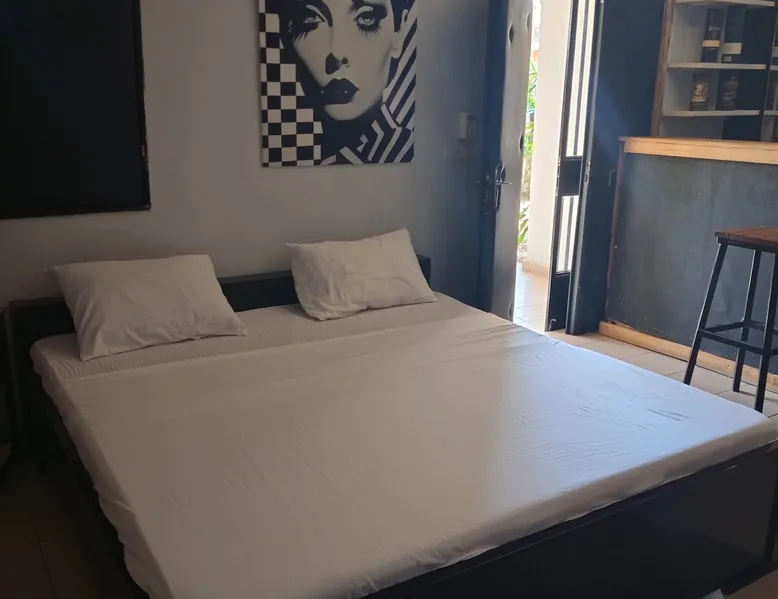 Welcome to your comfortable studio suite! Settle into a modern, air-conditioned 33 m² space, perfect for relaxing. Enjoy a spacious bed, cozy living room, and direct access to a green garden. Located in a secure residence with an excellent on-site restaurant and 24-hour services. The accommodation is quiet, ideally located close to shops, offices and other amenities. Free parking. Ideal for business or leisure stays.