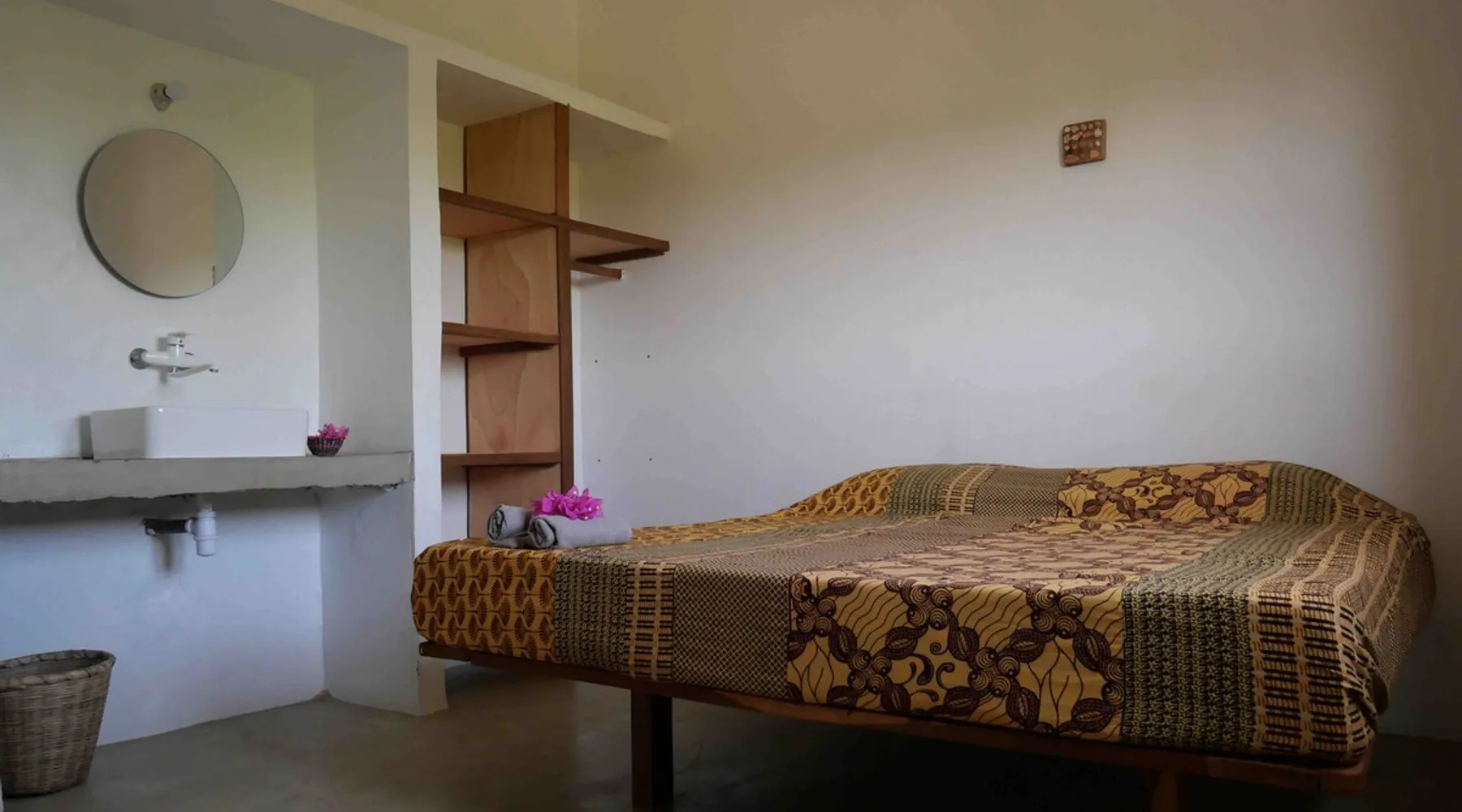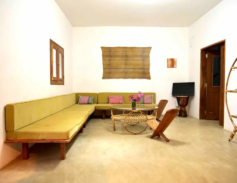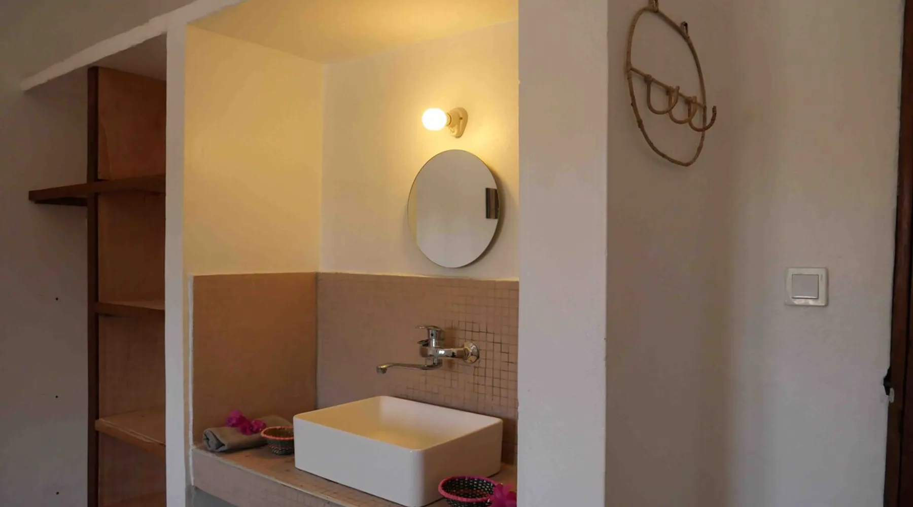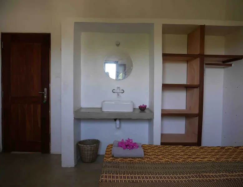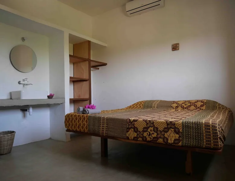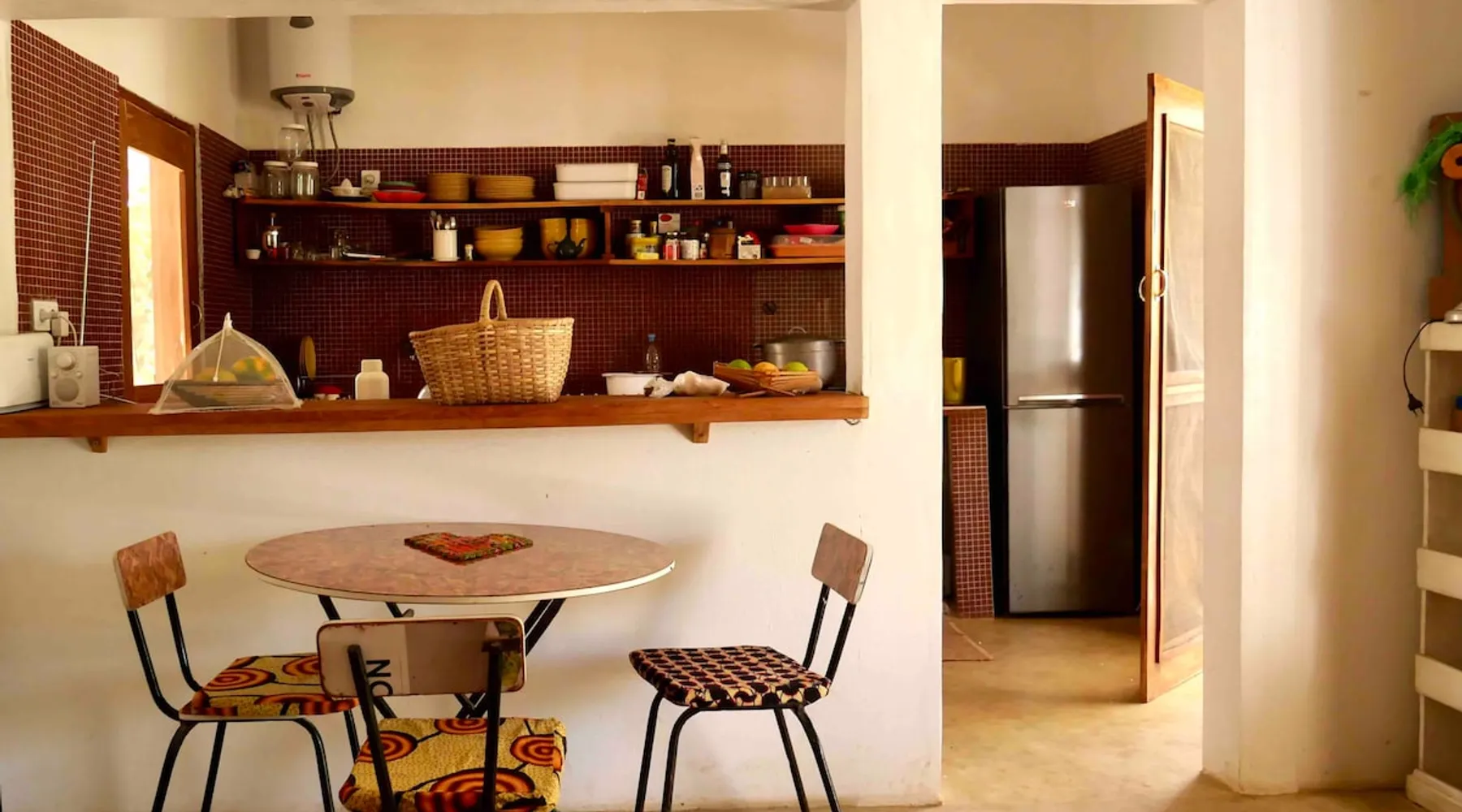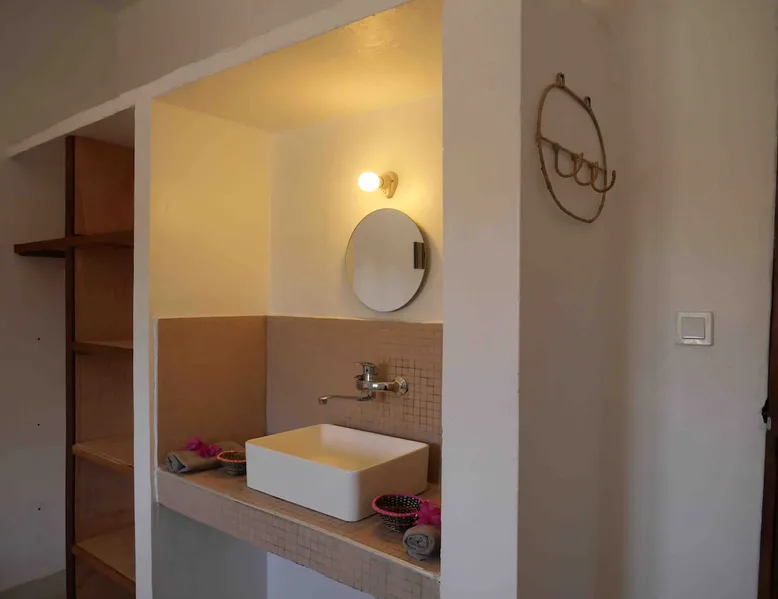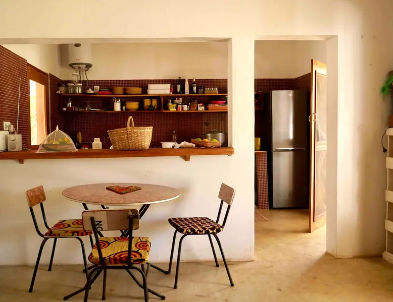 Suba Maison is a charming guest house in Toubab Dialaw, an authentic fishermen's village on the rocky coast south of Dakar and close to the airport. The house has 5 double rooms for rent. The swimming pool and green enclosed garden with shade under a big tree give you all the relaxation you need during your stay. Chambre Kaolack is on the first floor of Suba Maison, has a big double bed, a big sink in the room and shower and toilet next to the room shared with chambre Fatick. Guest access Besides of the private room, guests have access to the ground floor living room, the loggia, as well as the garden and swimming pool with sun beds. Other things to note Suba Maison aims to create a little community with the guests during their stay. We love to welcome musicians, dancers, and other creative people. If needed, there is a workspace/atelier for making artwork. We have two dogs hanging out with us, Blacky and his son Simba, who are chearful animals not disturbing you and living their life playing with their friends in the neighbourhood.