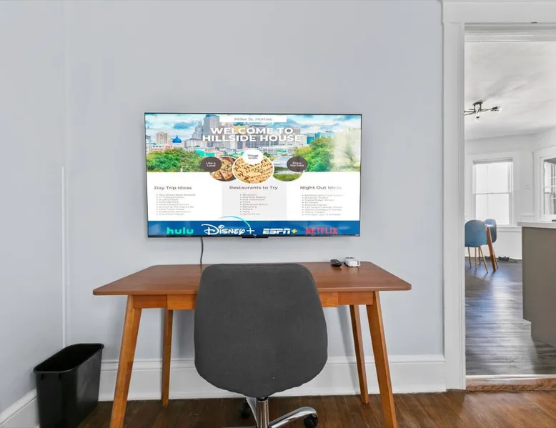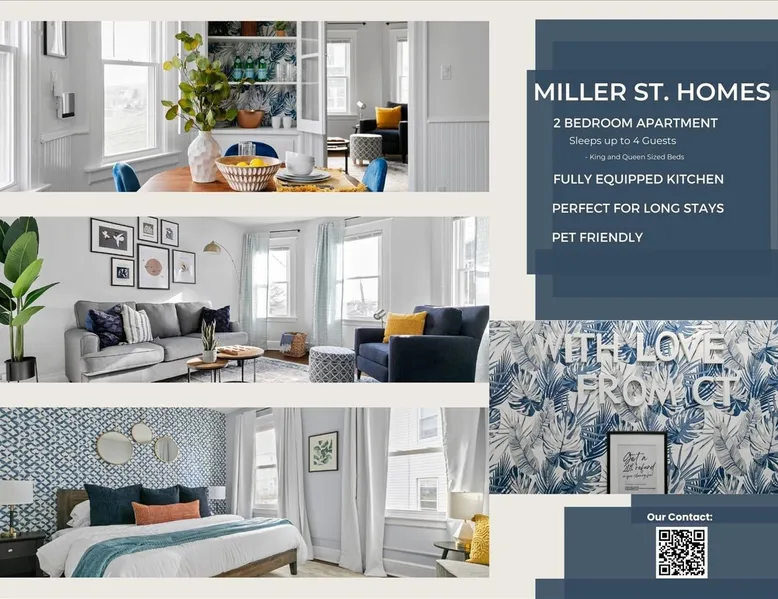 Enjoy easy access to everything from this perfectly located home base with stylish decor and comforts of home. * Comfortable King Bed * 65" Roku TV with Netflix, Hulu, Disnet+ * 12 Medical Facilities within 8 miles * Office space * Hi-Speed Fiber internet * One off Street Parking spot * 50" Roku TV with Netflix, Hulu, Disnet+ * Pet Friendly * Sleeps 4 * Quiet locations The space This newly renovated Airbnb unit in the heart of Connecticut is designed to cater to your needs. With stylish decor, a comfortable king and queen bed, and a 65" and 50” Roku TV for relaxation, you can unwind after a long day at work. Stay productive with the provided office space and enjoy hi-speed internet throughout. Conveniently located near 12 medical facilities within an 8-mile radius, you'll have easy access to your work. One off-street parking spot, pet-friendly policy, and a quiet location complete the package. Sleeps 4, with only 2 steps to enter from the parking area. Your ideal home away from home awaits you here. Other things to note Currently, there is a deck rebuild in process to further enhance the property. We will continue to work closely with management and guests to minimize any inconvenience.