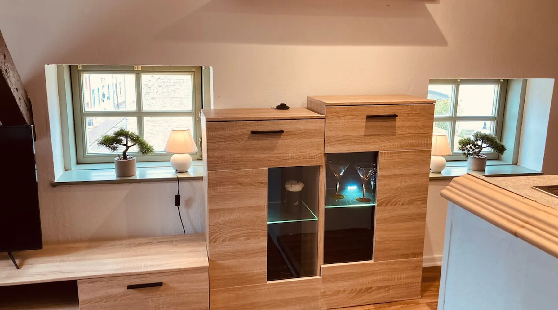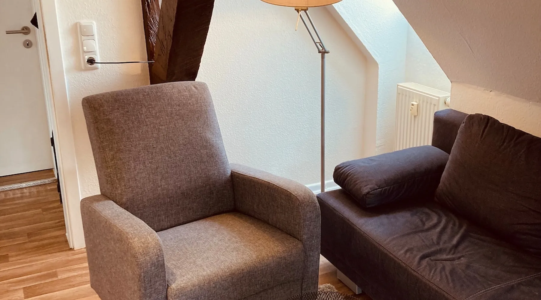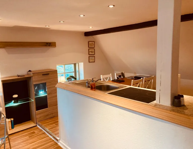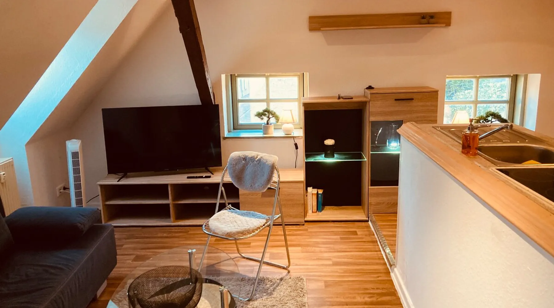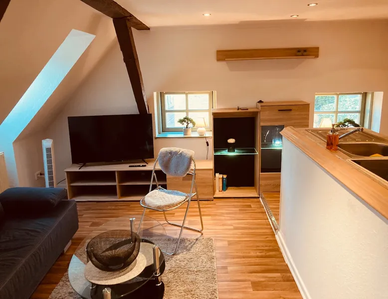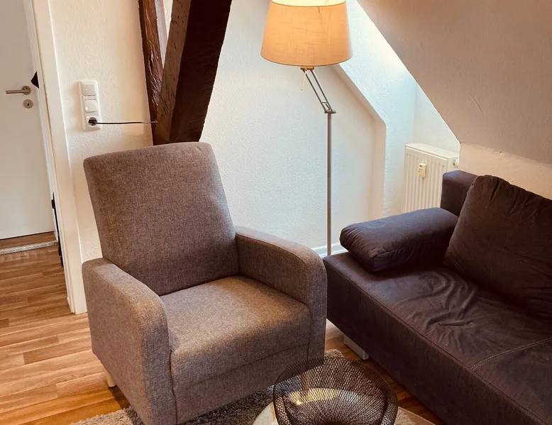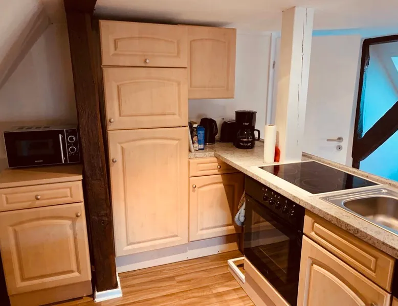Small cozy attic apartment in Wolgast, between market square, old town and harbor. Very centrally located. Equipped with everything: bathroom with shower and washing machine; kitchen with dishwasher, stove, oven, microwave, kettle, coffee machine; bedroom with 1.40 m wide bed. The apartment can be reached by a steep stair and the ceiling height is low. But with 45 square meters of living space, everything is fully furnished and very comfortable. Other things to note To rent from a week
