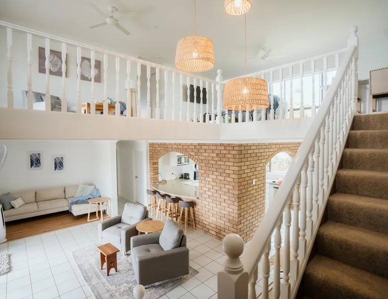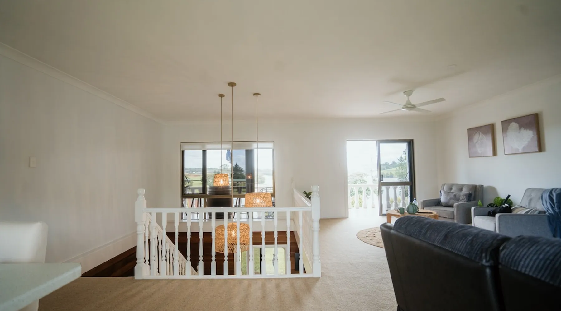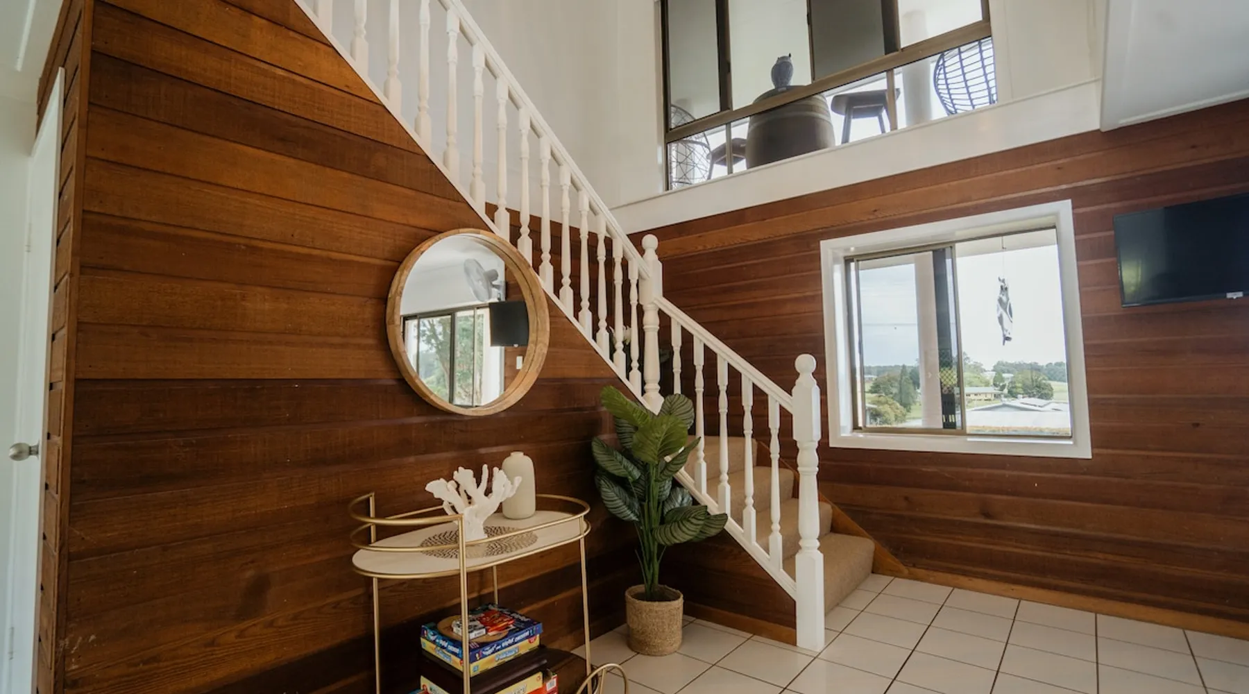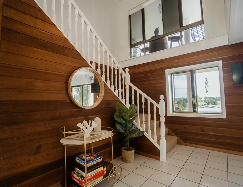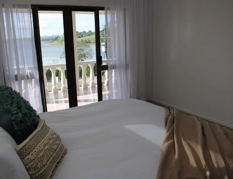 This stylish Hamptons inspired house is a beautiful home away from home. Stunning lake views from nearly every room in the house. Its open plan living is flooded in natural light. The house has been freshly updated throughout the living, kitchen, dining, and bedrooms. Enjoy the tranquillity of our home for you to relax and unwind as this is located in a very quiet and peaceful neighbourhood. It is truly the ultimate relaxing getaway two levels all with breath taking panoramic views of the Lake. The space A beautiful, expansive property with five King- and Queen-sized bedrooms, and 3 bathrooms situated on a 1,250m2 block suited for up to 5 couples Our home has 2 large living areas, a large kitchen which includes all your favourite amenities, including a coffee maker and it looks out to the Lake. The 1st floor features 1 bedroom and bathroom, office, living area, dining area, kitchen, and laundry. The 2nd floor has 4 bedrooms one with an ensuite, also another bath/shower and separate toilet plus large living area with 2nd TV and kitchenette. There is Wi-Fi and Netflix available. Enjoy a night in watching a movie in the lounge or roast some marshmallows over the firepit. With indoor and outdoor dining areas, BBQ, board games and much more, it is the perfect setting for a holiday, a retreat, a celebration or just an opportunity to escape the hustle and bustle. You are also welcome to help yourself to fruit available on the lime and lemon trees in the backyard. Guest access Guests will have access to the entire main house except for 2 small storage rooms. The shed is locked and NOT accessible to Guests. There is a single car garage and plenty of outdoor parking available on the property. Other things to note We are located in a rural setting so you need to be mindful of insects and other creatures that may be around the property. You will regularly hear and see bush turkeys and curlews. This property has NBN service, so Wi-Fi is available but is not always reliable. Sometimes there is also limited mobile phone service if you are not with a major service provider. Yungaburra Food Works is open till 8pm every day.