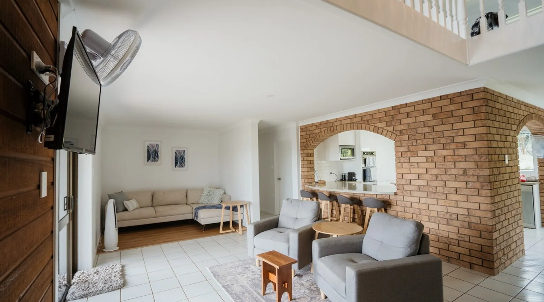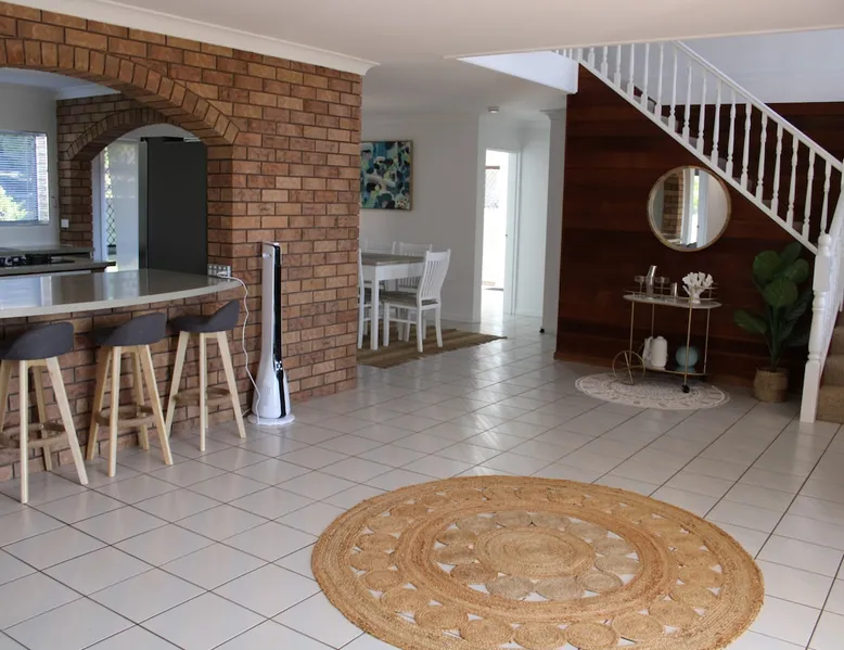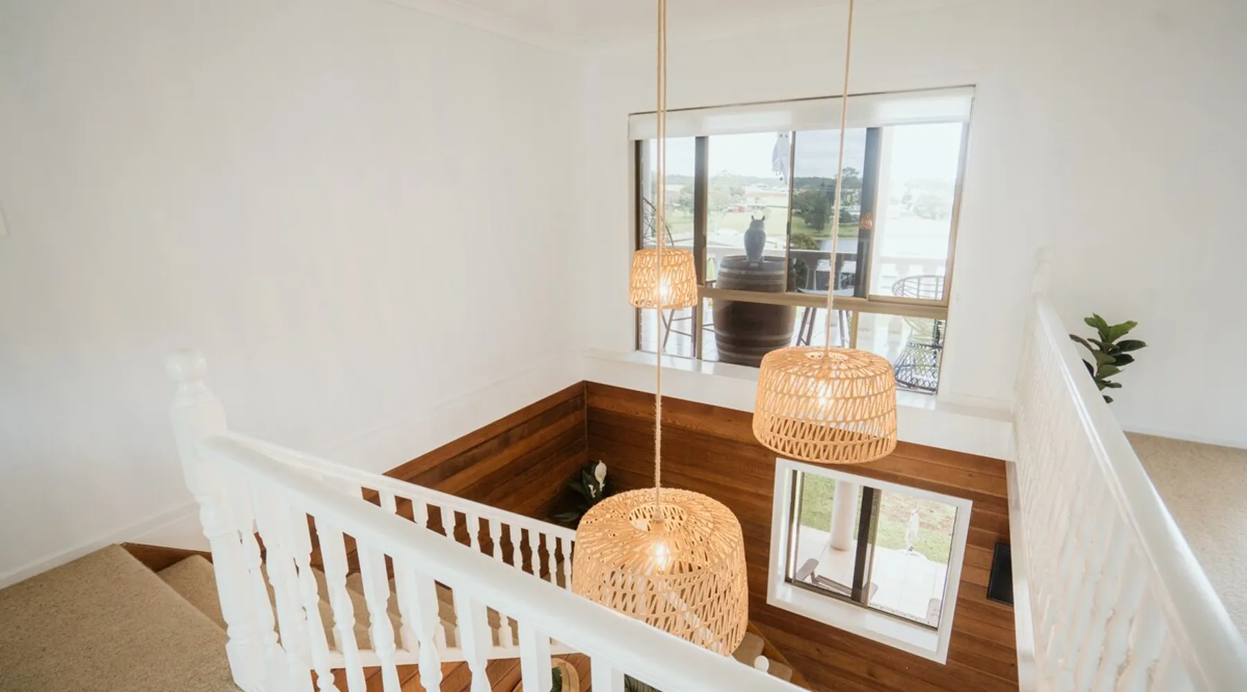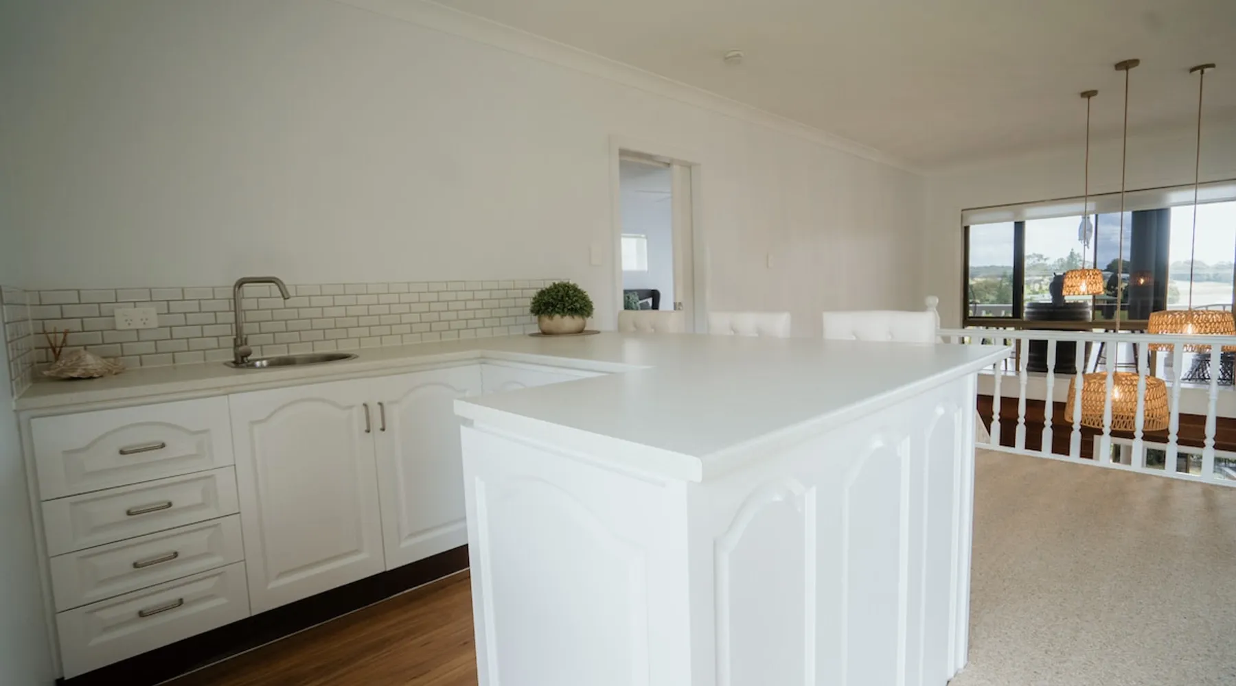 This stylish Hamptons inspired house is a beautiful home away from home. Stunning lake views from nearly every room in the house. Its open plan living is flooded in natural light. The house has been freshly updated throughout the living, kitchen, dining, and bedrooms. Enjoy the tranquillity of our home for you to relax and unwind as this is located in a very quiet and peaceful neighbourhood. It is truly the ultimate relaxing getaway two levels all with breath taking panoramic views of the Lake. The space A beautiful, expansive property with five King- and Queen-sized bedrooms, and 3 bathrooms situated on a 1,250m2 block suited for up to 5 couples Our home has 2 large living areas, a large kitchen which includes all your favourite amenities, including a coffee maker and it looks out to the Lake. The 1st floor features 1 bedroom and bathroom, office, living area, dining area, kitchen, and laundry. The 2nd floor has 4 bedrooms one with an ensuite, also another bath/shower and separate toilet plus large living area with 2nd TV and kitchenette. There is Wi-Fi and Netflix available. Enjoy a night in watching a movie in the lounge or roast some marshmallows over the firepit. With indoor and outdoor dining areas, BBQ, board games and much more, it is the perfect setting for a holiday, a retreat, a celebration or just an opportunity to escape the hustle and bustle. You are also welcome to help yourself to fruit available on the lime and lemon trees in the backyard. Guest access Guests will have access to the entire main house except for 2 small storage rooms. The shed is locked and NOT accessible to Guests. There is a single car garage and plenty of outdoor parking available on the property. Other things to note We are located in a rural setting so you need to be mindful of insects and other creatures that may be around the property. You will regularly hear and see bush turkeys and curlews. This property has NBN service, so Wi-Fi is available but is not always reliable. Sometimes there is also limited mobile phone service if you are not with a major service provider. Yungaburra Food Works is open till 8pm every day.