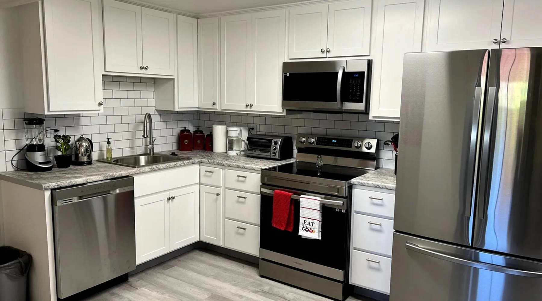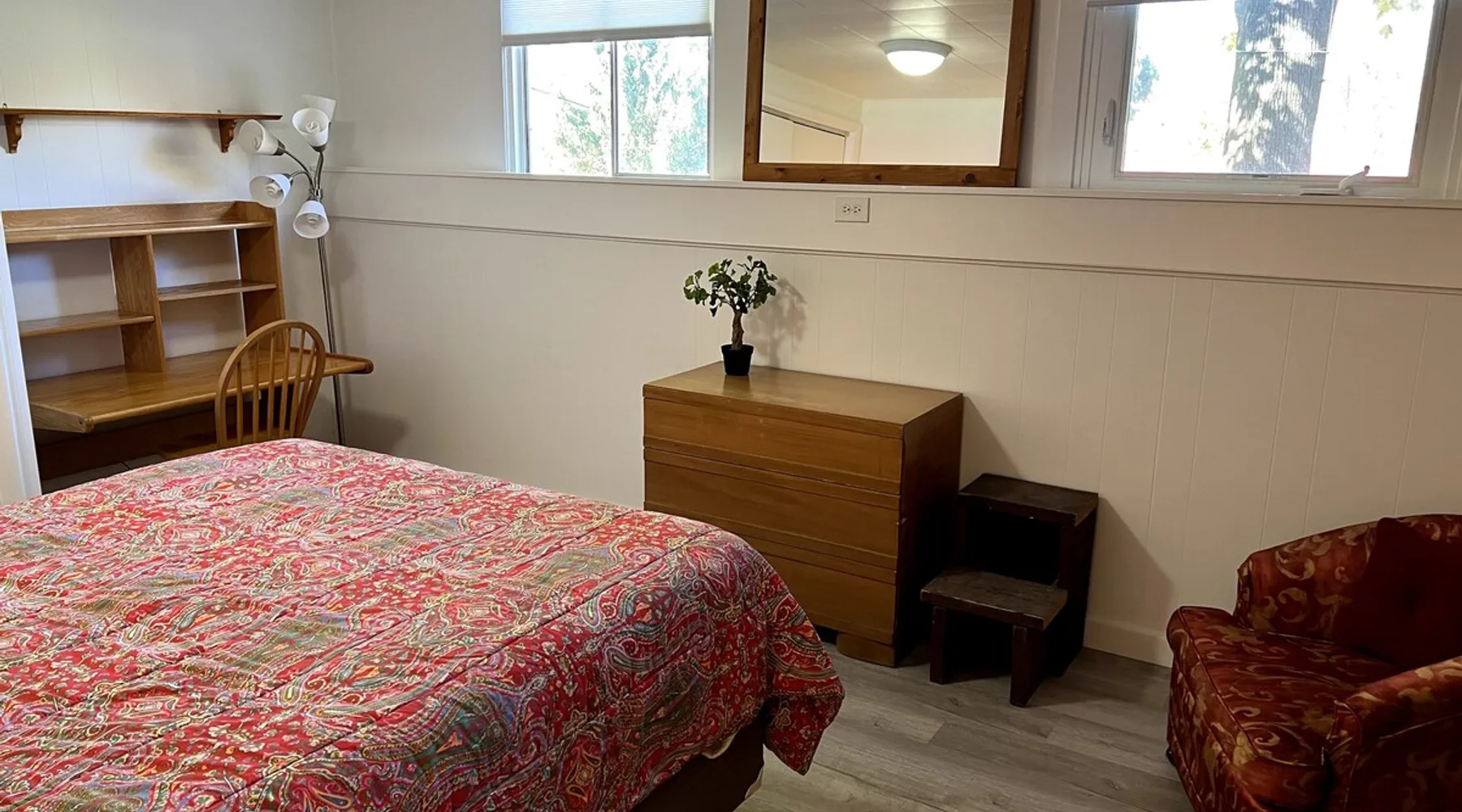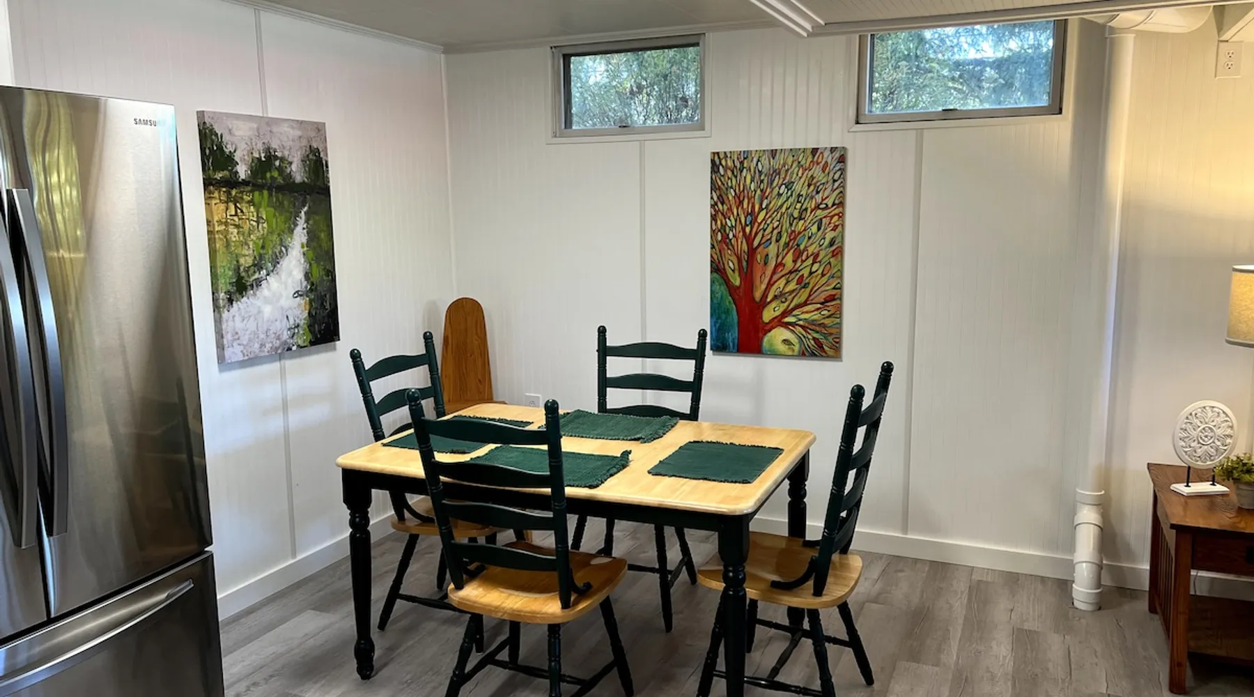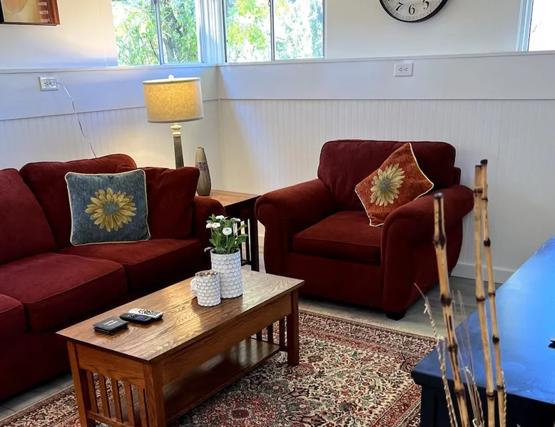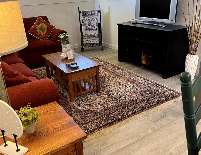 Forget your worries in this all new spacious and serene space. On a quiet cul de sac this full kitchen, one bedroom apt is just blocks from downtown, 2.5 miles from Beaver Stadium, and one block from bus stop and best pizza place in town! The space Situated on a large lot with huge shade trees, this daylight half-basement has large windows looking out onto the grounds and trees. The rooms are crisp and white with colorful furniture and appointments. The kitchen is all new and well equipped. Guest access Guests have their own outside entrance. Walk down along side of house, several steps, well lit walk with spotlights and switches at top and bottom.
