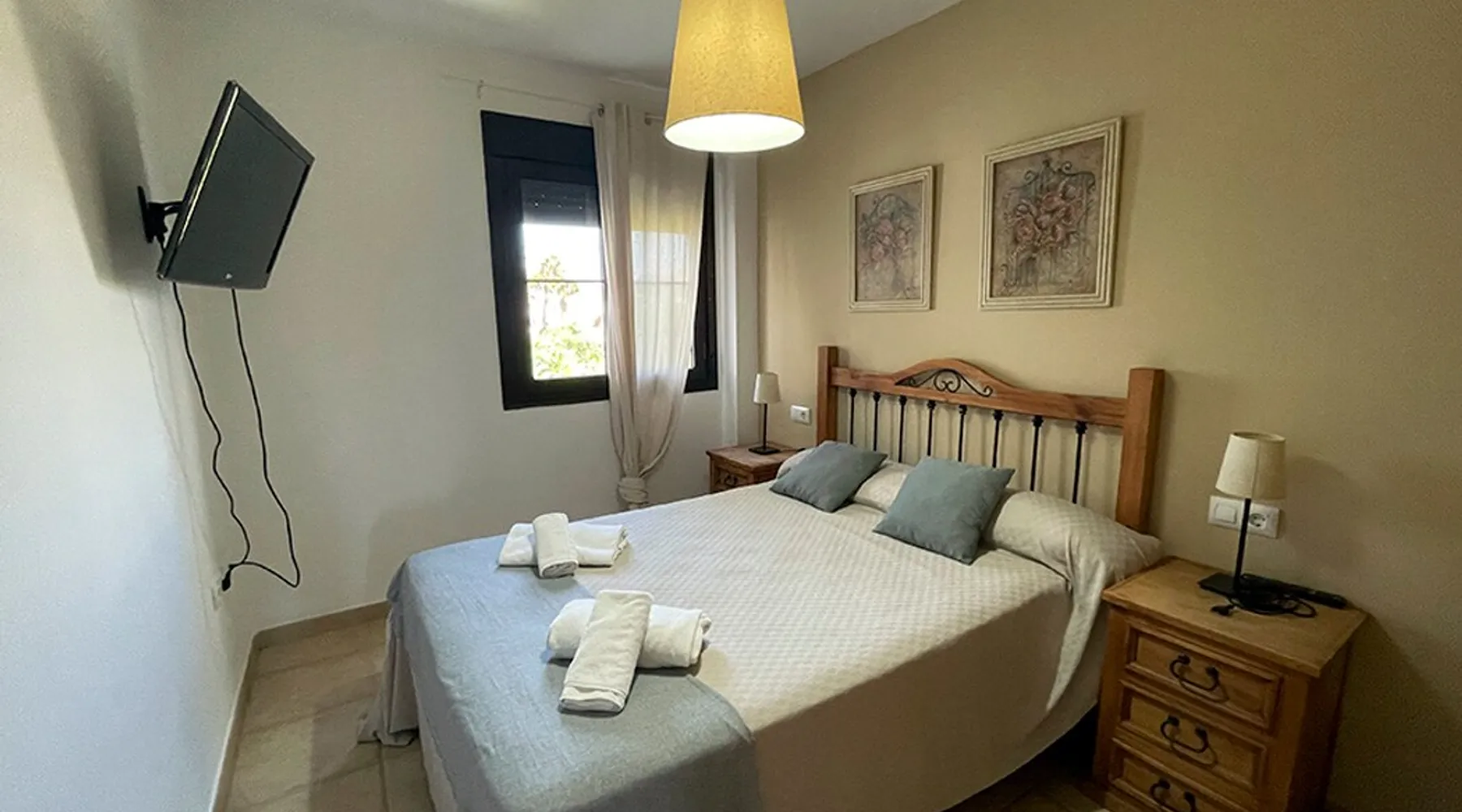 Magnificent accommodation 500 meters from the beach of La Barrosa, where you can enjoy a splendid atmosphere and create an unforgettable vacation The space This apartment on the 1st floor has a terrace, which you can access directly from the living room, equipped with outdoor furniture and with enough space and capacity for your use, since it is here that you usually have breakfast, lunch or dinner or even have a drink enjoying the pleasant views of the residential green areas and swimming pools Guest access It has 2 bedrooms, with lined wardrobes, living room with air conditioning, fully equipped independent kitchen including dishwasher and full bathroom. The capacity when having a sofa bed in the living room can reach up to 6 beds or alternatively locate an extra bed. This magnificent residential has 4 swimming pools, 2 for adults and 2 for children, large garden common areas, snack bar, mini golf, paddle tennis court and parking spaces listed within the residential. Other things to note For stays longer than 30 nights, electricity is not included in the price. 500 meters away is the access to the beach of La Barrosa, one of the best in Spain, with all the services, such as surveillance and lifeguards, toilets, etc., and an area with a wide gastronomic offer and an unbeatable value for money, making this the most suitable place to spend your summer holidays. You can choose from restaurants, pizzerias, burguers, "pescaito fito" from the bay, takeaway food, ice cream parlors, etc. In the area you can enjoy bird watching in the natural park, routes and trails for walking or cycling (rent at home), water sports, (kayaking, surfing, windsurfing, diving, sailing, etc.) you can practice golf or discover it in the numerous courses or municipal practice field, horseback riding, paintball, karts, quads routes, or simply relax strolling along the endless beach of La Barrosa of fine golden sand watching one of the most beautiful sunsets with the Castle of Sancti Petri in the background. The strategic location on the map of the town of Chiclana de la Frontera, is ideal to know the province of Cádiz. Directly connected to the motorway network, you can visit its capital, Cadiz, a city with 3,000 years of history and a wide range of museums, get to know the Jerez countryside in depth, visit its wineries, the Royal Andalusian School of Equestrian Art and enjoy watching Andalusian horses dance, breeding center, you can also visit the Doñana Natural Park, the ruins of Baelo Claudia, the whale and dolphin watching, the Sierra de Cádiz and its route of White Villages, shop in Gibraltar, spend a day in the Water Park of the Port of Santa María, endless activities. For stays of 30 nights or more, electricity is not included in the price Registration number VTF/CA/08031
