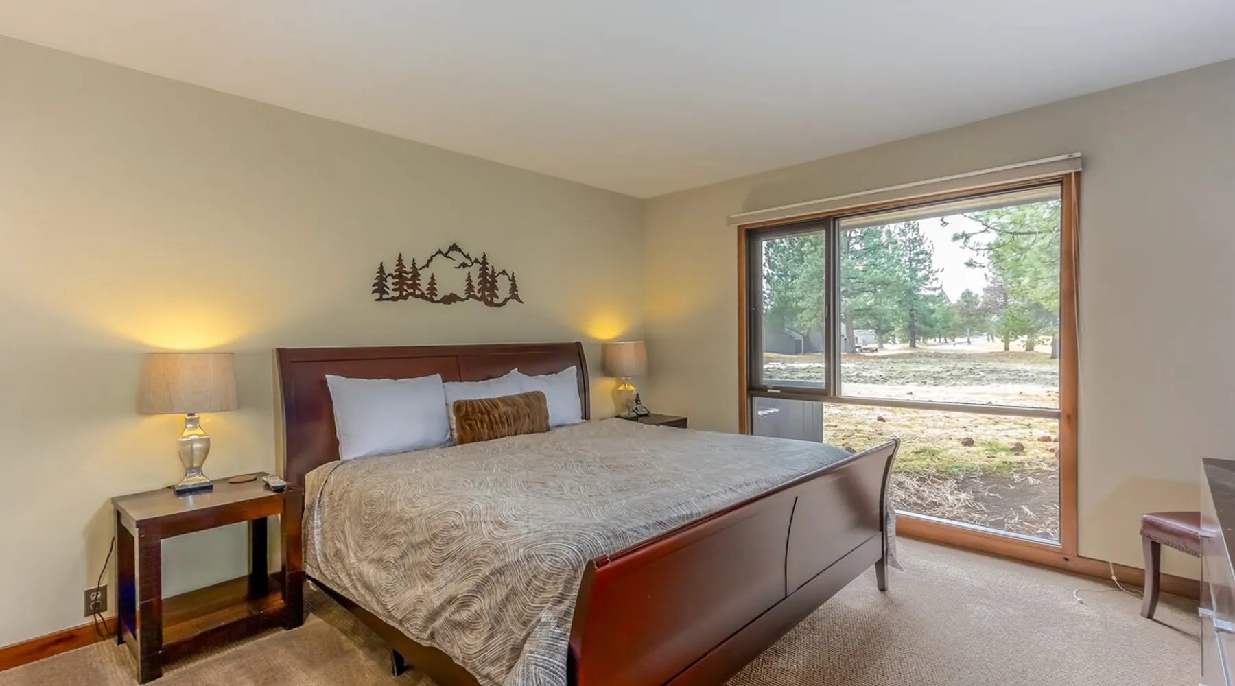 Escape to the beautiful Sunriver vacation home for your next getaway. This condo offers all the comforts of home, including air conditioning and a gas fireplace. Perfect for couples or families looking for a mountain getaway. The space A luxurious 2 bedroom, 2 bath condominium in the popular Meadow House complex with a view of the award-winning Meadows Golf Course. Conveniently located a short distance to the Village at Sunriver, Sunriver Lodge, you might opt to leave the car behind when out exploring the area! This condo has all the upgrades and charm to make your Sunriver experience truly exceptional. The family chef will feel right at home in the gourmet kitchen with custom cabinets, slab granite counter-tops, stainless appliances and commercial-grade gas range. An adjacent dining area features a wood farmhouse table with seating for 6 and opens up to a great outdoor living space with comfortable patio seating, overlooking the golf course, and a gas BBQ for hosting summer meals. Head back inside to the living area, tastefully decorated with leather seating that boasts a flat screen TV, gas stone fireplace, hardwood flooring, board games and books-creating a great cozy feeling on a snow-filled winter night! Down the hall is the laundry room, a full bathroom with jacuzzi tub and well-appointed ensuite bedroom with a comfortable King bed. On the upper level you will find the loft-bedroom suite with 2 Twin beds and a private bathroom. This unit has air conditioning! Enjoy that cool A/C air or head outside and take a bike ride anywhere in Sunriver on one of the 2 adult bikes provided with this vacation rental house. No garage access with this home. Family Reunion? Book this home along with our other Meadow House Condos, Meadow House 1, Meadow House 3, Meadow House 4, Meadow House 5, Meadow House 6, Meadow House 75, and Meadow House 85 to have the whole family close together. Guest access Home access information will be sent 7 - 10 days prior to arrival. All homes are set up for self check-in, no need to stop by the office, just go straight to the home. Other things to note AGE RESTRICTIONS: Guests must be 23 years or older to rent Bennington homes and the person reserving must occupy the home the whole reservation.