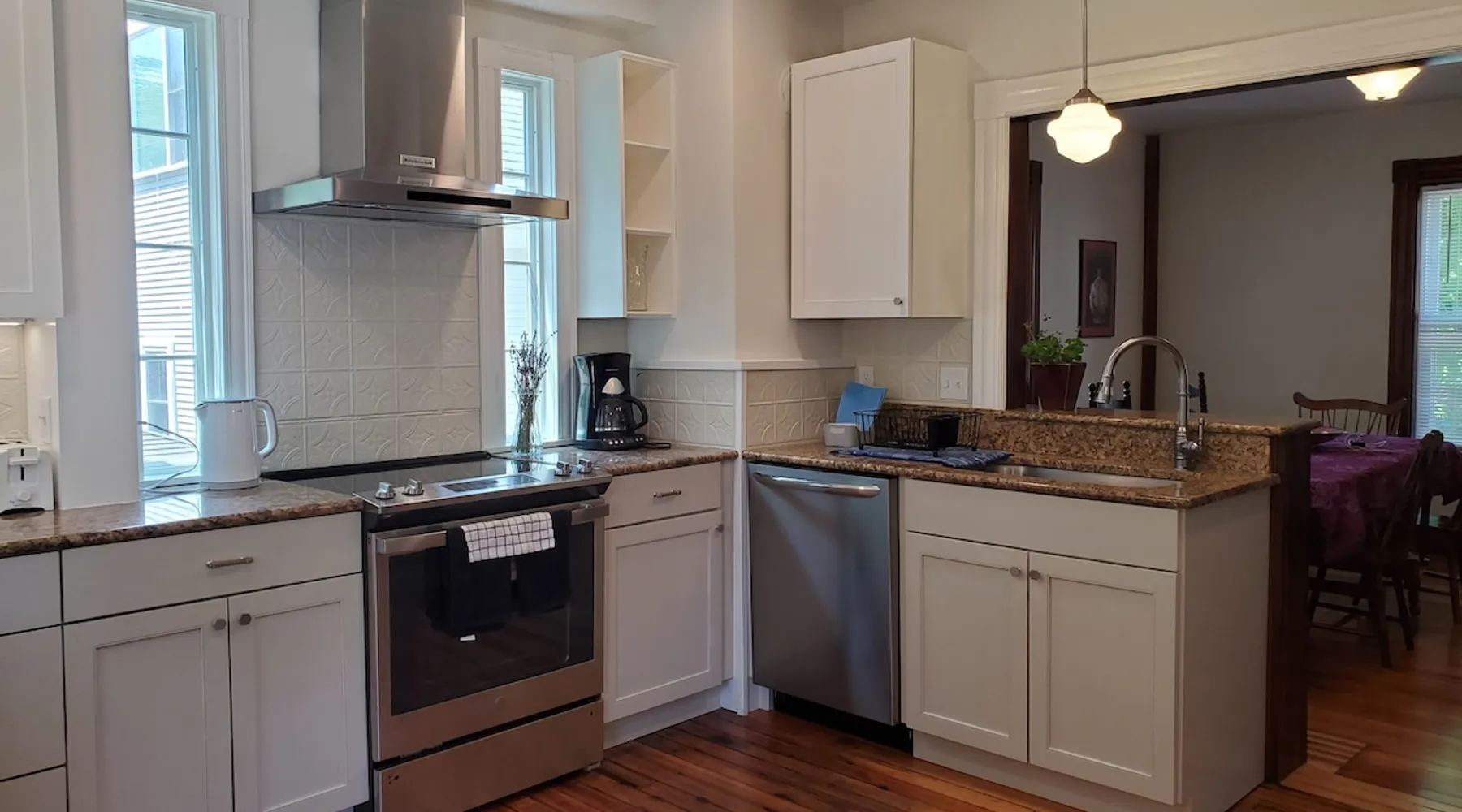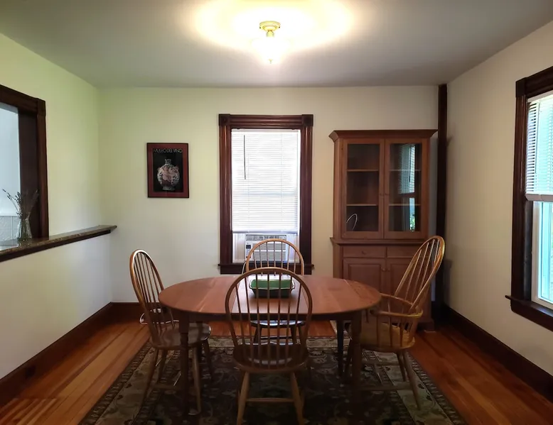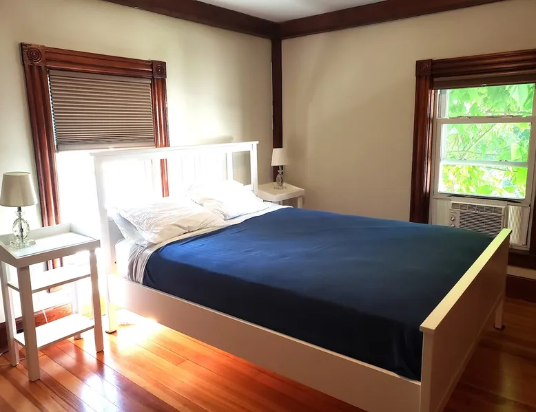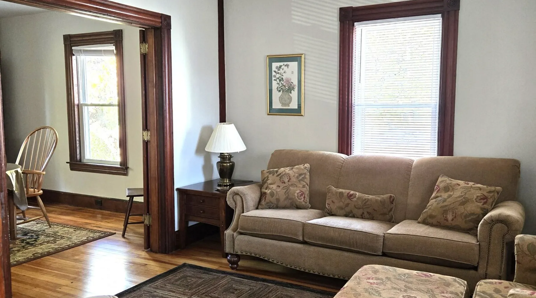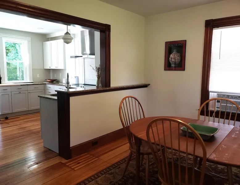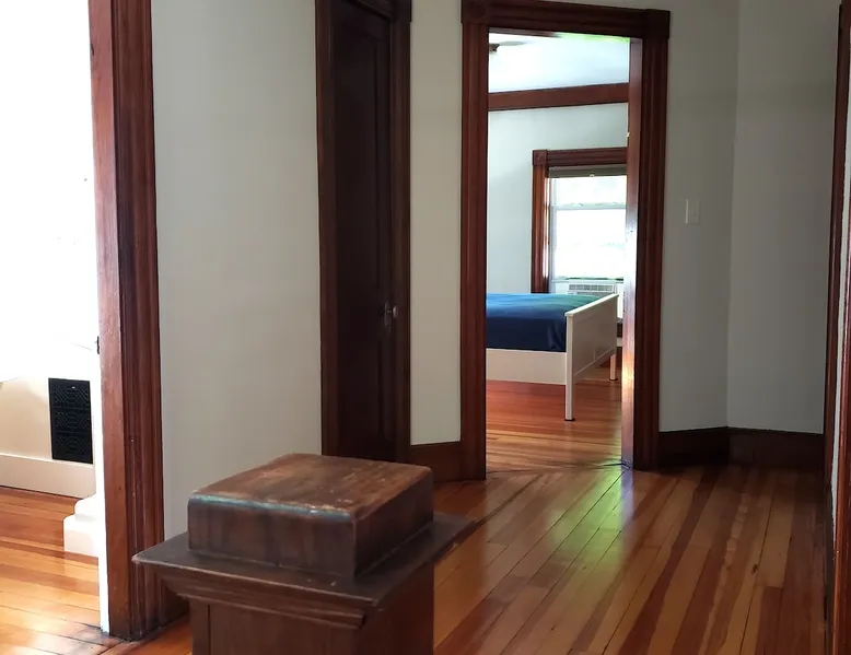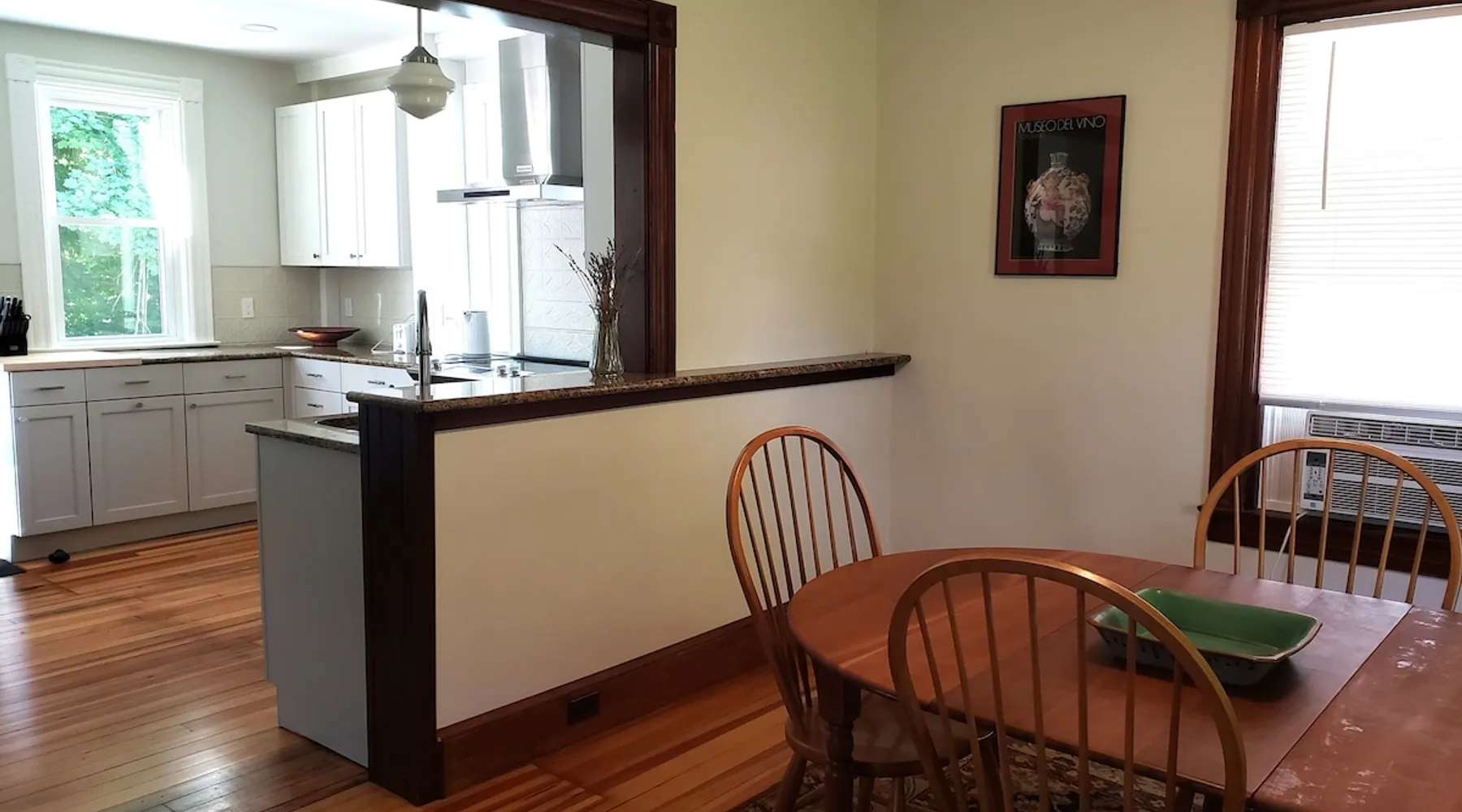 This renovated historic house is easily walkable to cafes, stores, the train station, horse shows, yet on a quiet street. 1 mile to Smith College, 7 miles to UMass. Hop on the nearby bike path, or walk on trails across the street. Comfortably enjoy a house with unscented, ecofriendly laundry and cleaning products, cotton bedding, and multiple sustainability practices. Ask for high chair and portacrib. Please read dog rules before booking. Contact host to book with a 2 br apt next door. The space This 19th century single family house has been completely restored with a great attention to detail. On the main floor, cook in the beautifully appointed kitchen, or enjoy the games and books provided. Upstairs, bathe in a vintage clawfoot tub, or have a morning coffee on the small balcony perched among the trees. The bedrooms and main floor are air conditioned and the house is highly insulated. Amenities include a washer and dryer, a yard with a dining table and grill, and a locked garage area where guests may store bikes. Guest access The entire house and yard is for the sole use of guests. Other things to note There are two houses on 1/3 acre lot. They are completely independent with a shared parking area.