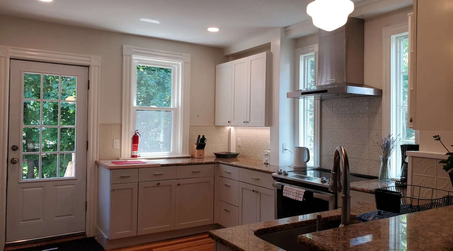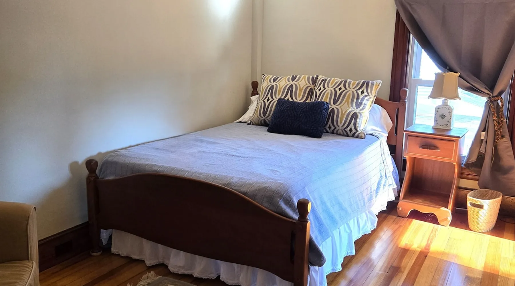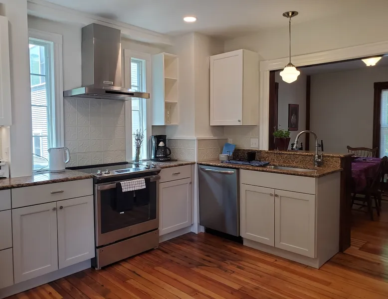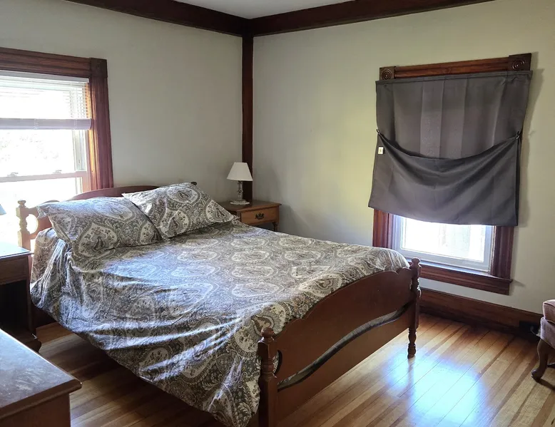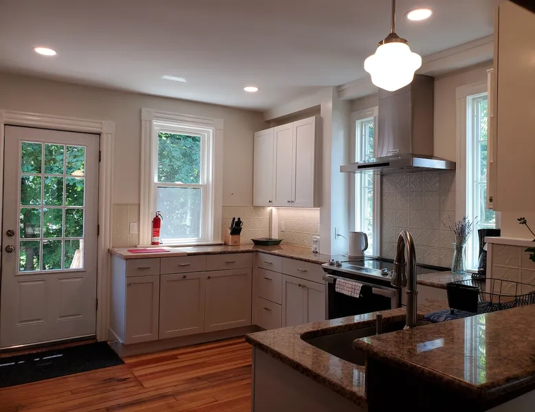 This renovated historic house is easily walkable to cafes, stores, the train station, horse shows, yet on a quiet street. 1 mile to Smith College, 7 miles to UMass. Hop on the nearby bike path, or walk on trails across the street. Comfortably enjoy a house with unscented, ecofriendly laundry and cleaning products, cotton bedding, and multiple sustainability practices. Ask for high chair and portacrib. Please read dog rules before booking. Contact host to book with a 2 br apt next door. The space This 19th century single family house has been completely restored with a great attention to detail. On the main floor, cook in the beautifully appointed kitchen, or enjoy the games and books provided. Upstairs, bathe in a vintage clawfoot tub, or have a morning coffee on the small balcony perched among the trees. The bedrooms and main floor are air conditioned and the house is highly insulated. Amenities include a washer and dryer, a yard with a dining table and grill, and a locked garage area where guests may store bikes. Guest access The entire house and yard is for the sole use of guests. Other things to note There are two houses on 1/3 acre lot. They are completely independent with a shared parking area.