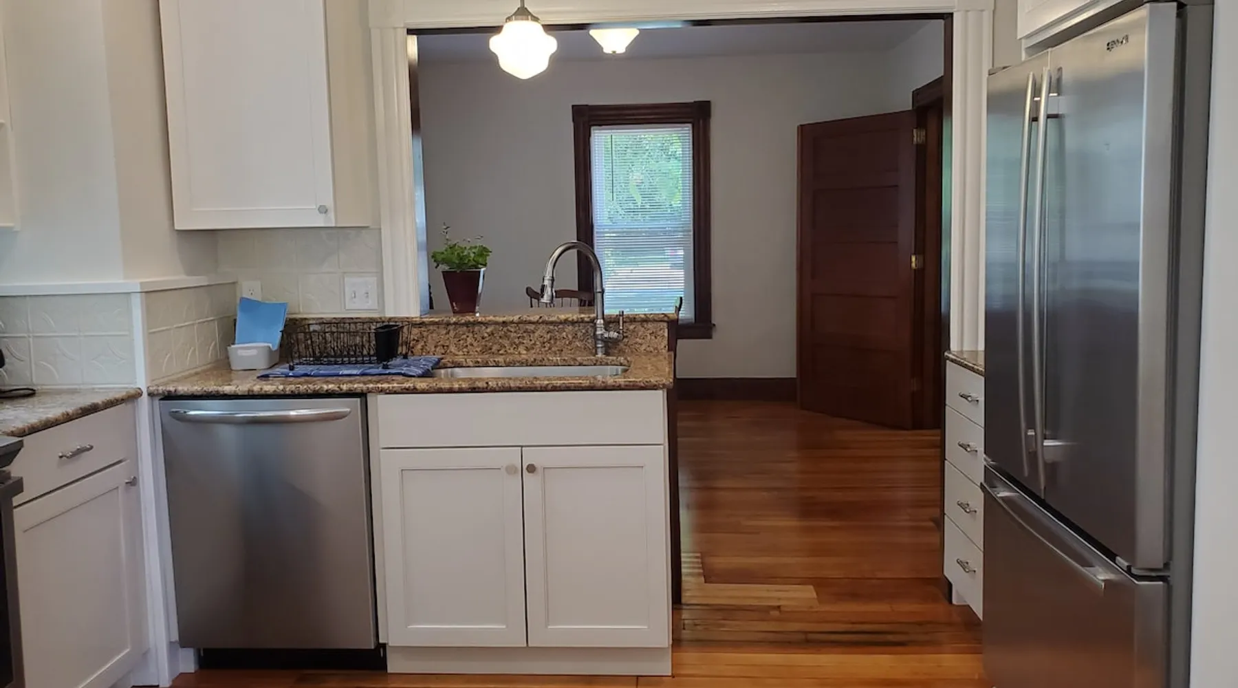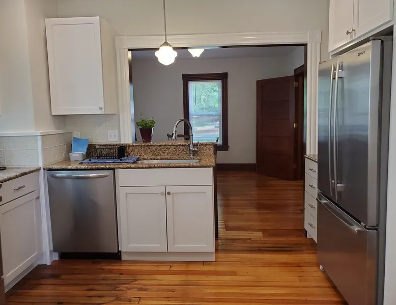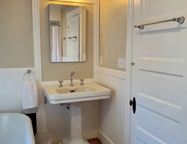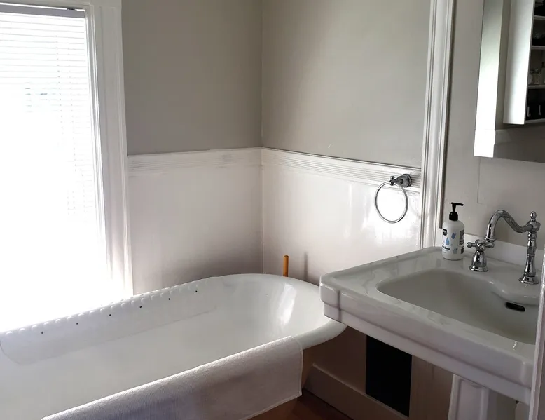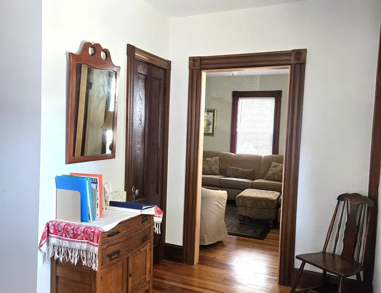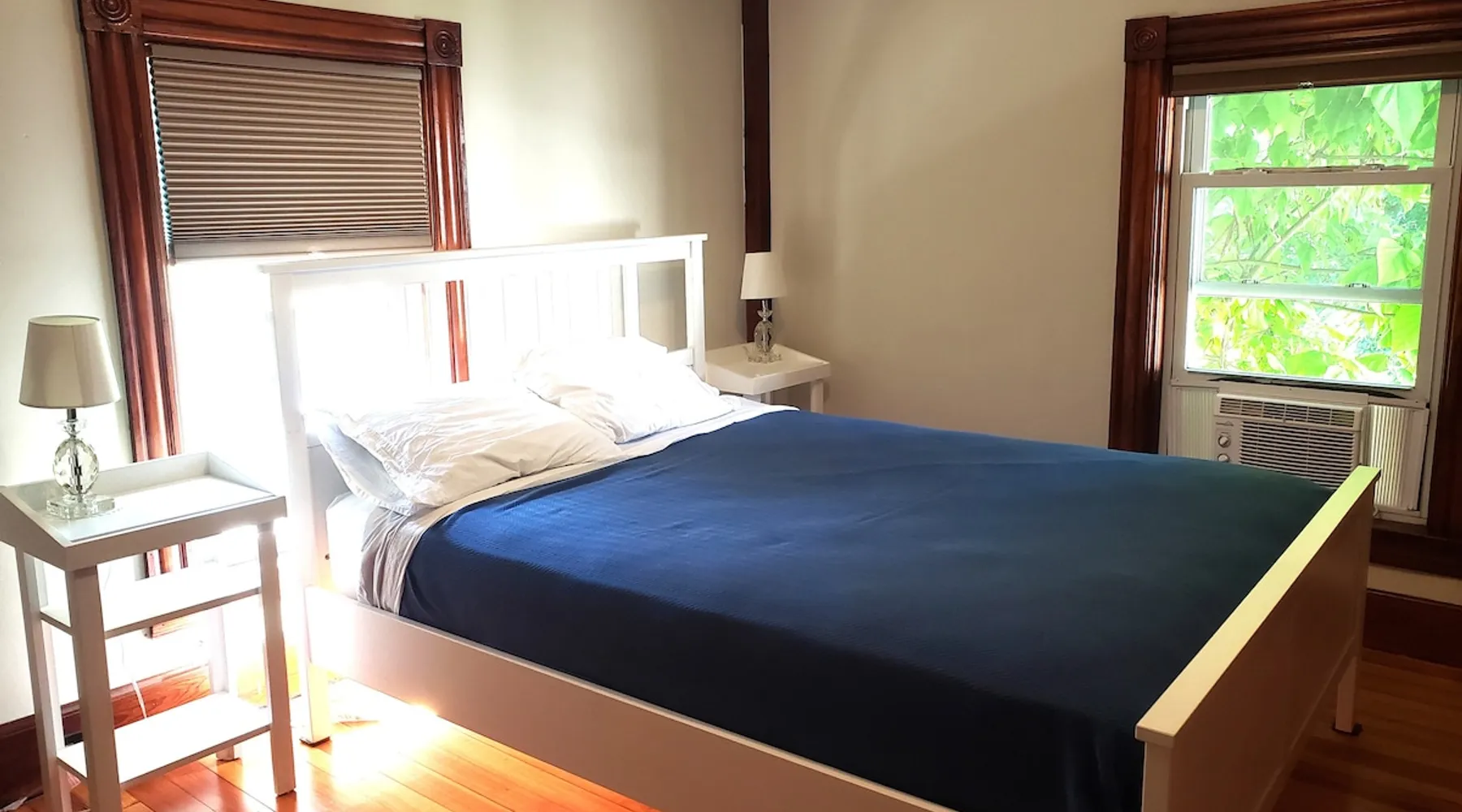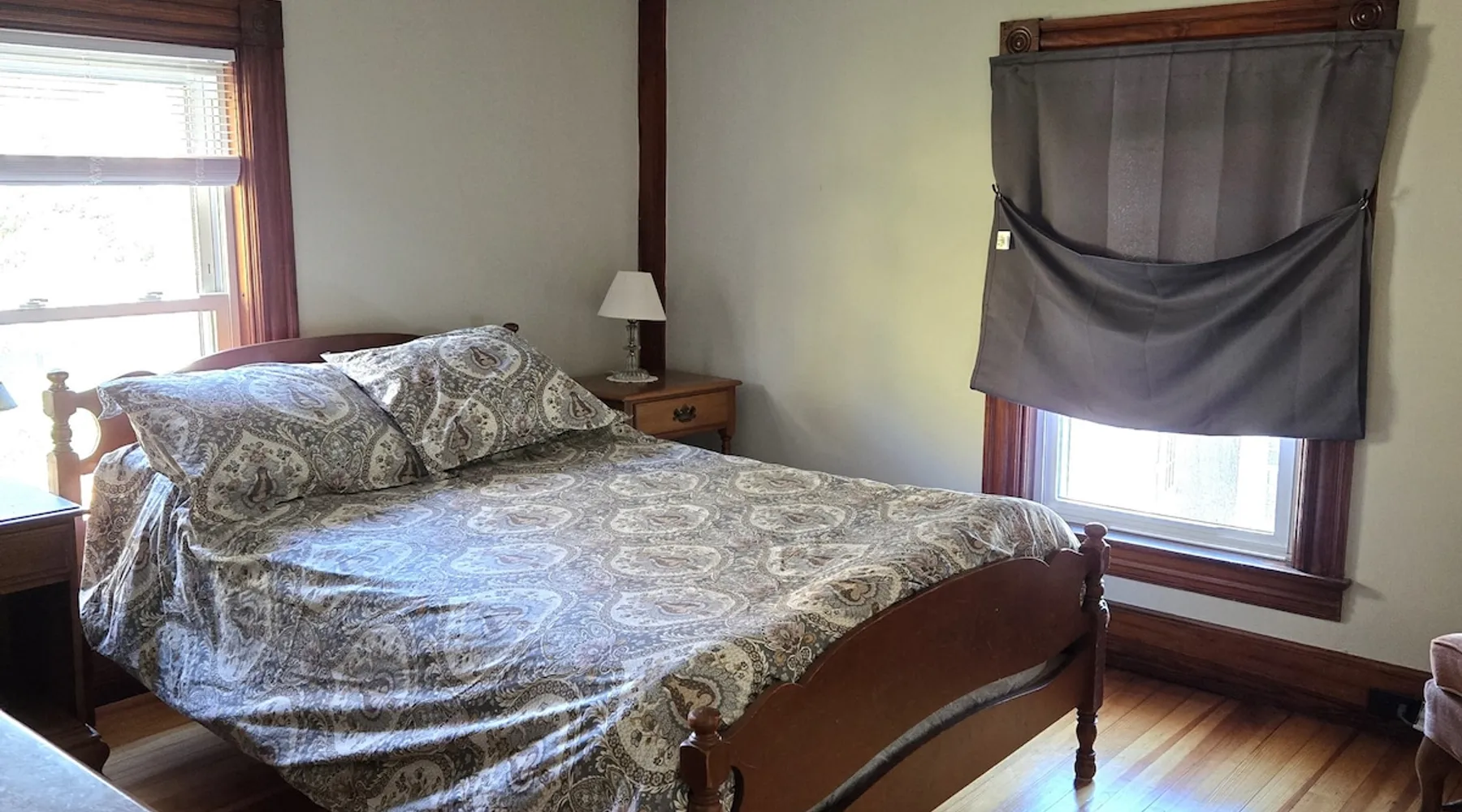 This renovated historic house is easily walkable to cafes, stores, the train station, horse shows, yet on a quiet street. 1 mile to Smith College, 7 miles to UMass. Hop on the nearby bike path, or walk on trails across the street. Comfortably enjoy a house with unscented, ecofriendly laundry and cleaning products, cotton bedding, and multiple sustainability practices. Ask for high chair and portacrib. Please read dog rules before booking. Contact host to book with a 2 br apt next door. The space This 19th century single family house has been completely restored with a great attention to detail. On the main floor, cook in the beautifully appointed kitchen, or enjoy the games and books provided. Upstairs, bathe in a vintage clawfoot tub, or have a morning coffee on the small balcony perched among the trees. The bedrooms and main floor are air conditioned and the house is highly insulated. Amenities include a washer and dryer, a yard with a dining table and grill, and a locked garage area where guests may store bikes. Guest access The entire house and yard is for the sole use of guests. Other things to note There are two houses on 1/3 acre lot. They are completely independent with a shared parking area.