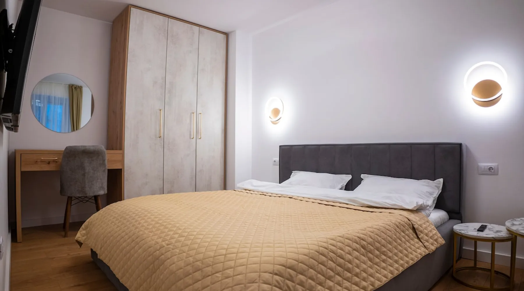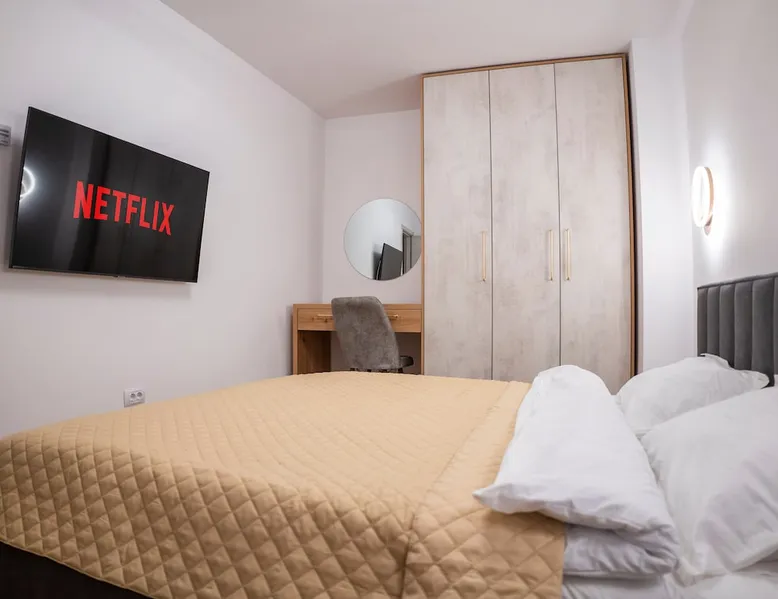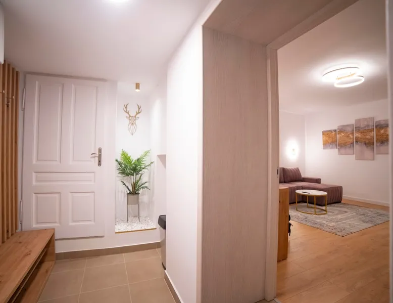Enjoy a stylish experience in this centrally located home. A3 is an apartment with a Scandinavian design, located in the center of Brașov, on Republicii street number 18, very close to all the central tourist attractions of Brasov, such as Piata Sfatului, Biserica Black, Strada Sforii, etc. The apartment does not have a kitchen. There are many restaurants and cafes nearby. The space The space consists of a living room, a bedroom, a hall and a bathroom.