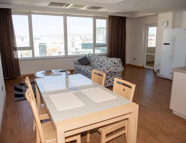 Spacious Accommodations: Lovely 2 BR unit with city view offers a spacious apartment in Ulaanbaatar. The property features two bedrooms and a bathroom, providing ample space for guests. Modern Amenities: Guests enjoy free WiFi, a elevator, and family rooms. The apartment includes a balcony, washing machine, kitchen, and dining area. Additional amenities include a work desk, TV, and parquet floors. Prime Location: Located in the city center, the apartment is an 18-minute walk from Sukhbaatar Square and 0.6 mi from the National Museum of Mongolian History. Nearby attractions include Chinggis Khan Statue and the International Intellectual Museum. Guest Satisfaction: Highly rated by guests, the property is praised for its convenience for city trips and its convenient location. The well-fitted kitchen has a stovetop, a refrigerator, a dishwasher and kitchenware. The spacious apartment offers a washing machine, a tea and coffee maker, a seating area, a dining area and a flat-screen TV with cable channels. The unit has 2 beds.