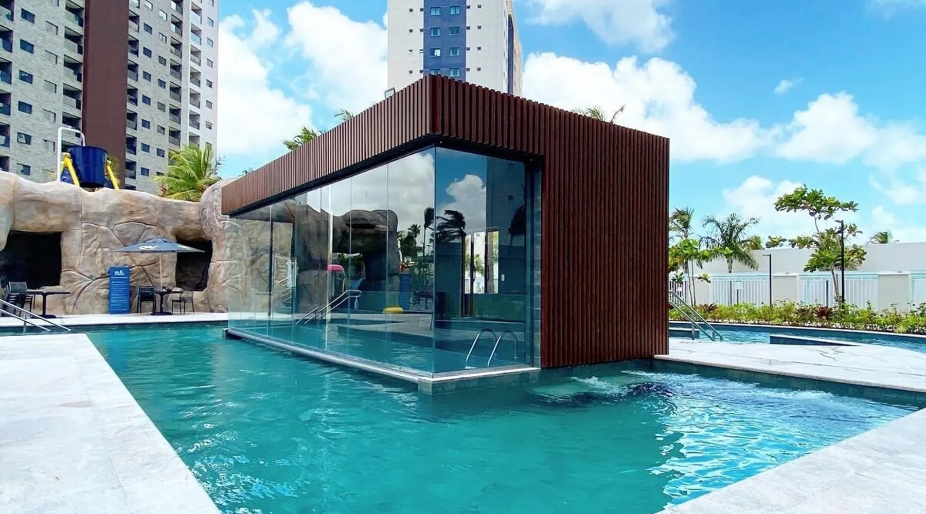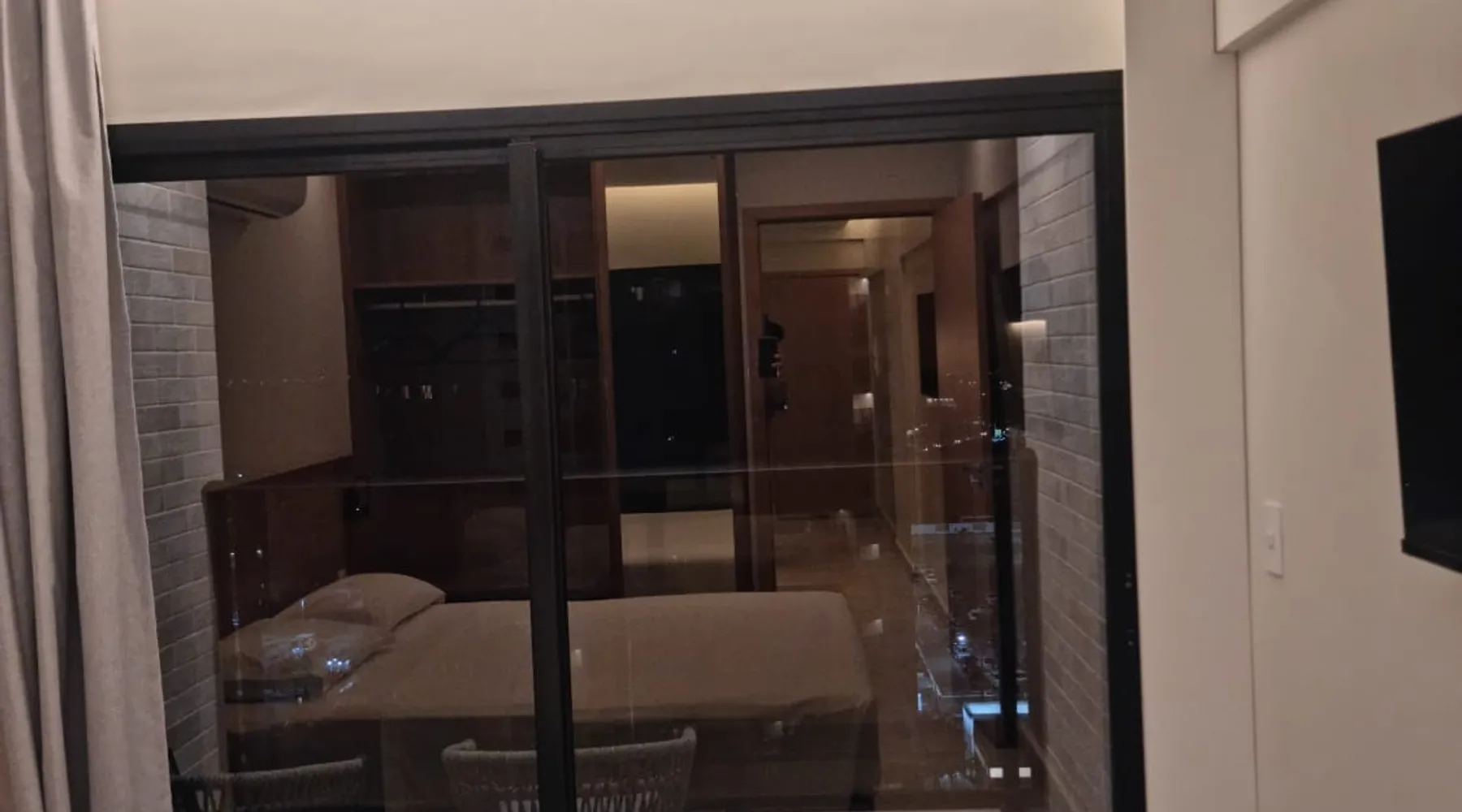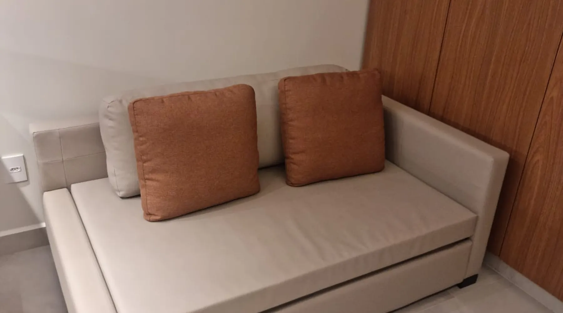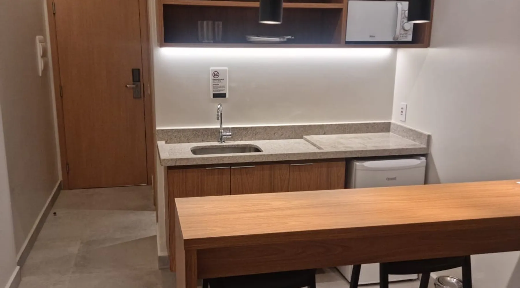 Apartment of 30m². Integrated American kitchen and living room. Living room with sofa bed, 40”smart TV and air-conditioning. Kitchen with counter and stools, microwave, minibar and basic utensils. Room with a double bed, 40”Smart TV, air-conditioning and balcony. Apartment has 01 bathroom, amenities and complete linen. Free wifi in the apartment and social areas. Maximum capacity of 4 adults.