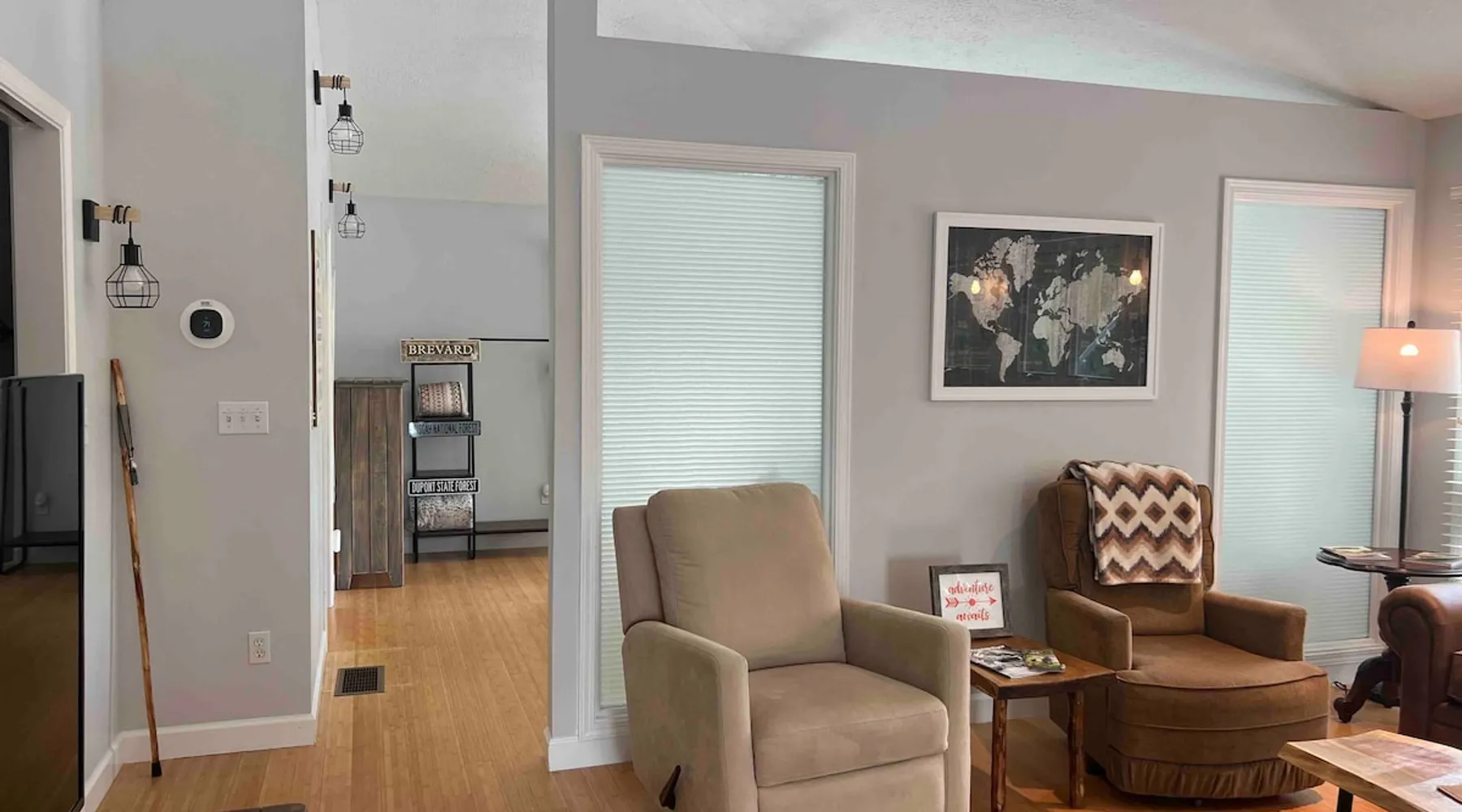 Mountain bikers, hikers, and outdoor lovers will love Pisgah Place. Fully private mountain home with an amazing view of the Blue Ridge Mountains. Centrally located between Pisgah National Forest (10 minutes) and DuPont State Forest. Just minutes to biking and hiking trails, waterfalls, and downtown Brevard. Explore nearby Blue Ridge Parkway (25 minutes) and The Biltmore (40 minutes) from this cozy mountain getaway. The space We have stayed in many Airbnb properties in the greater Brevard, NC area over the last several years. Thus, when choosing our getaway home, we were very picky in selecting its location. Here are some reasons why we love our property and think you will too. 1) Location. We can't say it enough. This spot really gives you very convenient access to Brevard, DuPont, and Pisgah. Other locations are much further to one or the other. 2) Truly private. Many of the Airbnb's we've stayed in are in someone's basement or in a small structure next to their home. Often the listing won't show their neighbor who is just feet away. Pisgah Place is a completely private home that you'll have all to yourself with no sight of any other houses. 3) Mountain view. It's crazy, but it's actually tough to land a place with a real mountain view in this area. 4) Cellphone signal. MANY of the places you can stay in this area do not have any signal or very weak signal. We have GREAT cell signal. 5) Easy access. The few places we've stayed that felt more secluded or that had a view were a long way off the beaten path. We have a relatively short and well-maintained gravel driveway that is right off from a main highway. Guest access You'll have access to the whole house. Other things to note Please note there is no actual door to the main bedroom. It is walled off, but it has open access.