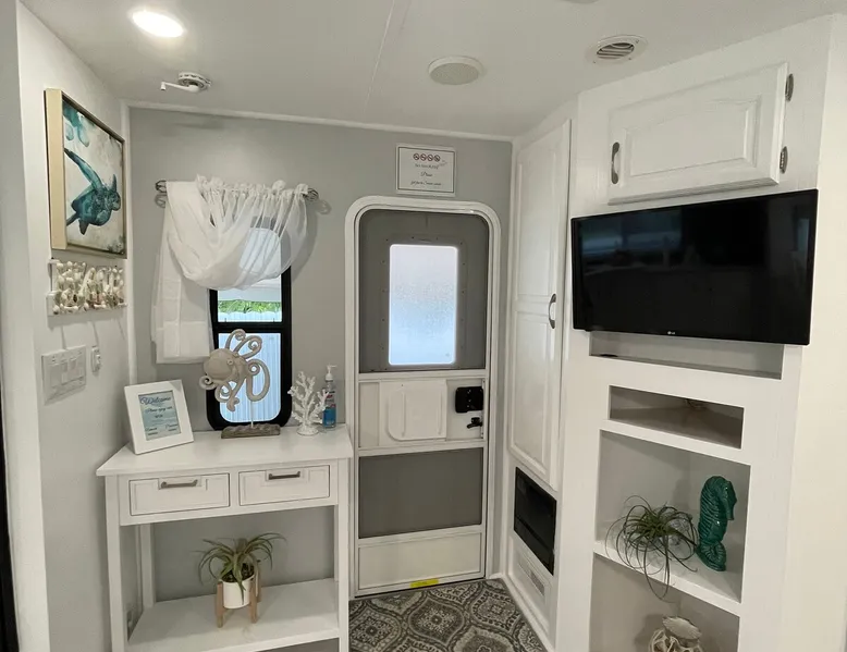 Great location! RV is completely fenced for privacy, with parking next to the RV. We are 30 minutes away from the Key Largo, Everglades National Park, Biscayne National Park, Schnebly's Winery, Homestead Speedway, Alligator farm, Metro Zoo, Fruit and Spice Park, hot air balloon rides, skydiving, Scuba diving, 40 minutes away from downtown Miami, Black Point Marina, Gilbert’s Marina, and the best ice cream place, Robert is here, and so much more. Welcome to our piece of paradise! The space This private and very relaxing guest house can accommodate up to four guests. Entertainment is not a problem, the property also comes equipped with basic cable TV, Netflix and Wi-Fi. Cute and clean with one bedroom, 1 memory foam sofa bed, and one bath. The kitchen also comes fully equipped with a refrigerator, stove, oven, sink and quartz counters. Also Included a small microwave and coffee maker. If you feel like relaxing outdoors, a sitting area completely fenced for privacy, and barbecue grill with plenty of open-air surrounded by lush foliage, is a perfect place to relax. Registration details 2021039810