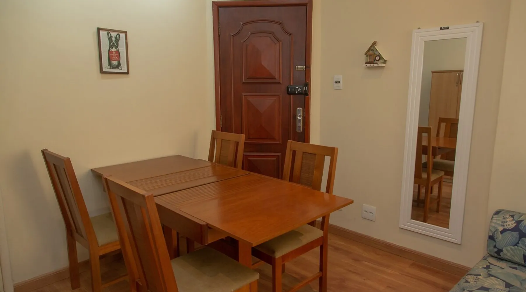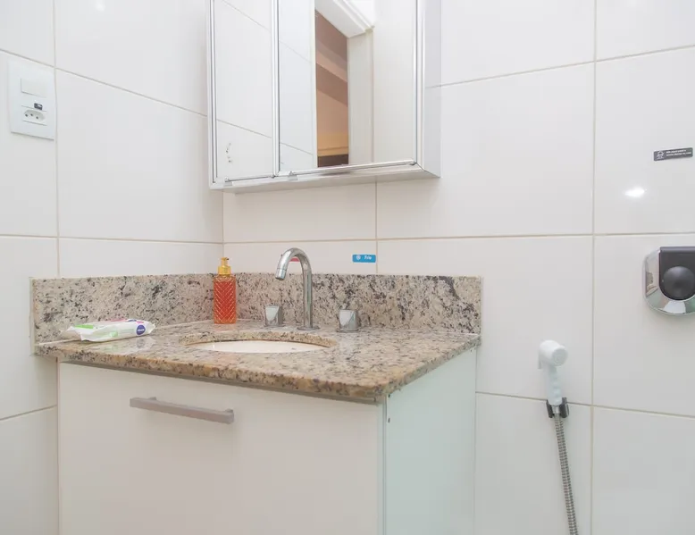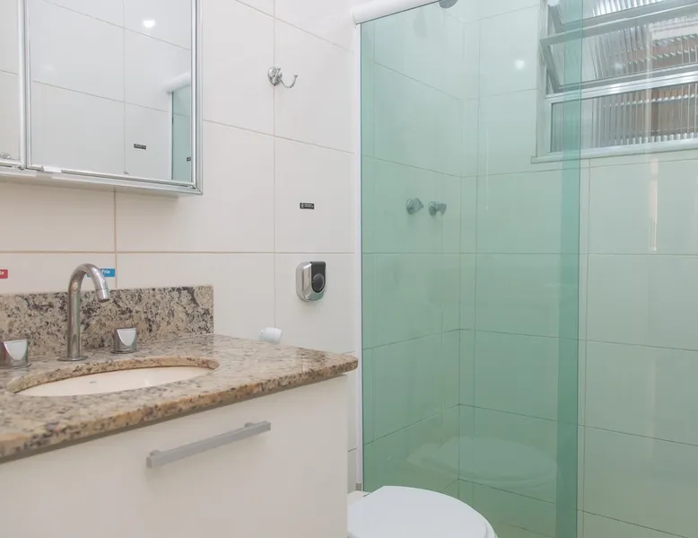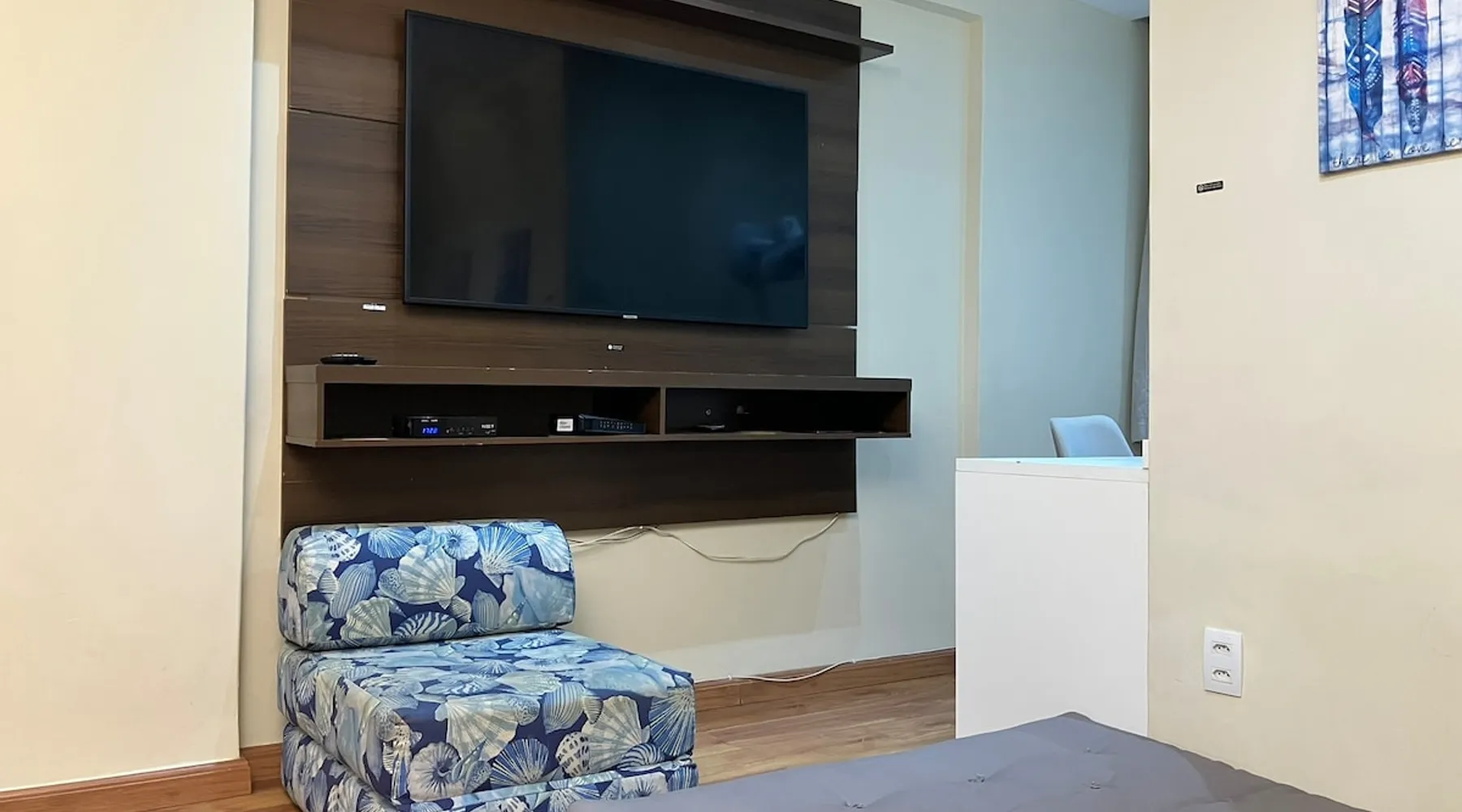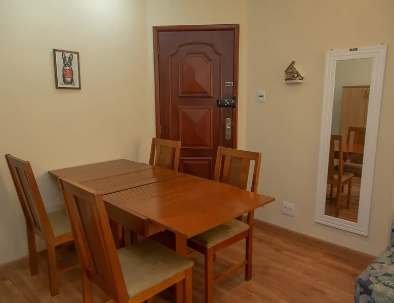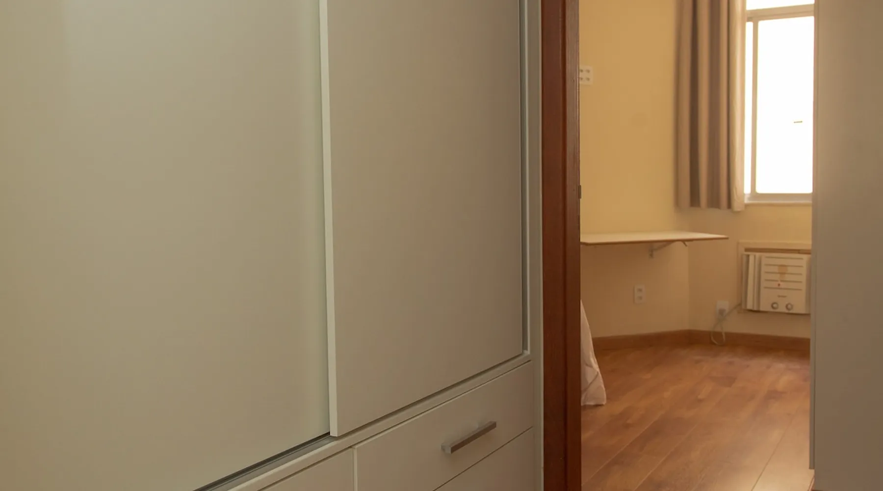 Feel the maximum comfort in this peaceful and centrally-located place. Perfect for work or play. Leme is a quiet and family-friendly neighborhood in the South Zone of Rio de Janeiro, with many shopping and dining options. Just 1 minute from Leme Beach (post 1). Next to the famous Copacabana. Easy access to Rio's main tourist landmarks. Welcome! The space The space features: - Fast Wi-Fi - Cable TV Electro-electronics: - Refrigerator - Microwave - Electric oven - Dishwasher - Washing machine - Stove - Cold water filter - Electric kettle - Iron - Hair dryer For long stays and home office: - Office desks - Cabinets Sleeps up to 5 guests: - Double bed - Full sofa bed - Single sofa bed Comfort: - Gas shower - Hot and cold water throughout the property - Air-conditioning (only in the bedroom) Convenience: - Two beach chairs Guest access To access there is a 24-hour concierge, then the entrance to the apartment is with a security code on the electronic lock. Other things to note Early check-in/late check-out: 6-hour difference from check-in/check-out: Half a day's pay. More time: full day.