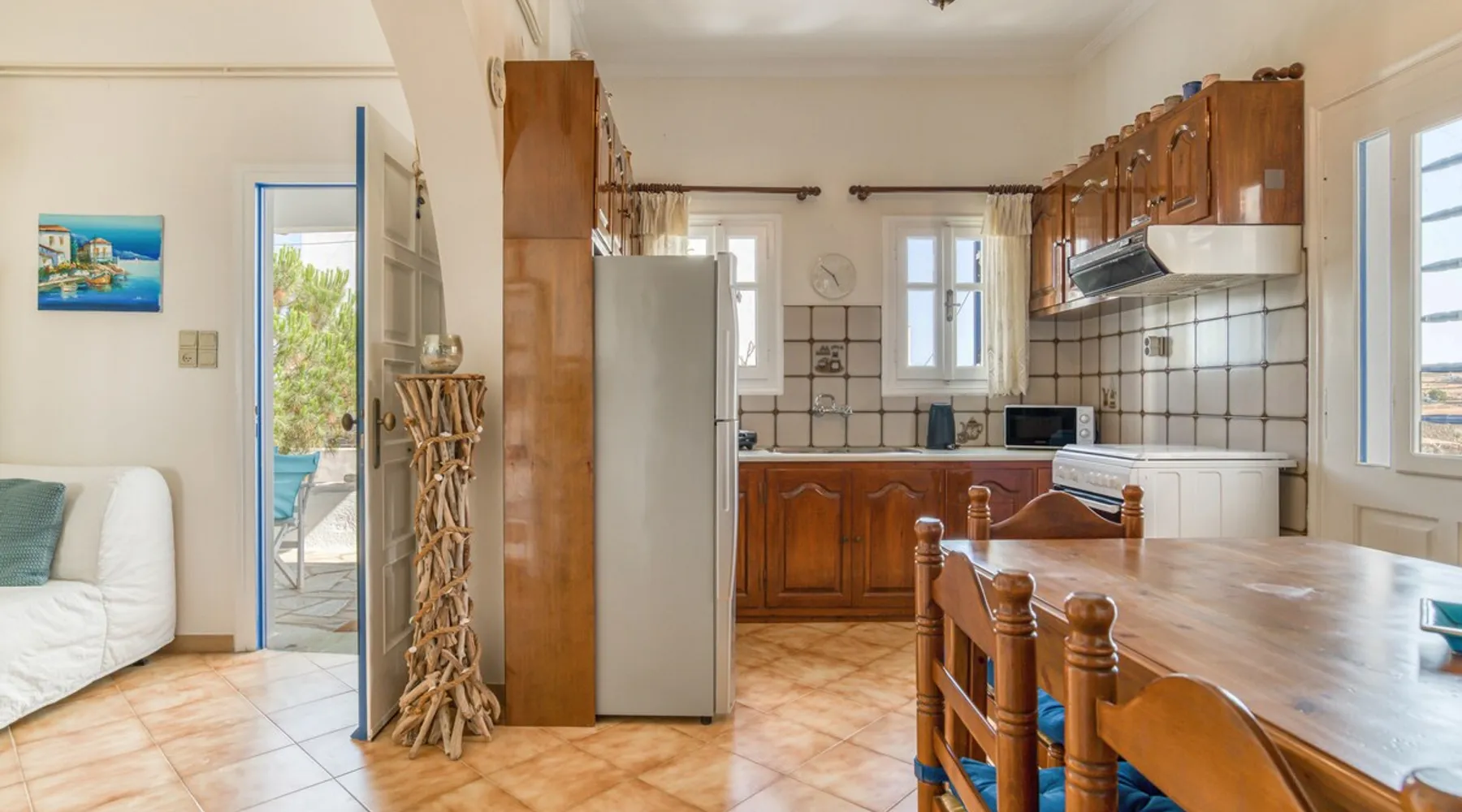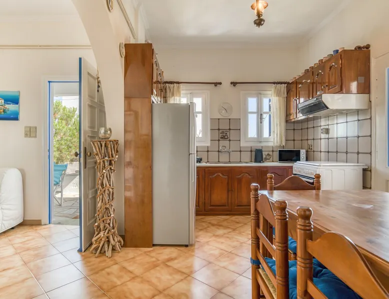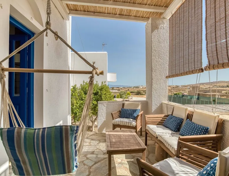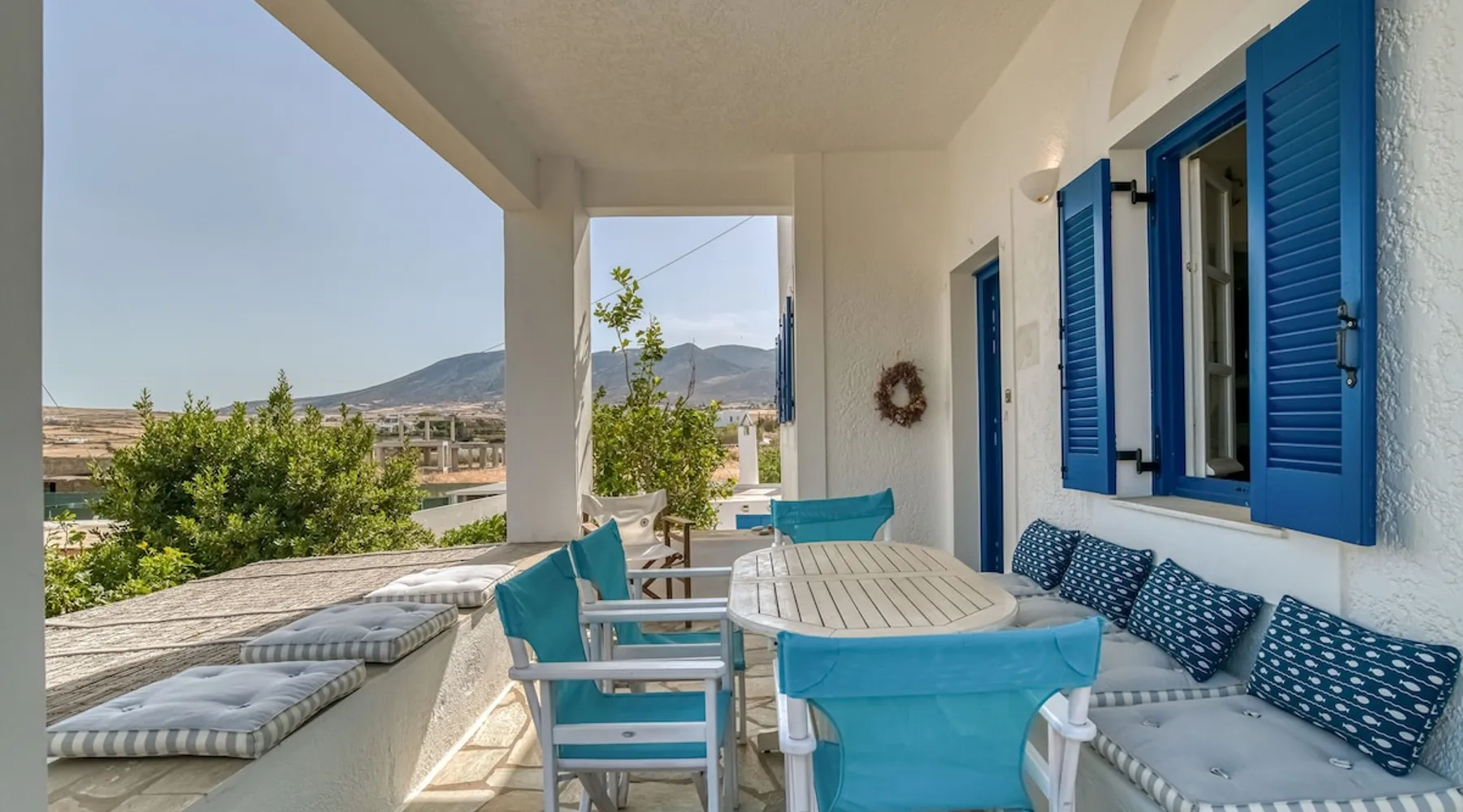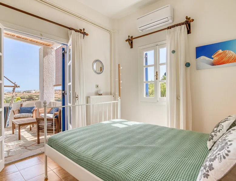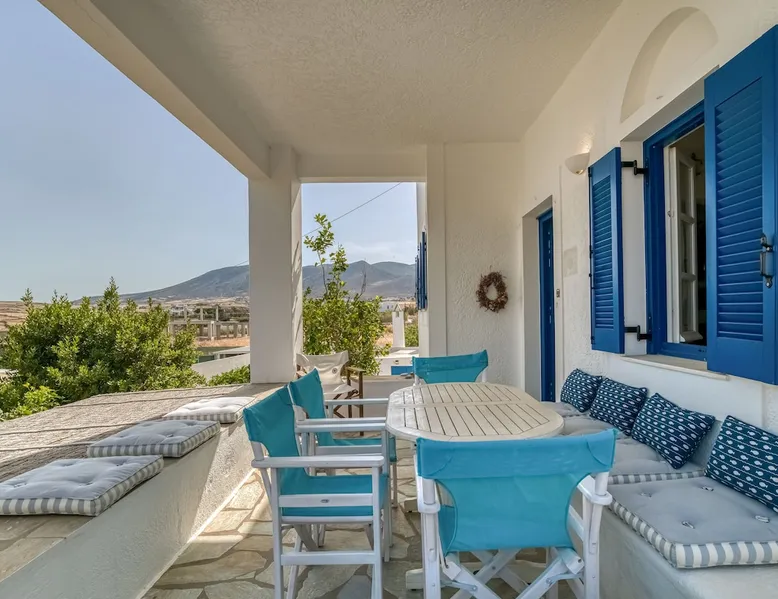 A traditional house in the village of Marpissa is the perfect getaway for a family of 5 or a group of friends. Near the house there is a confectionery Nikitas, a souvenir shop, Sklavenitis supermarket and a bakery, as well as a bus stop. The nearest beach about 1500 meters is Piso Livadia, as well as Logara beach and Punda (beach club). We recommend renting a car, it will help you to have a great rest. We can help with car rental. Naousa 15 km, to the port of Parikia 16 km, to the airport 20 km The space Michael Stella's Family House is a residence located at the outskirts of the picturesque village of Marpissa. It is about 1 km from the seaside of Mt., the picturesque back meadow, and the famous Beach Bar Punda Beach. Village market access (pharmacy, super market, bakery, bakery, restaurants and more) is easy on foot! The house has all the conditions and amenities of a modern island home for an unforgettable family vacation. It consists of 2 bedrooms, hall, living room, open plan kitchen and dining area, 1 big bathroom and 1 WC. It can conveniently accommodate 5 people! Terraces: There are 2 terraces nicely decorated and landscaped that offer the guests an ideal relaxation conditions! The main terrace at the east entrance of the residence, overlooking the Monastery of Agios Antonios, meets the requirements of a family meal and for Cocktail nights. The second terrace on the west side offers breakfast and afternoon coffee watching the sun set behind the mountain. Parking: There is a comfortable car park within the plot. Garden & BBQ: The residence is built on 1,000 square meters and has a large garden with various trees, such as pine, lemons, fig, rose gardens, olives, apricots, almond and vineyards, giving the space a touch of coolness and green space! Our guests, depending on the seasons, can taste their fruits. On the west side of the house, following the stone path you will find yourself between the olives and the landscaped space offered for BBQ and picnics. From there you can see the sea! Children: Toys, park/bed, bathroom for infants, high chair, 2 electric children's vehicles are available. Information about the village of Marpissa: It is built on a hill on the east side of the island, it is 15 km from the cosmopolitan Naousa, 16 km from the port of Parikia and 20 km from the island's airport. Marpissa has been characterized as a traditional settlement! Don't miss the picturesque alleyways of the village, enjoying the white-blue of traditional houses and fuchsia bucamvilles. Go up to the Monastery of St. Antonios at "Kefalos" hill and enjoy the amazing view across the Aegean! Easter in Paros is a once-in-a-lifetime experience. Especially on the evening of the Great Friday, a unique setting is created in the village of Marpissa with the representations of the paths of the Virgin Mary. If you are fortunate to be in Marpissa in late August, you will experience a three day, immersive, cultural festivals, the famous "Rides to Marpissa". Entertainment: Back Grassland is about 1 km away and is an ideal place to eat or drink at its picturesque port. Its beach is also 1 km away and suitable for families. You can swim on the beach or dine at one of the restaurants. Registration details 00001757028
