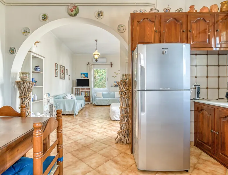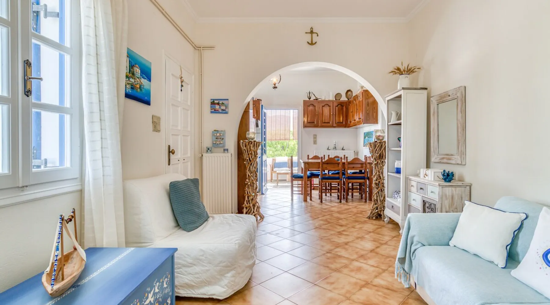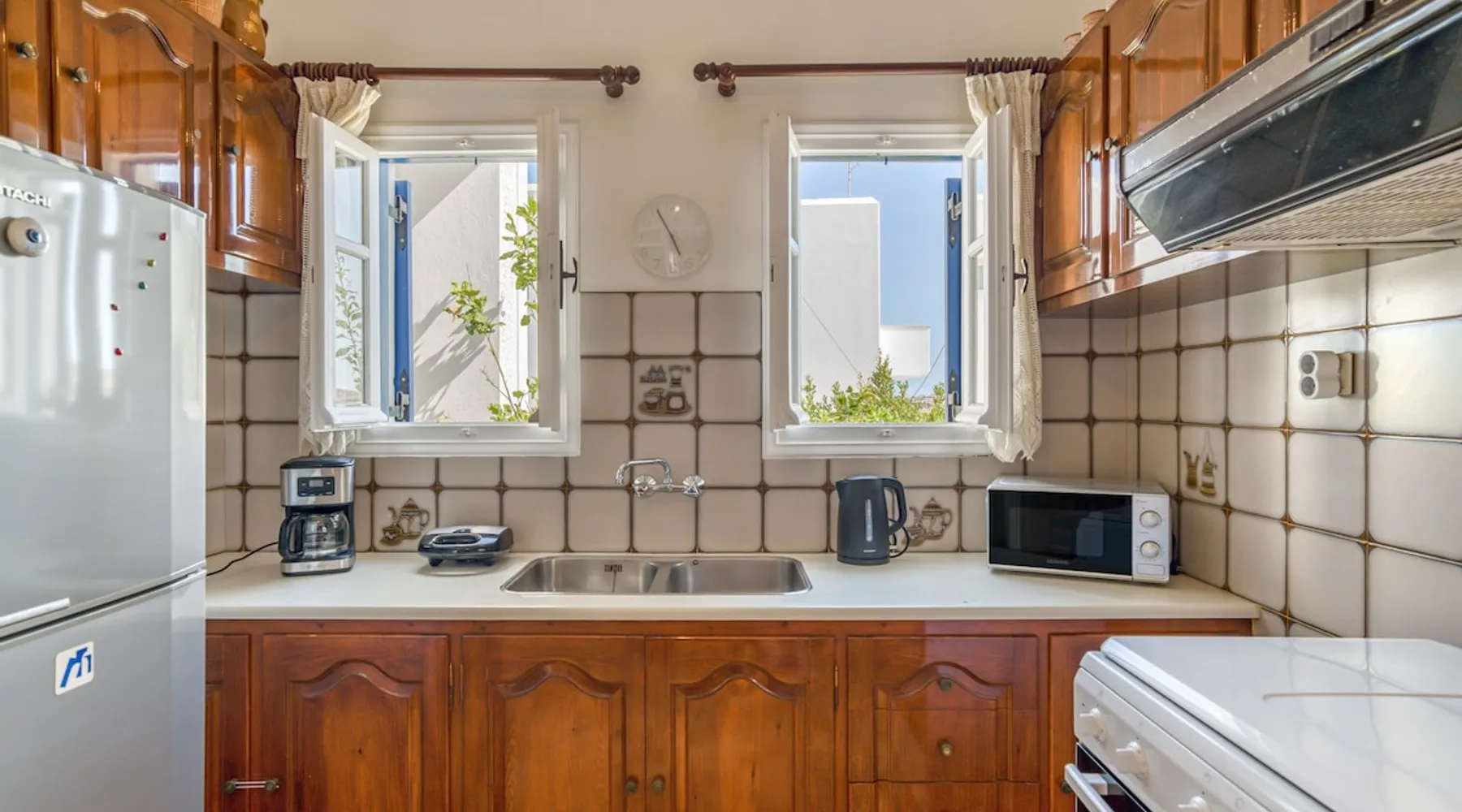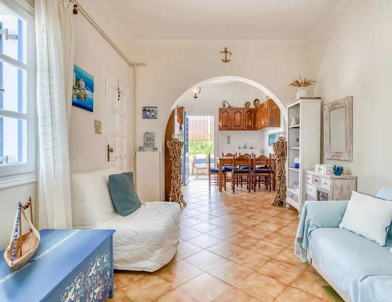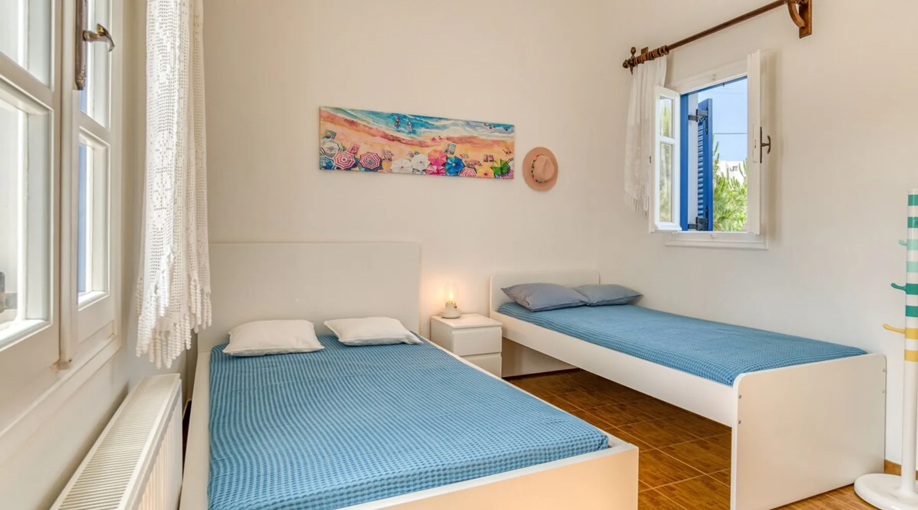 A traditional house in the village of Marpissa is the perfect getaway for a family of 5 or a group of friends. Near the house there is a confectionery Nikitas, a souvenir shop, Sklavenitis supermarket and a bakery, as well as a bus stop. The nearest beach about 1500 meters is Piso Livadia, as well as Logara beach and Punda (beach club). We recommend renting a car, it will help you to have a great rest. We can help with car rental. Naousa 15 km, to the port of Parikia 16 km, to the airport 20 km The space Michael Stella's Family House is a residence located at the outskirts of the picturesque village of Marpissa. It is about 1 km from the seaside of Mt., the picturesque back meadow, and the famous Beach Bar Punda Beach. Village market access (pharmacy, super market, bakery, bakery, restaurants and more) is easy on foot! The house has all the conditions and amenities of a modern island home for an unforgettable family vacation. It consists of 2 bedrooms, hall, living room, open plan kitchen and dining area, 1 big bathroom and 1 WC. It can conveniently accommodate 5 people! Terraces: There are 2 terraces nicely decorated and landscaped that offer the guests an ideal relaxation conditions! The main terrace at the east entrance of the residence, overlooking the Monastery of Agios Antonios, meets the requirements of a family meal and for Cocktail nights. The second terrace on the west side offers breakfast and afternoon coffee watching the sun set behind the mountain. Parking: There is a comfortable car park within the plot. Garden & BBQ: The residence is built on 1,000 square meters and has a large garden with various trees, such as pine, lemons, fig, rose gardens, olives, apricots, almond and vineyards, giving the space a touch of coolness and green space! Our guests, depending on the seasons, can taste their fruits. On the west side of the house, following the stone path you will find yourself between the olives and the landscaped space offered for BBQ and picnics. From there you can see the sea! Children: Toys, park/bed, bathroom for infants, high chair, 2 electric children's vehicles are available. Information about the village of Marpissa: It is built on a hill on the east side of the island, it is 15 km from the cosmopolitan Naousa, 16 km from the port of Parikia and 20 km from the island's airport. Marpissa has been characterized as a traditional settlement! Don't miss the picturesque alleyways of the village, enjoying the white-blue of traditional houses and fuchsia bucamvilles. Go up to the Monastery of St. Antonios at "Kefalos" hill and enjoy the amazing view across the Aegean! Easter in Paros is a once-in-a-lifetime experience. Especially on the evening of the Great Friday, a unique setting is created in the village of Marpissa with the representations of the paths of the Virgin Mary. If you are fortunate to be in Marpissa in late August, you will experience a three day, immersive, cultural festivals, the famous "Rides to Marpissa". Entertainment: Back Grassland is about 1 km away and is an ideal place to eat or drink at its picturesque port. Its beach is also 1 km away and suitable for families. You can swim on the beach or dine at one of the restaurants. Registration details 00001757028