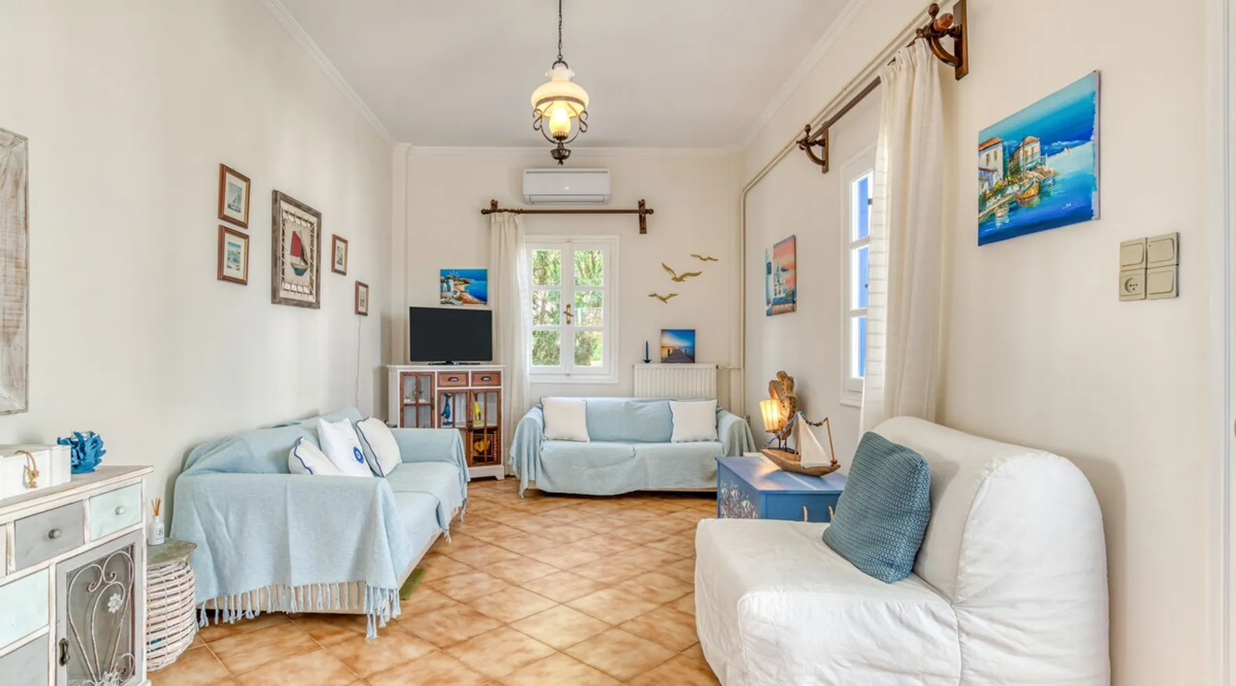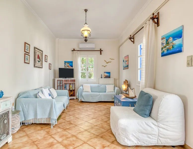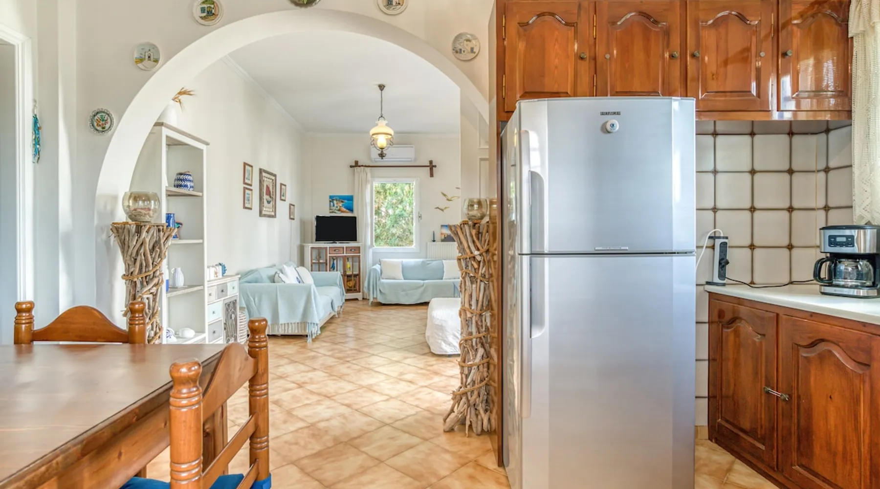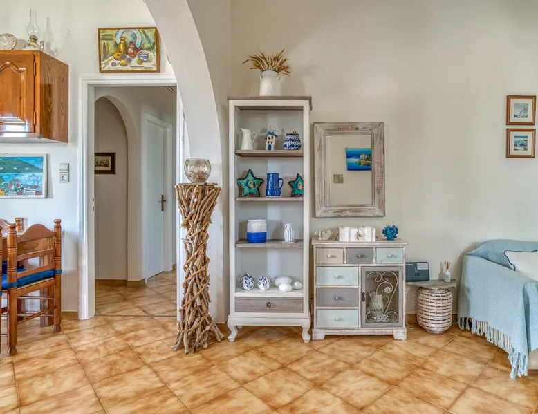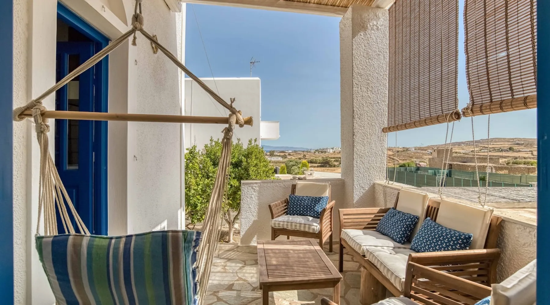 A traditional house in the village of Marpissa is the perfect getaway for a family of 5 or a group of friends. Near the house there is a confectionery Nikitas, a souvenir shop, Sklavenitis supermarket and a bakery, as well as a bus stop. The nearest beach about 1500 meters is Piso Livadia, as well as Logara beach and Punda (beach club). We recommend renting a car, it will help you to have a great rest. We can help with car rental. Naousa 15 km, to the port of Parikia 16 km, to the airport 20 km The space Michael Stella's Family House is a residence located at the outskirts of the picturesque village of Marpissa. It is about 1 km from the seaside of Mt., the picturesque back meadow, and the famous Beach Bar Punda Beach. Village market access (pharmacy, super market, bakery, bakery, restaurants and more) is easy on foot! The house has all the conditions and amenities of a modern island home for an unforgettable family vacation. It consists of 2 bedrooms, hall, living room, open plan kitchen and dining area, 1 big bathroom and 1 WC. It can conveniently accommodate 5 people! Terraces: There are 2 terraces nicely decorated and landscaped that offer the guests an ideal relaxation conditions! The main terrace at the east entrance of the residence, overlooking the Monastery of Agios Antonios, meets the requirements of a family meal and for Cocktail nights. The second terrace on the west side offers breakfast and afternoon coffee watching the sun set behind the mountain. Parking: There is a comfortable car park within the plot. Garden & BBQ: The residence is built on 1,000 square meters and has a large garden with various trees, such as pine, lemons, fig, rose gardens, olives, apricots, almond and vineyards, giving the space a touch of coolness and green space! Our guests, depending on the seasons, can taste their fruits. On the west side of the house, following the stone path you will find yourself between the olives and the landscaped space offered for BBQ and picnics. From there you can see the sea! Children: Toys, park/bed, bathroom for infants, high chair, 2 electric children's vehicles are available. Information about the village of Marpissa: It is built on a hill on the east side of the island, it is 15 km from the cosmopolitan Naousa, 16 km from the port of Parikia and 20 km from the island's airport. Marpissa has been characterized as a traditional settlement! Don't miss the picturesque alleyways of the village, enjoying the white-blue of traditional houses and fuchsia bucamvilles. Go up to the Monastery of St. Antonios at "Kefalos" hill and enjoy the amazing view across the Aegean! Easter in Paros is a once-in-a-lifetime experience. Especially on the evening of the Great Friday, a unique setting is created in the village of Marpissa with the representations of the paths of the Virgin Mary. If you are fortunate to be in Marpissa in late August, you will experience a three day, immersive, cultural festivals, the famous "Rides to Marpissa". Entertainment: Back Grassland is about 1 km away and is an ideal place to eat or drink at its picturesque port. Its beach is also 1 km away and suitable for families. You can swim on the beach or dine at one of the restaurants. Registration details 00001757028