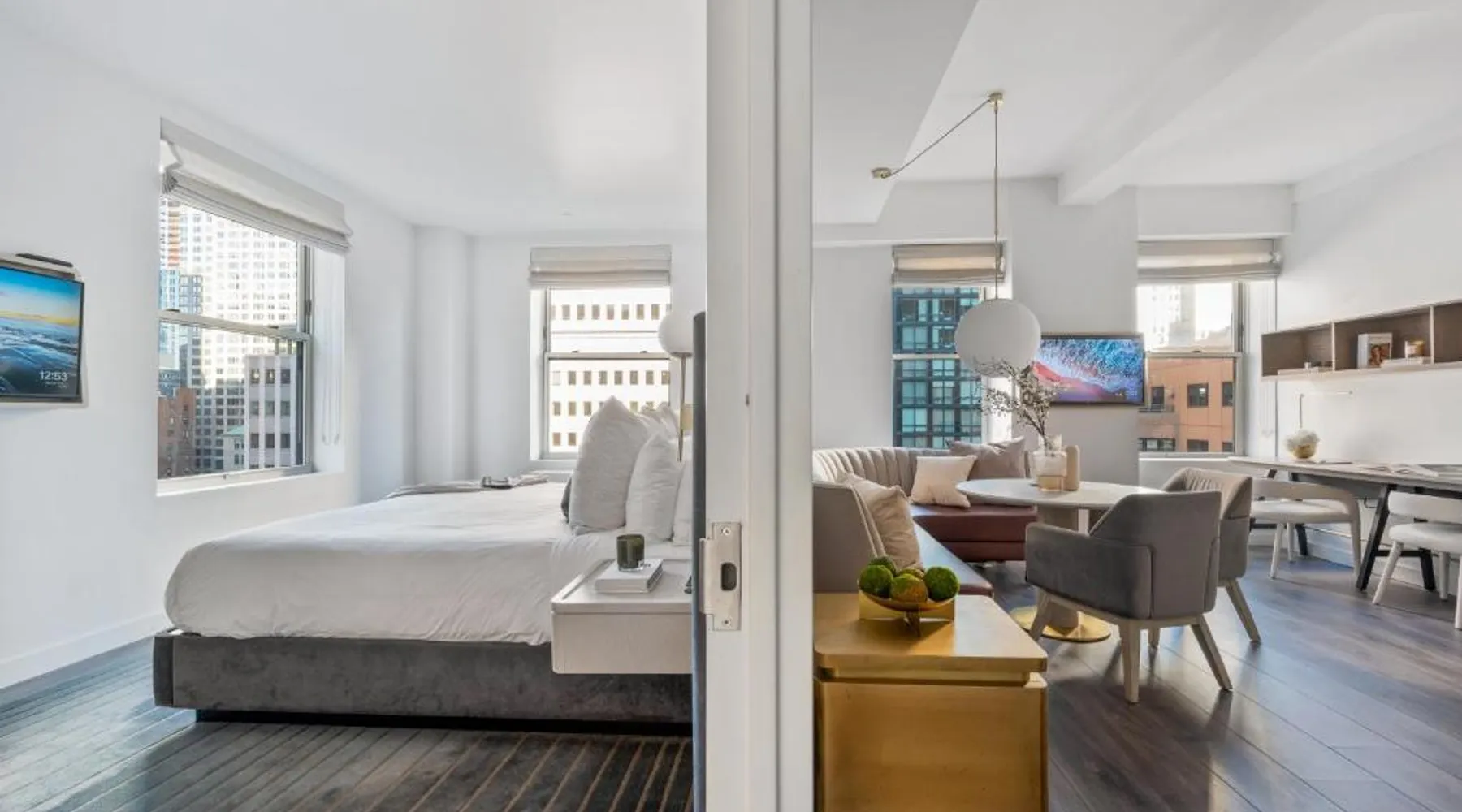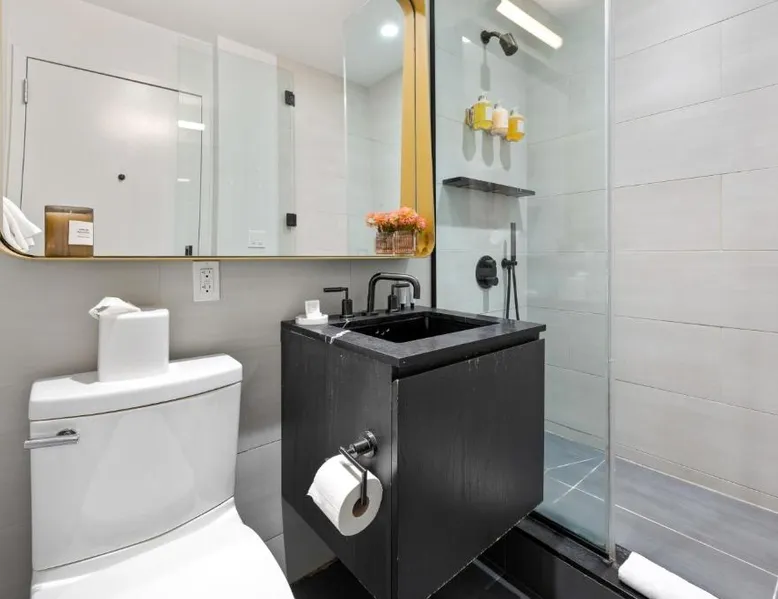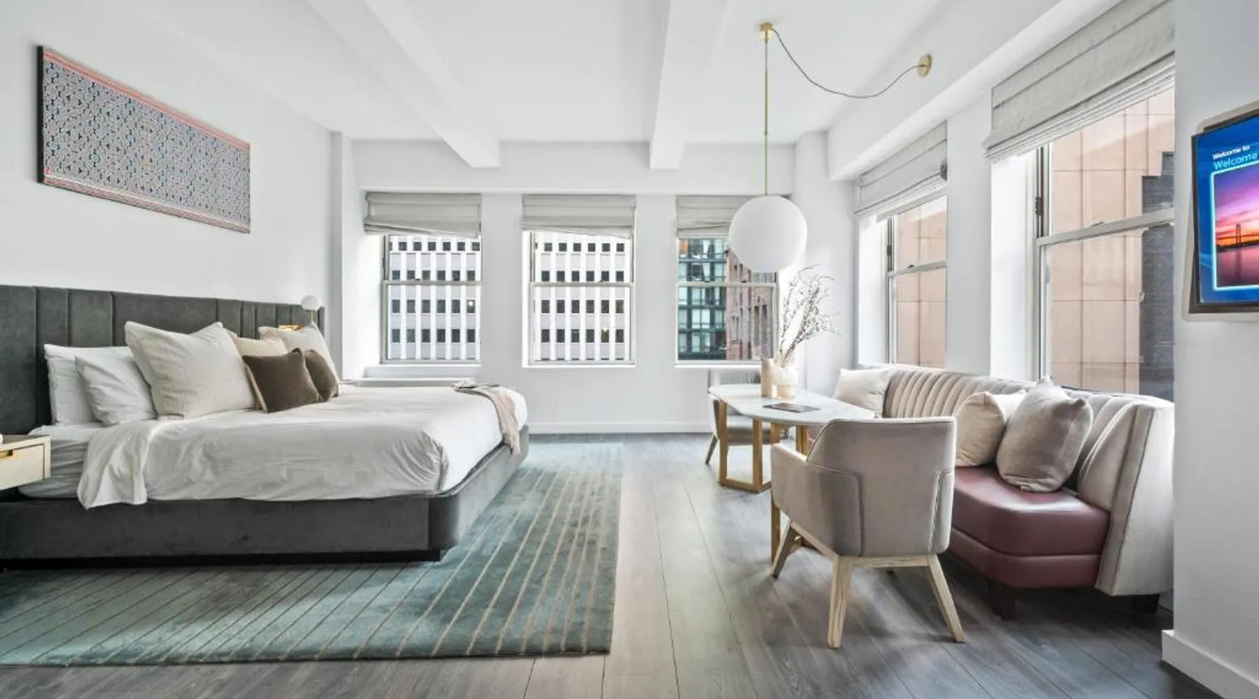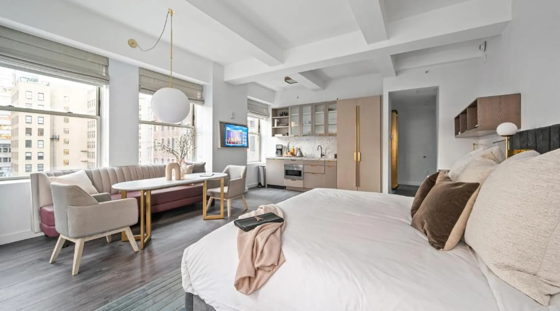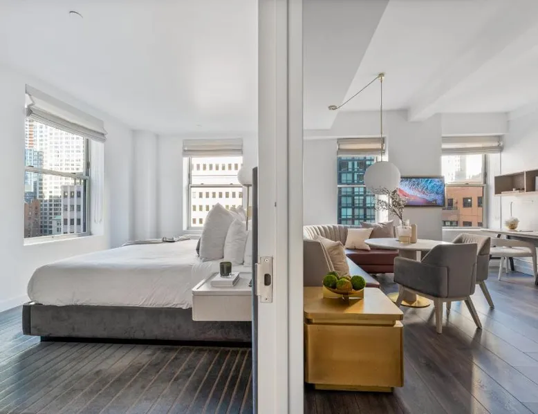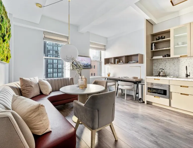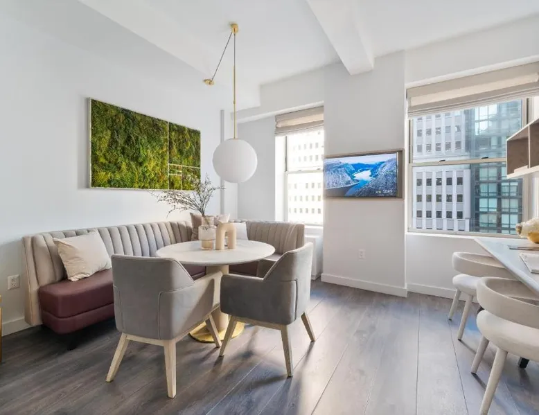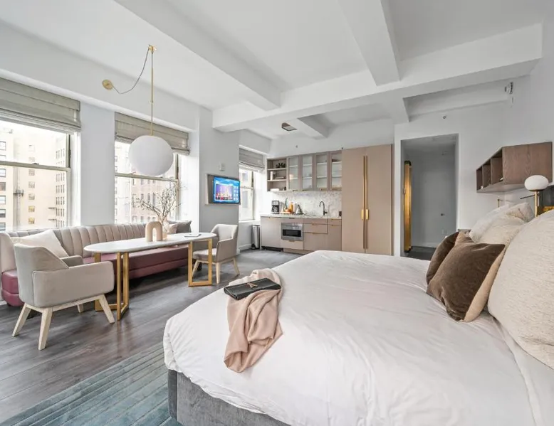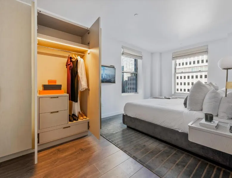 Elegant Accommodations: 17John in New York offers a 5-star aparthotel experience with a garden and terrace. Guests enjoy free WiFi, air-conditioning, and private bathrooms equipped with modern amenities. Comfortable Living: Each apartment features a fully equipped kitchen, dining area, and work desk. Additional amenities include a sofa bed, dressing room, and kitchenette, ensuring a comfortable stay. Convenient Location: Located 12 mi from Newark Liberty International Airport, the property is a short walk from the National September 11 Memorial & Museum and One World Observatory. Nearby attractions include One World Trade Center and Brooklyn Bridge. Guest Services: Private check-in and check-out, a 24-hour front desk, concierge service, and laundry facilities enhance the guest experience. Boasting a private entrance, this air-conditioned apartment includes 1 living room, 1 separate bedroom and 1 bathroom with a bath or a shower and a hairdryer. In the well-fitted kitchen, guests will find a stovetop, a refrigerator, a dishwasher and kitchenware. The apartment offers a tea and coffee maker, a dining area, a wardrobe, a safe deposit box, as well as a flat-screen TV. The unit has 1 bed.