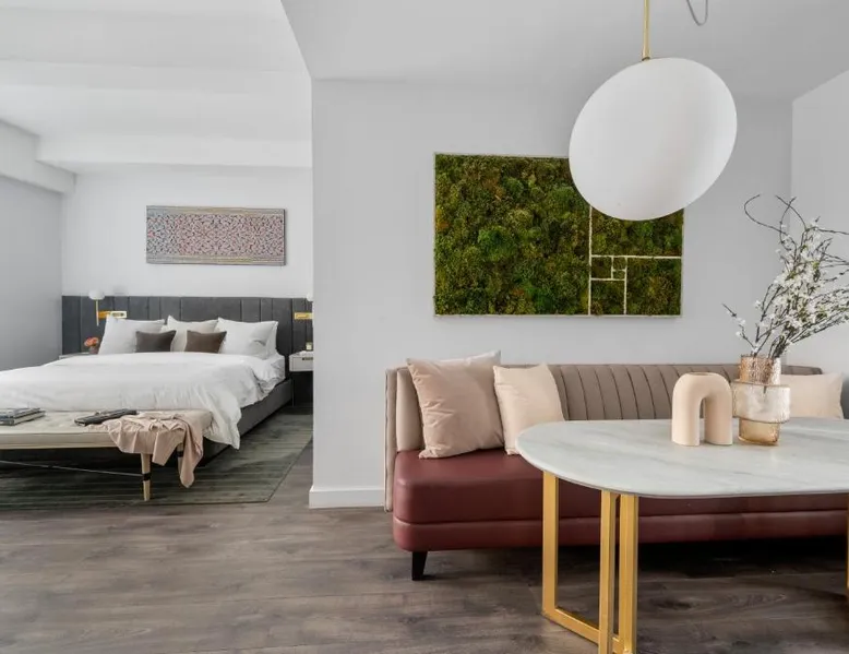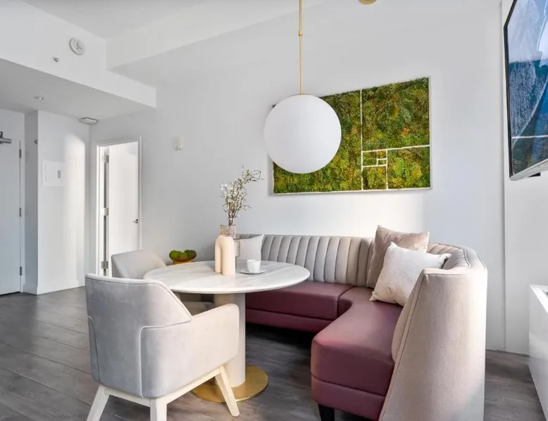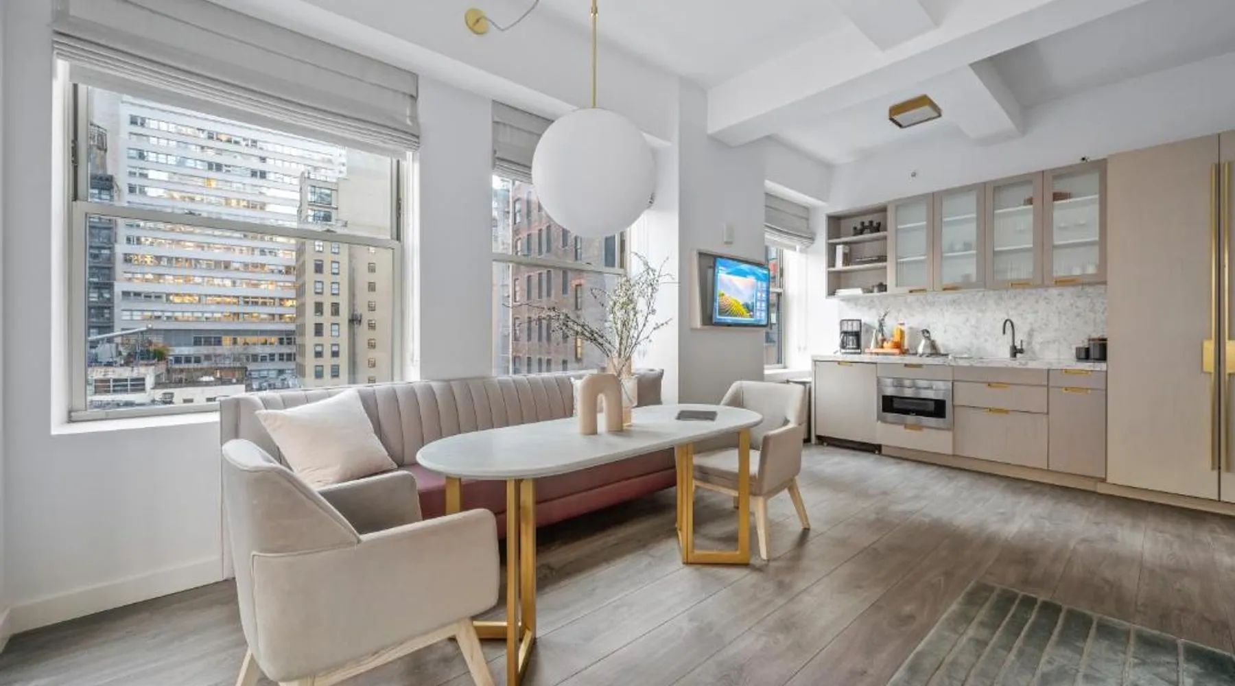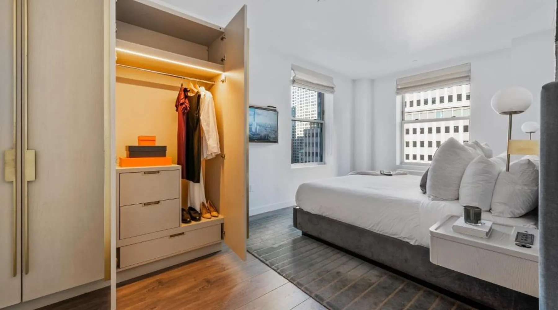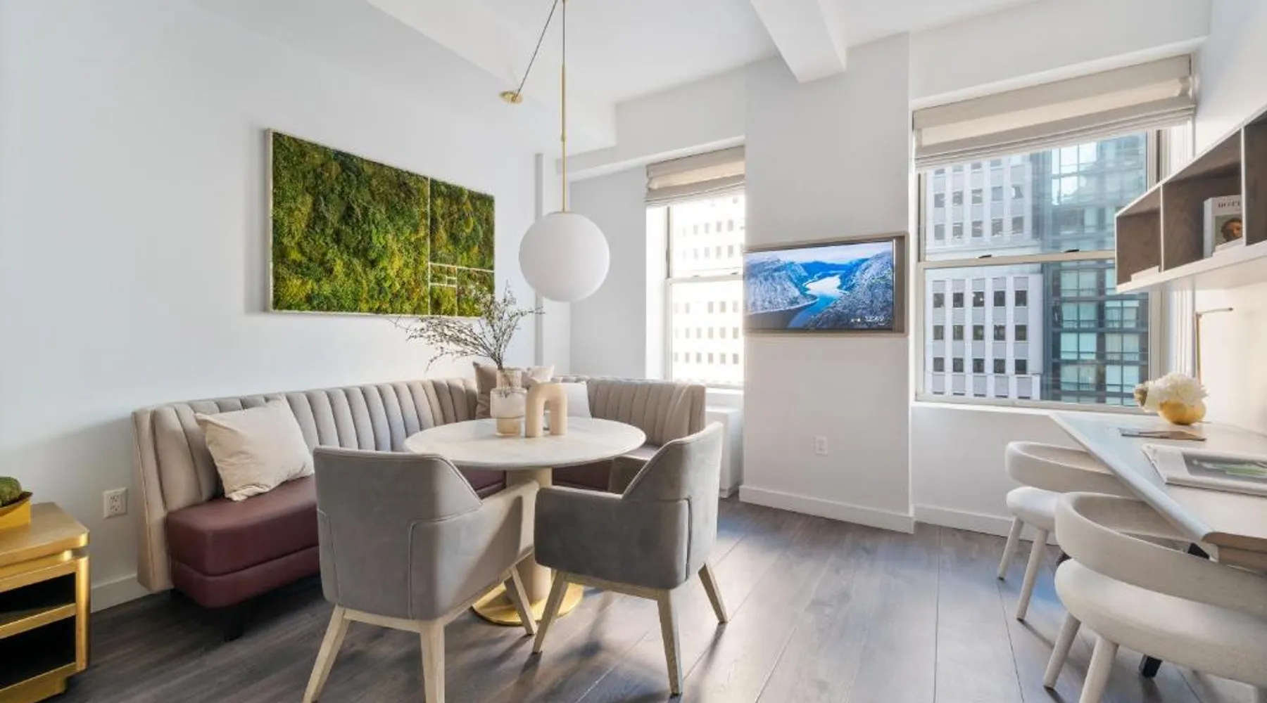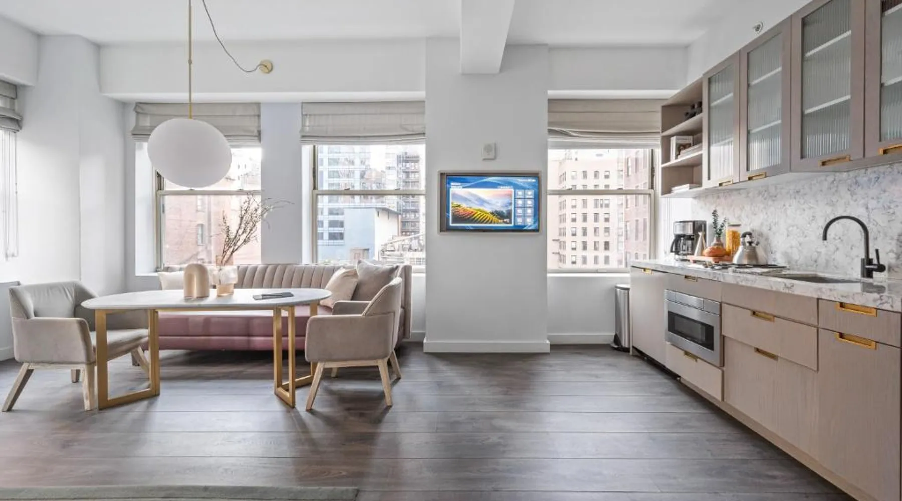 Elegant Accommodations: 17John in New York offers a 5-star aparthotel experience with a garden and terrace. Guests enjoy free WiFi, air-conditioning, and private bathrooms equipped with modern amenities. Comfortable Living: Each apartment features a fully equipped kitchen, dining area, and work desk. Additional amenities include a sofa bed, dressing room, and kitchenette, ensuring a comfortable stay. Convenient Location: Located 12 mi from Newark Liberty International Airport, the property is a short walk from the National September 11 Memorial & Museum and One World Observatory. Nearby attractions include One World Trade Center and Brooklyn Bridge. Guest Services: Private check-in and check-out, a 24-hour front desk, concierge service, and laundry facilities enhance the guest experience. Boasting a private entrance, this air-conditioned apartment includes 1 living room, 1 separate bedroom and 1 bathroom with a bath or a shower and a hairdryer. In the well-fitted kitchen, guests will find a stovetop, a refrigerator, a dishwasher and kitchenware. The apartment offers a tea and coffee maker, a dining area, a wardrobe, a safe deposit box, as well as a flat-screen TV. The unit has 1 bed.