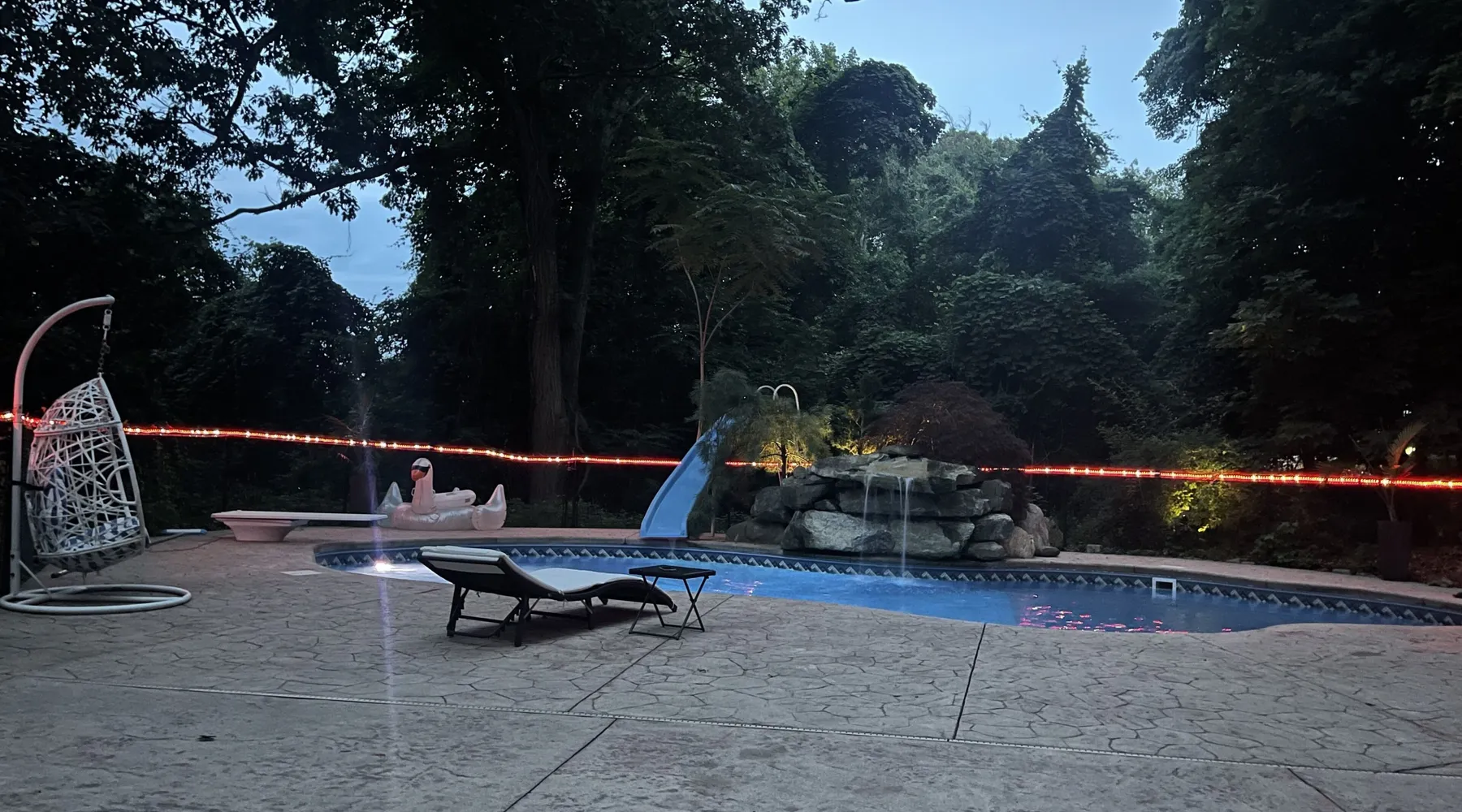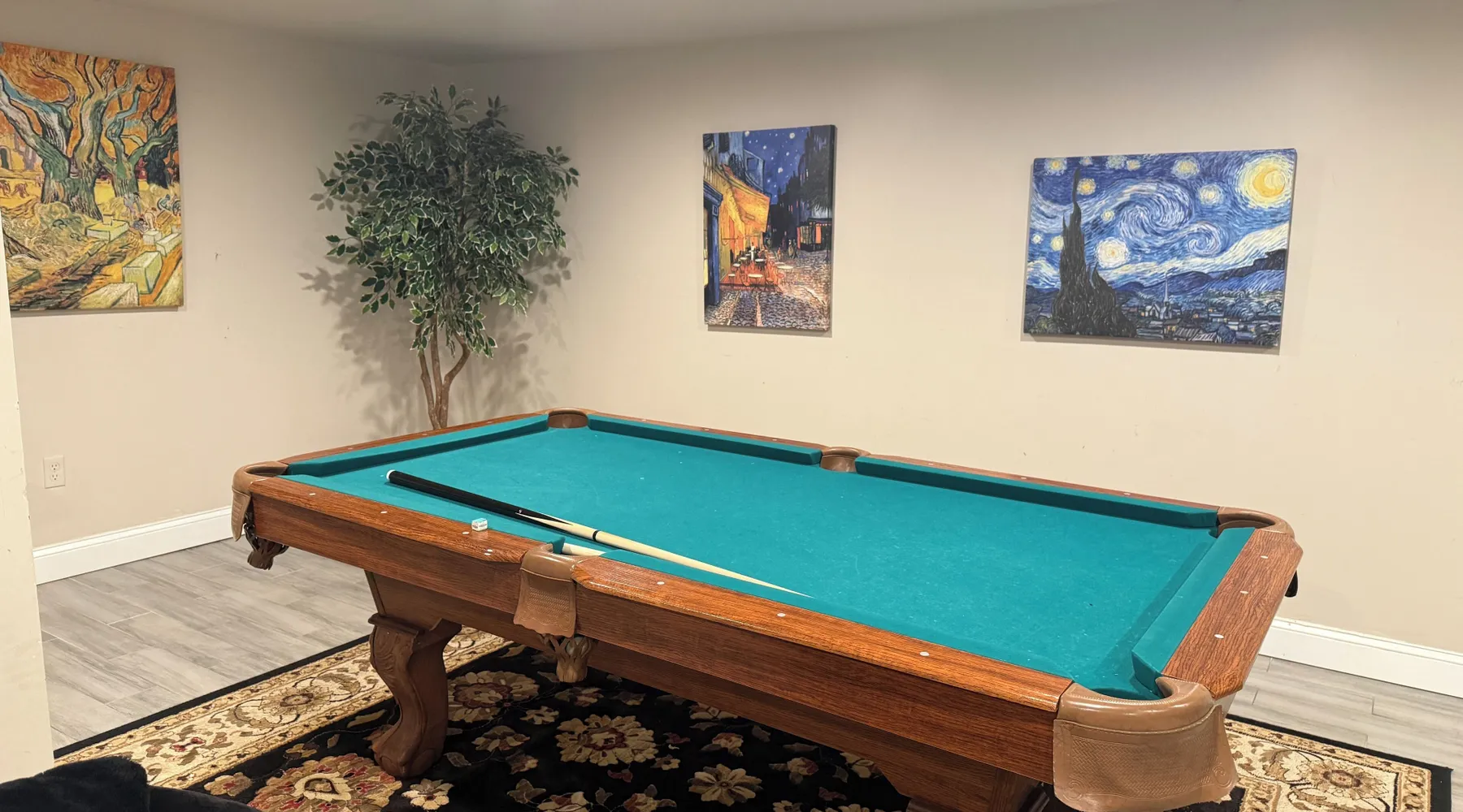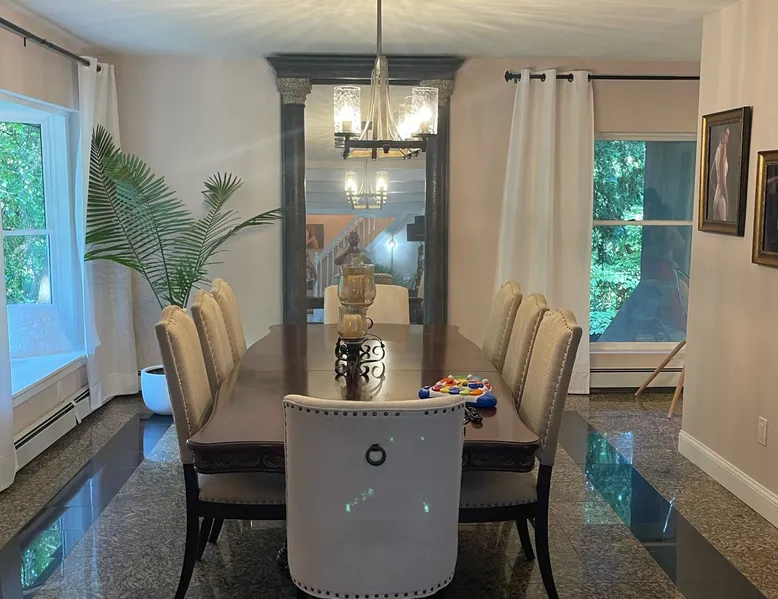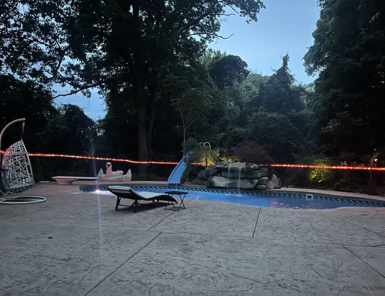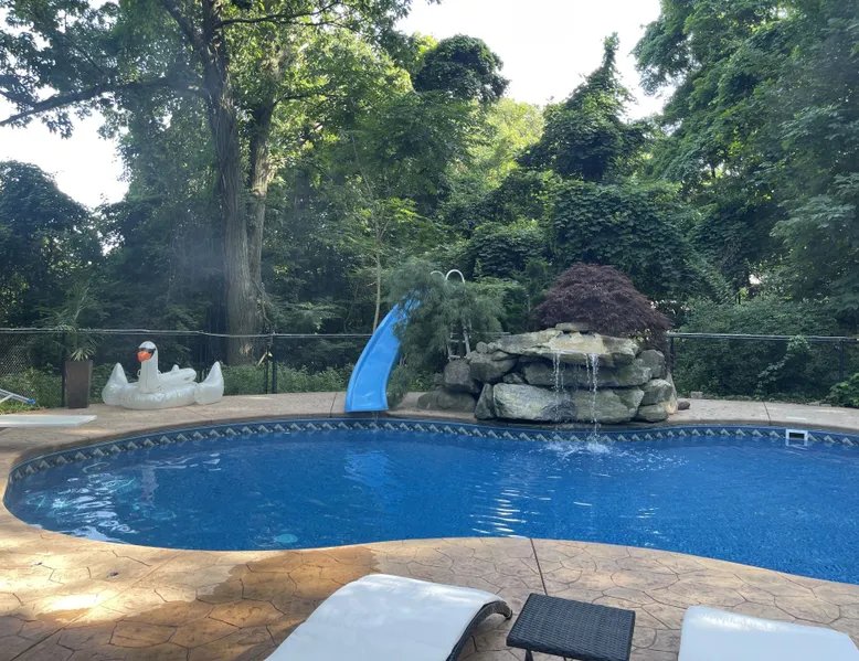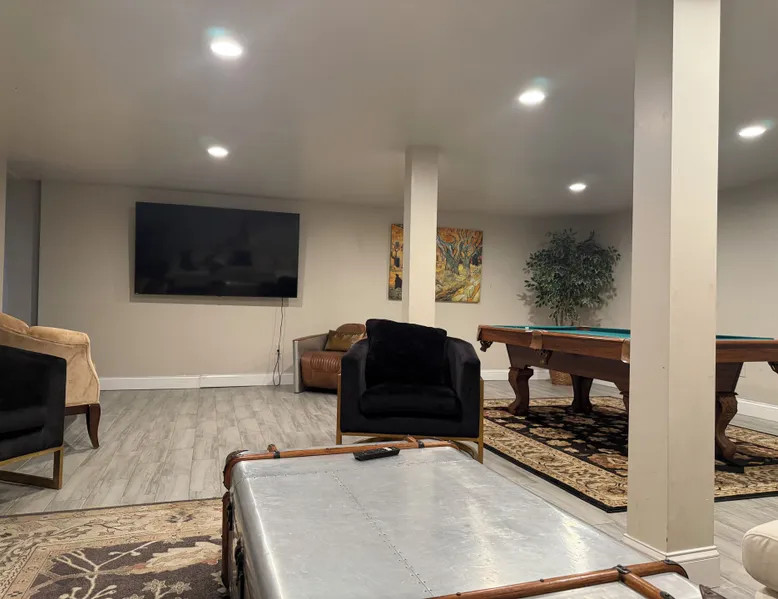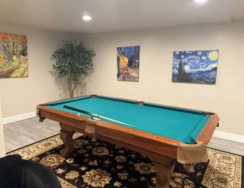 Whether you are looking for a weekend retreat or a family needing a family reunion to stay in, this stunning home is the perfect place to reconnect with each other around the Pool area and BBQ. Get ready to get inspired in this stunning home. It’s a fantastic retreat in a unique setting. We look forward to hosting you for a one-of-a-kind experience! Spacious living room Fully staked kitchen with all you need modern furniture formal dining area. Near water parks & Ski resorts The space Escape the big city crowds by visiting picturesque Franklin Lakes and staying in this designer 5BR 4.5Bath villa. Explore the local natural landmarks and scenic trails, visit exciting shopping centers and restaurants, or spend an entire day in the fully fenced backyard with the heated swimming pool and the luxurious hot tub. ✔ 5 Comfy Bedrooms ✔ 2 Living Areas ✔ Fully Equipped Kitchen ✔ Backyard (Pool, Hot Tub, Lounges, BBQ) ✔ Smart TVs ✔ High-Speed Wi-Fi ✔ Free Parking Learn more below! The space: This luxurious Franklin Lakes villa was designed with complete relaxation and comfort in mind. Its main draw is the excellent, fully-fenced backyard featuring the heated swimming pool, high-end hot tub, and relaxing lounge areas where you can relax as the tasty BBQ is prepared on the grill. Invite everyone to the living area boasting a posh designer look, and have hours of fun by watching movies and hanging out with your loved ones. Look through the double-sided fireplace and discover another cozy family room with comfortable carpeted floors and a bunk bed. Take the party to the kitchen area, which features many cooking appliances and seating areas. Serve those delicious homemade delicacies on the dining table nestled by large windows that let the natural sunlight in, creating a pleasant setting you’ll get to enjoy in the great company of family and friends. Once the sun goes down in New Jersey, retreat to four inviting bedrooms with comfortable beds that will help you recharge after a long day of Franklin Lakes adventures. ★ LIVING ROOMS ★ The luxurious living room is the heartbeat of the villa, offering a unique and upbeat setting to relax between exciting nature exploration, shopping sprees at Urban Farms and Franklin Crossing, and all the entertainment in the backyard. ✔ Comfortable U-Shaped Sofa with Pillows ✔ Smart TV ✔ Indoor Fireplace ✔ Comfy and Chic Sofa Chairs ✔ Stylish Coffee Table ✔ Designer Reading Lamps ✔ Access to the Backyard ★ KITCHEN & DINING ★ Open the ample cabinetry to find everything you need to treat your family to their favorite meals. Sort those fresh ingredients on marble countertops and use the modern cooking appliances to unleash your cooking creativity! ✔ Microwave ✔ Stove ✔ Double Oven ✔ Toaster ✔ Coffee Maker ✔ Hot Water Kettle ✔ Smart Refrigerator/Freezer ✔ Dishwasher ✔ Sink - Hot & Cold Water ✔ Trays ✔ Glasses ✔ Silverware ✔ Pots & Pans The dining area is ideally nestled by the kitchen, allowing you to easily set the table and enjoy tasty family meals. Sit at the kitchen island or the breakfast table and see how the chef works their magic. ✔ Dining Table with Seating for 8 ✔ Breakfast Table with Seating for 4 ✔ Kitchen Island with Seating for 3 ★ SLEEPING ARRANGEMENTS - 5 BEDROOMS ★ Explore Franklin Lakes, visit the attractions, soak up the sun by the pool, and then retreat to four comfortable bedrooms to rest so you can do it all again tomorrow. ♛ Bedroom 1: Queen-Size Bed + Sofa Bed, Ensuite Bathroom ♛ Bedroom 2: Queen-Size Bed + Sofa Bed, Ensuite Bathroom ♛ Bedroom 3: Single Bed ♛ Bedroom 4: Bunk Bed (Twin over Twin) ♛ Bedroom 5: Bunk bed (Full over Full) ♛ Second Living Room: Bunk Bed (Twin over Twin) All bedrooms come with a similar set of amenities. ✔ Premium Pillows, Linens, and Sheets ✔ Smart TVs ✔ Closets with Hangers and Shelves ✔ Dressers with Spacious Drawers ✔ Night Stands with Reading Lamps ★ BATHROOM ★ To ensure you have a perfect, carefree stay, we have prepared essential toiletries and fresh towels in all four relaxing bathrooms. Another half bath is accessible from the living area, ensuring maximum convenience. ✔ Soaker Tub with a Shower ✔ Walk-In Shower ✔ Vanity ✔ Mirror ✔ Toilet ✔ Towels ✔ Essential Toiletries ★ BACKYARD ★ Marvel at the serene and lush natural surroundings while swimming in the heated pool, unwinding in the luxurious hot tub, or chilling on comfy lounges. The fully fenced backyard offers a tranquil and soothing space where you can spend the entire day. ✔ Swimming Pool with a Slide and a Waterfall ✔ Luxurious Hot Tub ✔ Sun Lounges & Hanging Egg Chair ✔ Lounge Seating ✔ BBQ Grill Guest access The villa is exclusively yours, without interruption during your stay, so relax, unwind, and make yourself at home. Other than the already mentioned amenities, our home is also equipped with: ✔ High-Speed Wi-Fi ✔ Self Check-In (Lockbox) ✔ Air Conditioning ✔ Heating ✔ Washer/Dryer ✔ Iron/Board ✔ Free Parking Other things to note ★ ADDITIONAL ACCOMMODATION ★ Traveling in a larger group, or your preferred dates are already taken? You'll be happy to know that we offer additional accommodation in the area. Please browse our host profile for the complete list of gorgeous listings. ★ PET-FRIENDLY HOME ★ Bring your furry friends along for an exciting vacation. They’ll get to enjoy and run around the spacious backyard while you relax in the luxury hot tub. ★ NO SMOKING INSIDE ★ Please refrain from smoking inside the home! Any smoking evidence will result in a fee for odor removal and furniture cleaning. ★ NO PARTIES/EVENTS ★ We kindly ask you to treat our home as your own to preserve its pristine condition for future guests and your return visits. Thank you very much for your understanding Interaction with guests We will be accessible 24/7 for our guests via phone, text, Expect a quick and prompt response. 