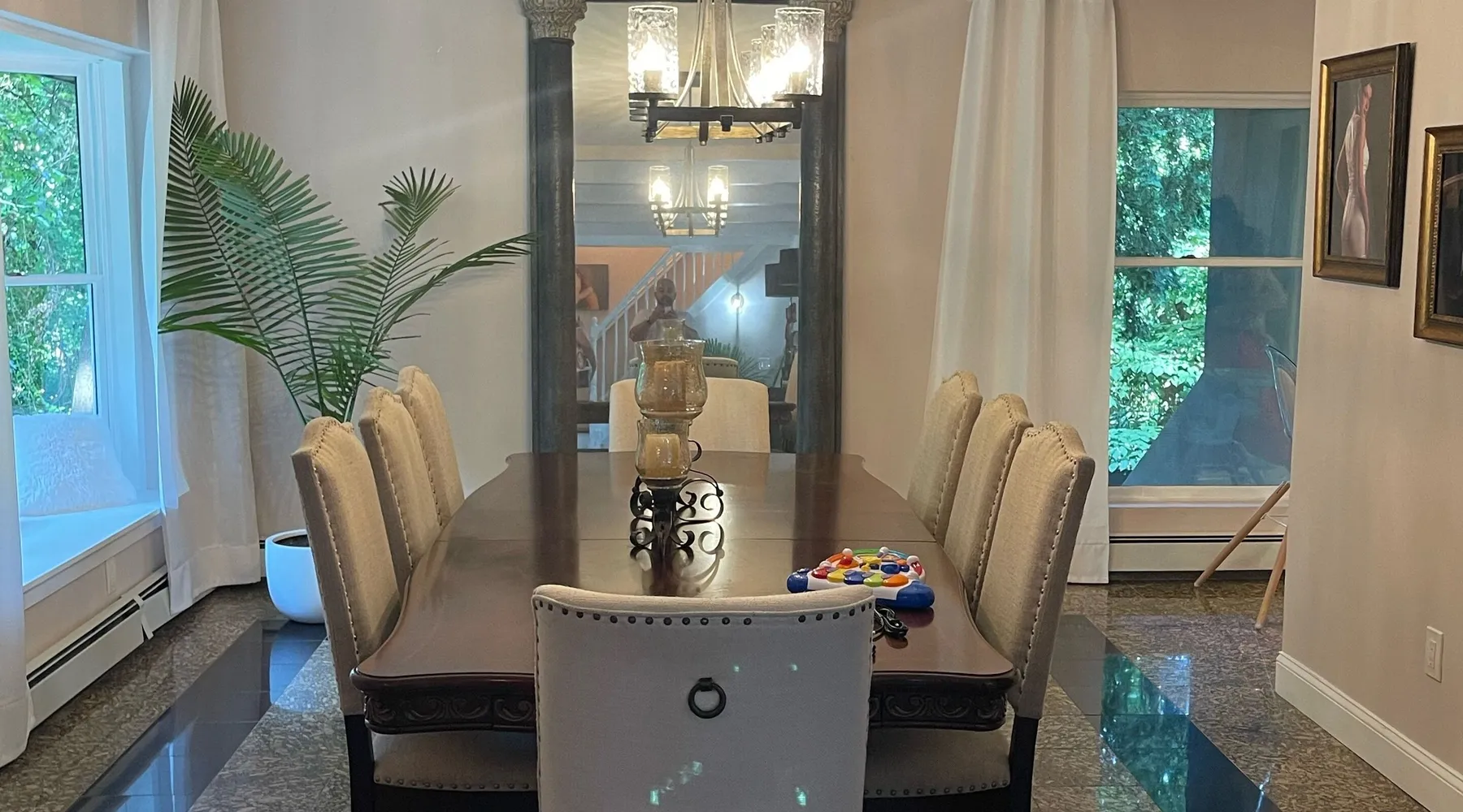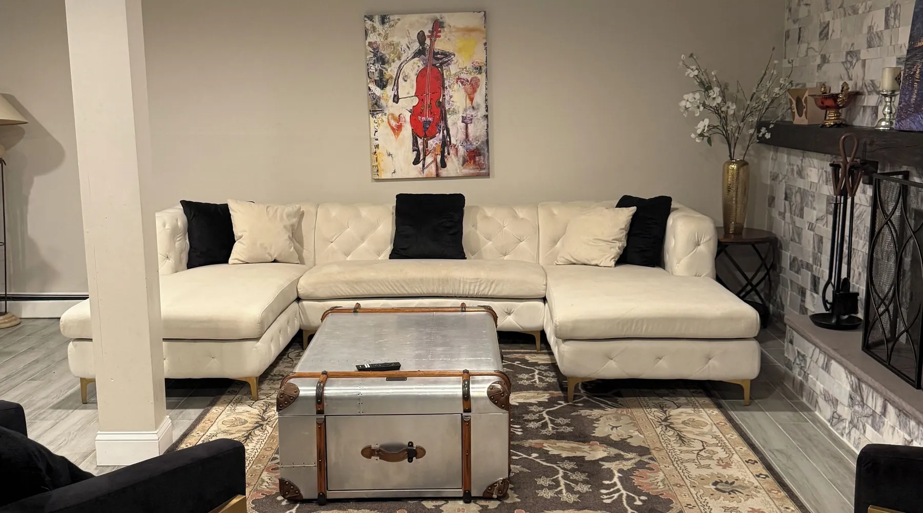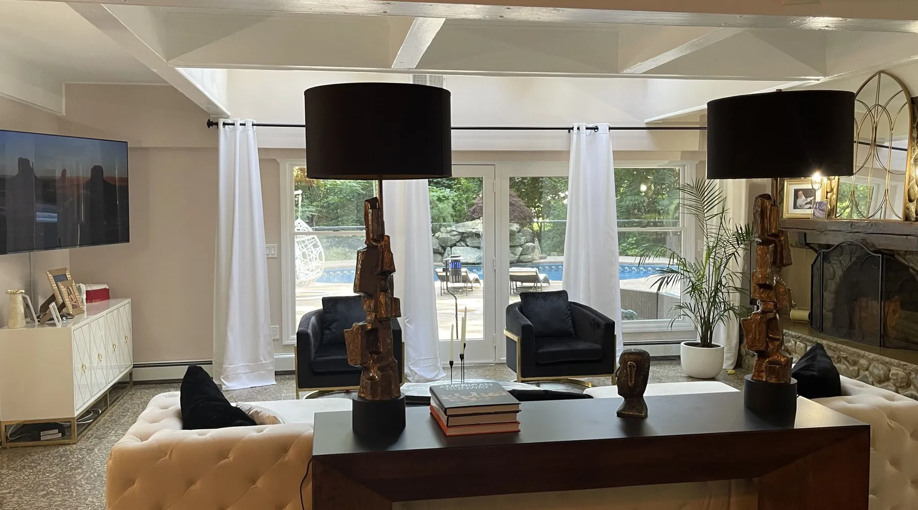 Whether you are looking for a weekend retreat or a family needing a family reunion to stay in, this stunning home is the perfect place to reconnect with each other around the Pool area and BBQ. Get ready to get inspired in this stunning home. It’s a fantastic retreat in a unique setting. We look forward to hosting you for a one-of-a-kind experience! Spacious living room Fully staked kitchen with all you need modern furniture formal dining area. Near water parks & Ski resorts The space Escape the big city crowds by visiting picturesque Franklin Lakes and staying in this designer 5BR 4.5Bath villa. Explore the local natural landmarks and scenic trails, visit exciting shopping centers and restaurants, or spend an entire day in the fully fenced backyard with the heated swimming pool and the luxurious hot tub. ✔ 5 Comfy Bedrooms ✔ 2 Living Areas ✔ Fully Equipped Kitchen ✔ Backyard (Pool, Hot Tub, Lounges, BBQ) ✔ Smart TVs ✔ High-Speed Wi-Fi ✔ Free Parking Learn more below! The space: This luxurious Franklin Lakes villa was designed with complete relaxation and comfort in mind. Its main draw is the excellent, fully-fenced backyard featuring the heated swimming pool, high-end hot tub, and relaxing lounge areas where you can relax as the tasty BBQ is prepared on the grill. Invite everyone to the living area boasting a posh designer look, and have hours of fun by watching movies and hanging out with your loved ones. Look through the double-sided fireplace and discover another cozy family room with comfortable carpeted floors and a bunk bed. Take the party to the kitchen area, which features many cooking appliances and seating areas. Serve those delicious homemade delicacies on the dining table nestled by large windows that let the natural sunlight in, creating a pleasant setting you’ll get to enjoy in the great company of family and friends. Once the sun goes down in New Jersey, retreat to four inviting bedrooms with comfortable beds that will help you recharge after a long day of Franklin Lakes adventures. ★ LIVING ROOMS ★ The luxurious living room is the heartbeat of the villa, offering a unique and upbeat setting to relax between exciting nature exploration, shopping sprees at Urban Farms and Franklin Crossing, and all the entertainment in the backyard. ✔ Comfortable U-Shaped Sofa with Pillows ✔ Smart TV ✔ Indoor Fireplace ✔ Comfy and Chic Sofa Chairs ✔ Stylish Coffee Table ✔ Designer Reading Lamps ✔ Access to the Backyard ★ KITCHEN & DINING ★ Open the ample cabinetry to find everything you need to treat your family to their favorite meals. Sort those fresh ingredients on marble countertops and use the modern cooking appliances to unleash your cooking creativity! ✔ Microwave ✔ Stove ✔ Double Oven ✔ Toaster ✔ Coffee Maker ✔ Hot Water Kettle ✔ Smart Refrigerator/Freezer ✔ Dishwasher ✔ Sink - Hot & Cold Water ✔ Trays ✔ Glasses ✔ Silverware ✔ Pots & Pans The dining area is ideally nestled by the kitchen, allowing you to easily set the table and enjoy tasty family meals. Sit at the kitchen island or the breakfast table and see how the chef works their magic. ✔ Dining Table with Seating for 8 ✔ Breakfast Table with Seating for 4 ✔ Kitchen Island with Seating for 3 ★ SLEEPING ARRANGEMENTS - 5 BEDROOMS ★ Explore Franklin Lakes, visit the attractions, soak up the sun by the pool, and then retreat to four comfortable bedrooms to rest so you can do it all again tomorrow. ♛ Bedroom 1: Queen-Size Bed + Sofa Bed, Ensuite Bathroom ♛ Bedroom 2: Queen-Size Bed + Sofa Bed, Ensuite Bathroom ♛ Bedroom 3: Single Bed ♛ Bedroom 4: Bunk Bed (Twin over Twin) ♛ Bedroom 5: Bunk bed (Full over Full) ♛ Second Living Room: Bunk Bed (Twin over Twin) All bedrooms come with a similar set of amenities. ✔ Premium Pillows, Linens, and Sheets ✔ Smart TVs ✔ Closets with Hangers and Shelves ✔ Dressers with Spacious Drawers ✔ Night Stands with Reading Lamps ★ BATHROOM ★ To ensure you have a perfect, carefree stay, we have prepared essential toiletries and fresh towels in all four relaxing bathrooms. Another half bath is accessible from the living area, ensuring maximum convenience. ✔ Soaker Tub with a Shower ✔ Walk-In Shower ✔ Vanity ✔ Mirror ✔ Toilet ✔ Towels ✔ Essential Toiletries ★ BACKYARD ★ Marvel at the serene and lush natural surroundings while swimming in the heated pool, unwinding in the luxurious hot tub, or chilling on comfy lounges. The fully fenced backyard offers a tranquil and soothing space where you can spend the entire day. ✔ Swimming Pool with a Slide and a Waterfall ✔ Luxurious Hot Tub ✔ Sun Lounges & Hanging Egg Chair ✔ Lounge Seating ✔ BBQ Grill Guest access The villa is exclusively yours, without interruption during your stay, so relax, unwind, and make yourself at home. Other than the already mentioned amenities, our home is also equipped with: ✔ High-Speed Wi-Fi ✔ Self Check-In (Lockbox) ✔ Air Conditioning ✔ Heating ✔ Washer/Dryer ✔ Iron/Board ✔ Free Parking Other things to note ★ ADDITIONAL ACCOMMODATION ★ Traveling in a larger group, or your preferred dates are already taken? You'll be happy to know that we offer additional accommodation in the area. Please browse our host profile for the complete list of gorgeous listings. ★ PET-FRIENDLY HOME ★ Bring your furry friends along for an exciting vacation. They’ll get to enjoy and run around the spacious backyard while you relax in the luxury hot tub. ★ NO SMOKING INSIDE ★ Please refrain from smoking inside the home! Any smoking evidence will result in a fee for odor removal and furniture cleaning. ★ NO PARTIES/EVENTS ★ We kindly ask you to treat our home as your own to preserve its pristine condition for future guests and your return visits. Thank you very much for your understanding Interaction with guests We will be accessible 24/7 for our guests via phone, text, Expect a quick and prompt response. 