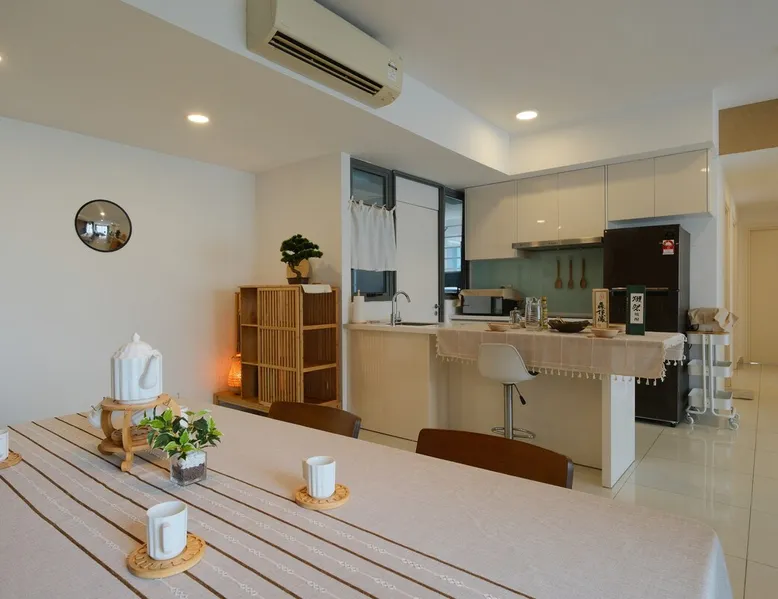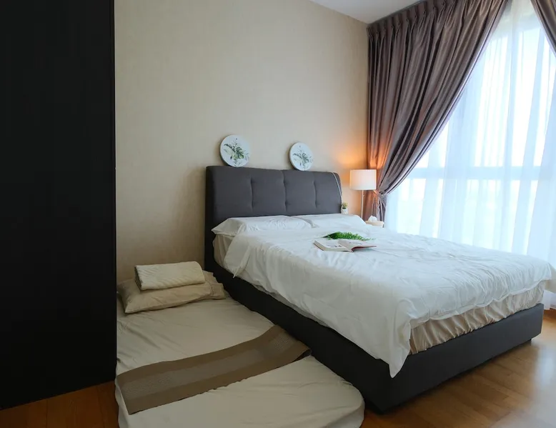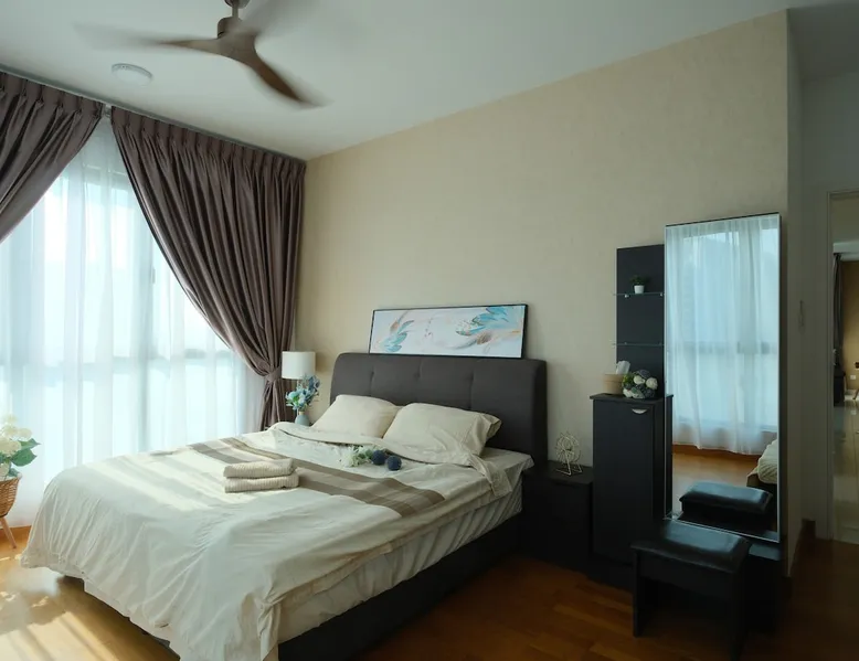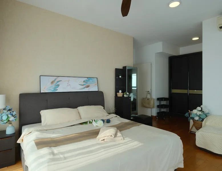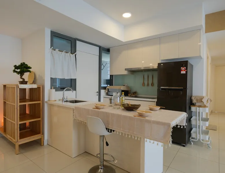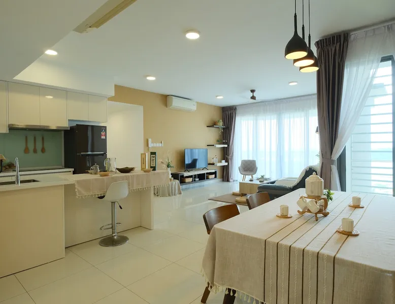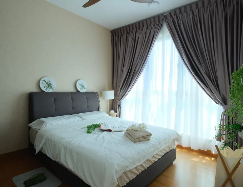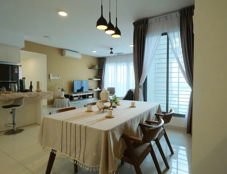 Kick back and relax in this lovely new style condominium by the Puteri Harbour waterfront. Dine at restaurants and cafes along the waterfront including Hard Rock Cafe. 5 minutes drive from Legoland, EnerG X Park and X Park. This lovely family-friendly home, equipped with kids and family entertainment and free Netflix and Youtube has everything a family could ask for. The space Comes complete with kids' playroom with play tent and toys, foosball table and free Netflix for hundreds of movies at your fingertips and high speed wifi. A sneak peek about the apartment you’ll stay in: 2 Queen Size Bed, 1 single bed 1 Sofa Bed. Your very own balcony with partial Sea & partial greenery view Kids Playhouse with Foosball table, Fun Darts and many toys 3 Private Bathrooms Dining area with Table and Chairs,water purifier Closets TV with Netflix , Youtube and more - yes I can’t live without it either High speed 300 mbps fibre optics internet Air Conditioning Fully equipped Kitchen Washing machine with drying rack ,dryer machine and cleaning stuff Guest access All facilities that come with apartment, Entertainment Deck and Sky Deck. What can you do in the complex? (the list ‘’what you can’t do’’ would be shorter) Pool + BBQ = the perfect evening Entertainment deck Sky garden Gym so you don’t go out of shape on vacation (happens everytime to me) Jacuzzi for 8 people Children playground that your kid will love Games room Yoga deck Tai Chi deck Tennis & Badminton court Other things to note Light cooking is permitted and pots and pans are provided. Please empty all trash bins prior to check-out. Please switch off all lights, fans, air-cons and TV prior to check-out.