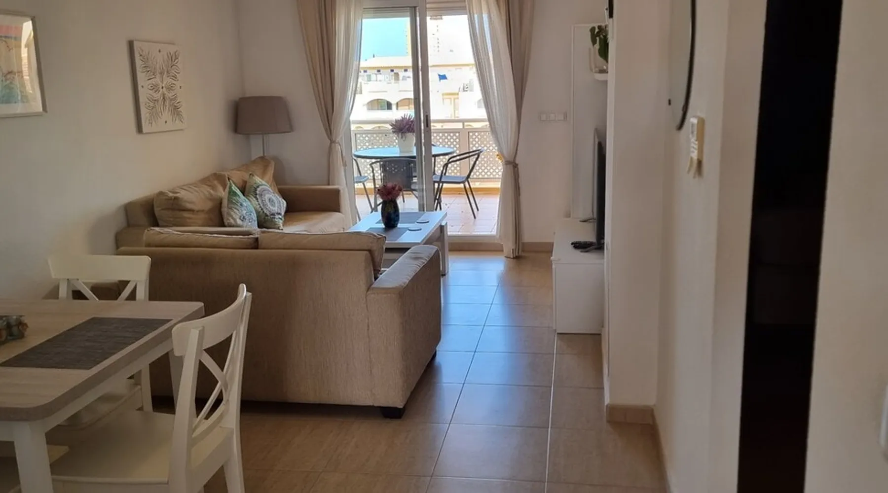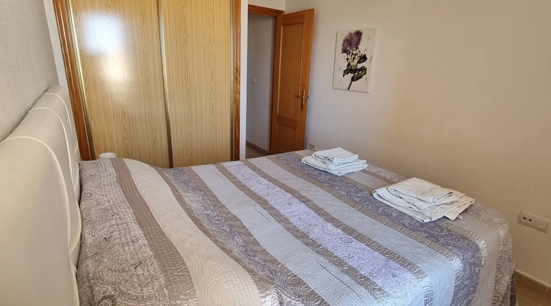 The apartment in Mar de Cristal has 2 bedrooms and capacity for 6 people. Accommodation of 75 m². The accommodation is equipped with the following items: lift, 40 m² terrace, washing machine, barbecue, iron, internet (Wi-Fi), hair dryer, balcony, heat pump, air-conditioned, swimming pool communal, open-air parking in the same building, 1 Tv, satellite tv (Languages: Spanish, English). The space The apartment in Mar de Cristal has 2 bedrooms and capacity for 6 people. Accommodation of 75 m². The accommodation is equipped with the following items: lift, 40 m² terrace, washing machine, barbecue, iron, internet (Wi-Fi), hair dryer, balcony, heat pump, air-conditioned, swimming pool communal, open-air parking in the same building, 1 Tv, satellite tv (Languages: Spanish, English). The kitchen, is equipped with refrigerator, microwave, oven, freezer, dishwasher, dishes/cutlery, kitchen utensils, coffee machine, toaster and kettle. Other things to note Included services - Swimming pool: Services available according to season Opening date: 04/03. Closing date: 30/11. - Arrival out of schedule - Heating - Internet Access Optional services - Air conditioning: Price: Included in the booking. - Bed linen: Price: Included in the booking. - Cot/Crib: Price: EUR 5.00 per day. Registration Details Murcia - Regional registration number VV.MU.3554-1