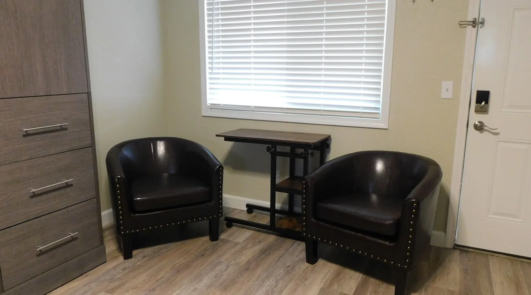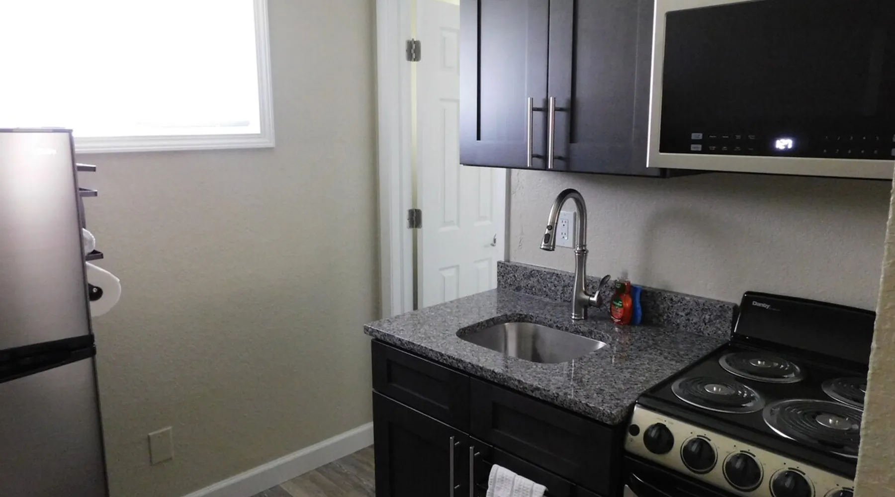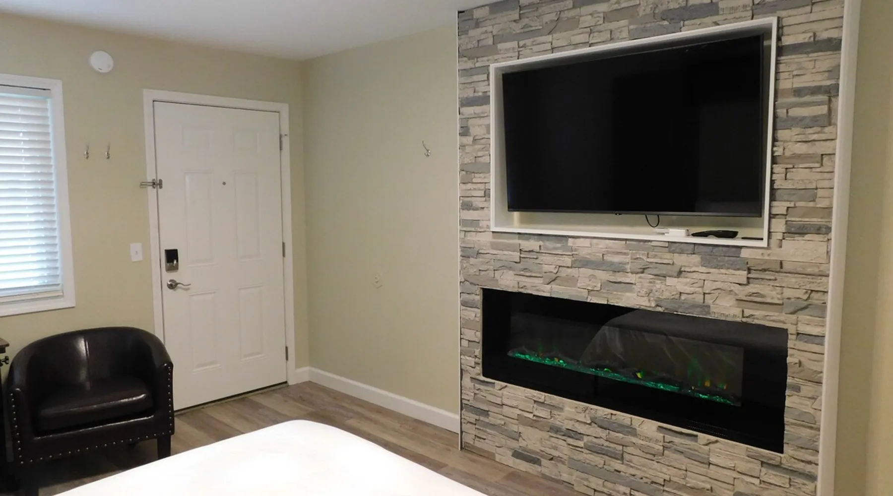 Renovated micro unit among short and long-term rentals in prime East Lansing location within a mile of MSU and two doors down from Whole Foods and in close proximity to restaurants, bars, shopping, and the Meridian Mall. Easy access to MSU sporting events, Wharton Center performances, rodeo and agricultural events, horticulture gardens, and museums including the Eli & Edythe Broad Art Museum. Furthermore, Downtown Lansing and the State Capitol is less than six miles away. The space While small, this unit is newly renovated and offers everything necessary to have a great short or long-term stay in East Lansing. The living area features a queen Murphy bed with a Tuft & Needle mattress and plush linens and four pillows for a full night’s rest. The bed easily lifts into a hidden position if you desire more room to work or do yoga. There is a closet on each side of the bed with dresser drawers, shelves, and hanging rod. There are two club chairs, an adjustable table with locking rollers, a luggage rack, 55 inch LG Smart TV, electric fireplace with 10 flame colors (operated with or without heat), sound machine, and an alarm clock with two USB ports. There are two sturdy padded folding chairs and two TV trays next to the closet if needed. The kitchen features a 20 inch oven/range with four cooktop burners, above range microwave, new cabinets, granite counter-top with undermount stainless steel sink and Kohler gooseneck pulldown faucet, and an 11 cubic foot refrigerator with a separate freezer. The kitchen is stocked with pots/pans, dinnerware and silverware, cooking utensils, wine glasses, can/bottle/wine bottle openers, vacuum wine bottle stopper, and all the basics necessary to make your stay comfortable. Also, there is a toaster and Keurig Coffee Maker (limited coffee K-pods and tea bags provided). The bathroom has a walk-in shower with glass doors and is stocked with plush towels. The vanity cabinet includes a hairdryer for your convenience. Toothpaste, disposable toothbrushes, and soaps/lotions are also provided. Guest access You will have access to open covered parking a few feet from the entry door. There is a six foot covered sidewalk to allow for dry unloading in case of rain or snow. There is a common laundry room for your convenience shared by other tenants at the north end of the building with coin-operated machines. Quarters, laundry basket, detergent, and fabric softeners, will be provided upon request. The unit has direct access via a secure Schlage Encode smart lock system utilizing a personalized 4 digit access code. A key storage box is also provided next to the entry door in case of a Wi-Fi outage. It doesn't get any easier than that!!!