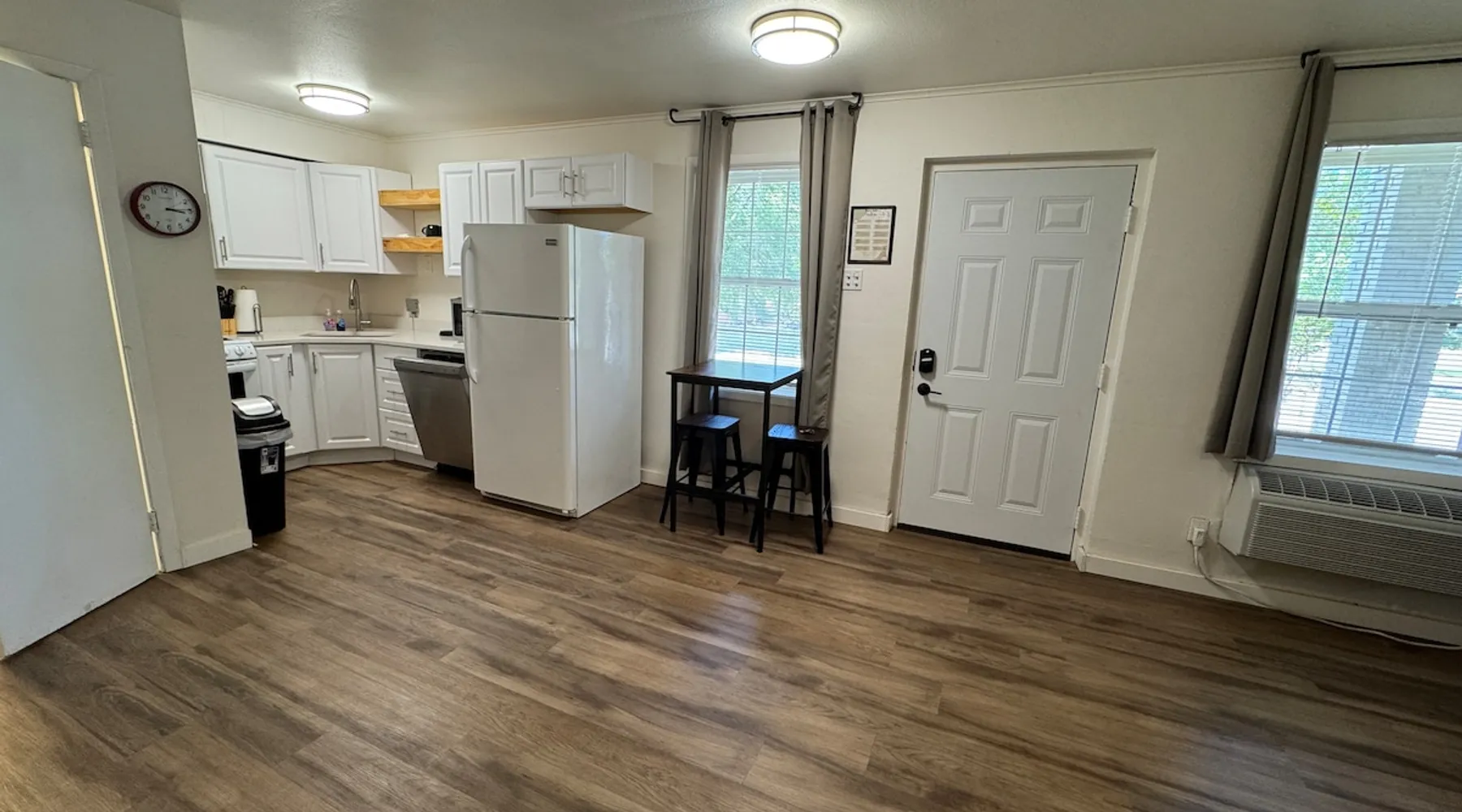 Newly remodeled studio located right across the street from UAMS and the VA hospital. Featuring a full kitchen with excellent amenities, this unit is ready to be your home during your stay in Little Rock. We specialize in stays of 30 days or longer, perfect for business travelers, medical professionals, or anyone seeking longer-term housing. Enjoy bigger savings with our extended stay discounts—the longer you stay, the more you save! The space The guest will have access to all the amenities that includes: 1. BEDROOMS - has a QUEEN bed, along with USB lamps and table, allowing additional convenience for your wireless devices. 2. BATHROOM - Features bath amenities, with full tub. 3. KITCHEN - Equipped with a FULL kitchen, with stove, dishwasher and full size refrigerator. 4. 55" Roku TV - perfect for movie time! 5. Free Parking on the premises 6. Enjoy 1G MBPS WIFI Guest access 1. You will have access to the entire unit, you may effortlessly enter the unit via smart lock, granting access to the unit with a simple tap, epitomizing the harmony between technology and convenience. A code will be given to you 24-48 hours prior to your arrival. 2. We have a few units of the same layout and floor plan; hence, similar pictures are in multiple listings. 3. The building is located directly across from UAMS hospital and the emergency entrance. Expect to hear ambulance sirens randomly. While it's not a big issue for most, we recommend air plugs for sound sensitive guests. 4. The building has some entrance steps to walk up from the parking lot. 5. Please ensure that your animal/pets are well-behaved and supervised during your stay. Guests are welcome to bring a maximum of two animals only, please note that additional or unauthorized animals/pets will incur a charge of $150 per pet. Pet owners are responsible for tidying up the property after taking their animals/pets outdoors. A $50 fee will be added to reservations that require additional cleaning outside after animals/pets. 6. No smoking or vaping of any kind inside the unit or garage. There will be an additional cleaning fee of $500 per incidentals. 7. Please note this unit DOES NOT have an all-in-one washer/dryer combo. Enjoy the convenience of our on-site laundry room, available for complimentary use by all in-house guests. Keep your clothes fresh and clean with ease during your stay. 8. Quiet hours are observed from 9 PM to 7 AM daily to ensure a peaceful environment for all guests and neighbors. Other things to note Location: - Nearby Bus Stops (4 minute walk) For exploring, here are some of the drive times to popular destinations: - Pharmarcies nearby (Wallgreens) - 2 minutes (3 miles away) - Supermarket nearby (Target) - 5 minutes (5 miles away) - Fast food nearby - 5 minutes (Less than 5 miles away) - Bill and Hillary Clinton National Airport - 15 minutes (7 miles) - Big Dam Bridge - 15 minutes (7 miles away) - Little Rock Zoo - 5 minutes ( 1 mile away) - War Memorial Stadium - 4 minutes Book now and feel the comfort of your home away from home!