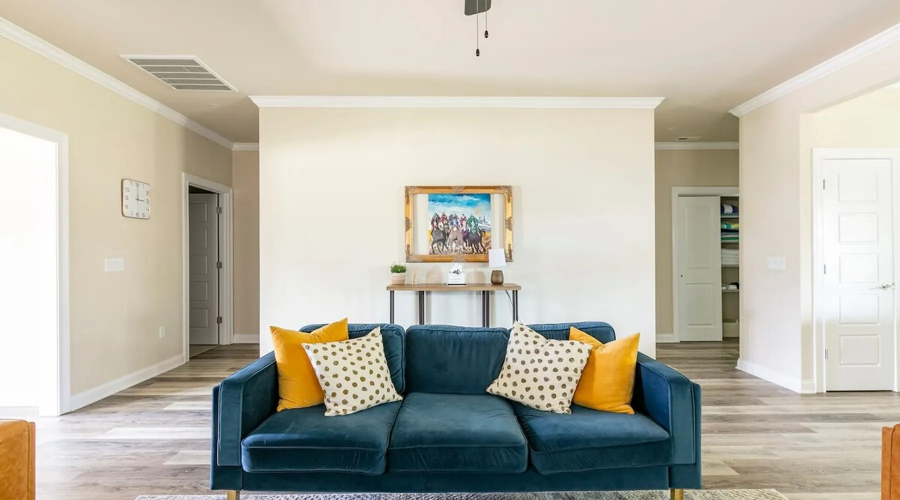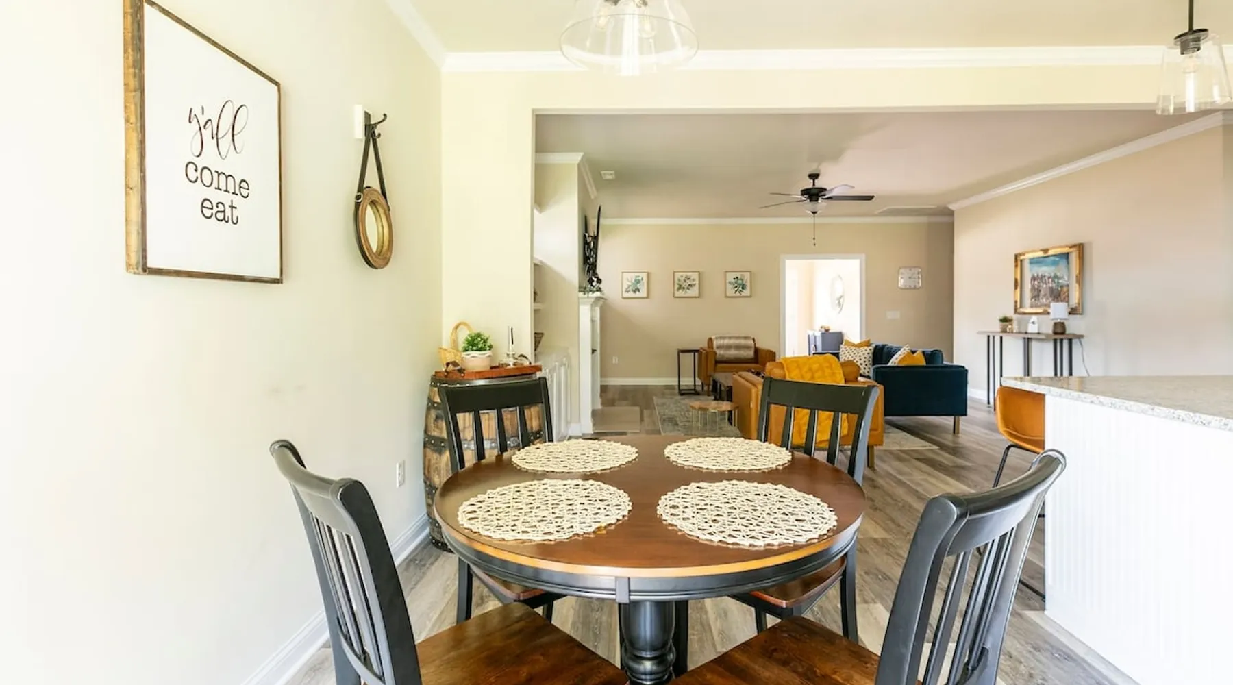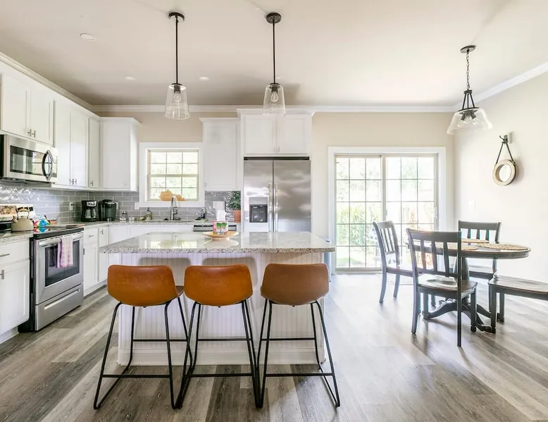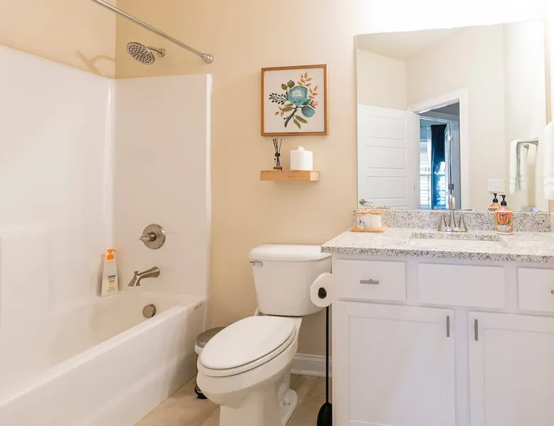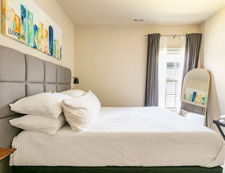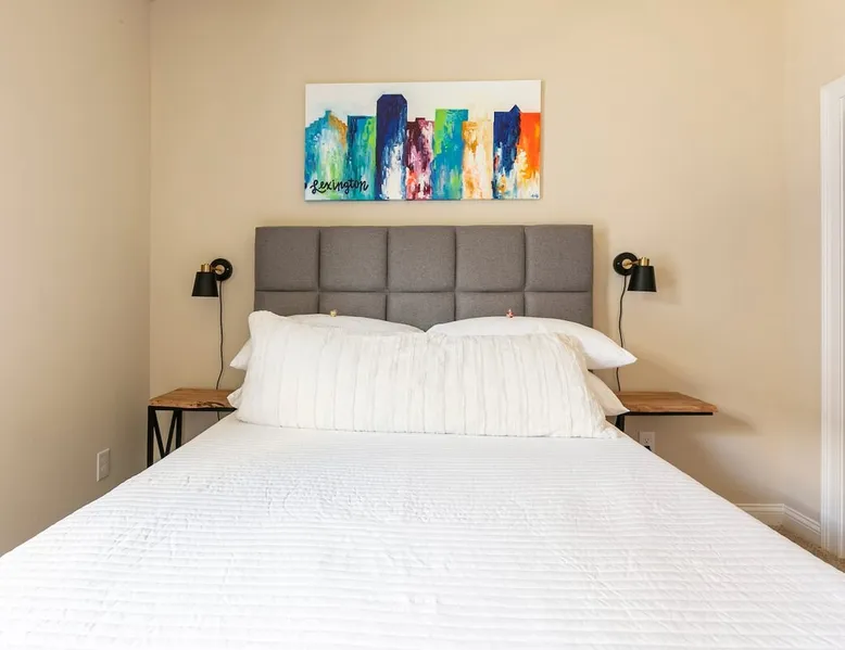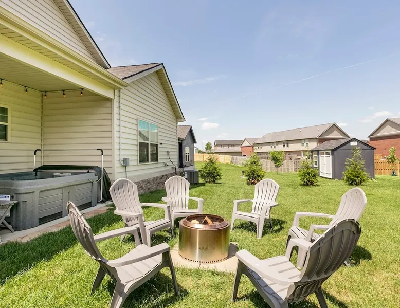 Unbeatable location for the best experiences in Central Kentucky! You will be close to the Kentucky Horse Park, historic Keeneland, downtown Midway, the Ark Encounter, Rupp Arena and downtown Lexington, UK sporting events, golf courses, and several highly desirable distilleries including our personal favorite - Buffalo Trace Distillery. There are so many great restaurants nearby! Be sure to check out our Guidebook when you book a stay at Bluegrass Retreat. The space Location, Location, Location is where you will find this adorable ne construction! Bluegrass Retreat is a vacation rental nestled in the heart of the outskirts of Downtown Lexington. Whether in town for a sporting event, horse racing, a show at Rupp Arena, work trip, Bourbon Trail, wedding, or just an incredible weekend getaway, this home offers a 5-Star experience every guest will enjoy. Bluegrass Retreat is warm and cozy and has comfortable, modern furniture. There is a natural gas fireplace that heats up the living room quickly with the flip of a switch. Above the fireplace is a Smart TV with access to our YouTube TV and Netflix subscriptions. The living room is decorative and inviting. There is a second living room with a cozy sofa and computer desk located just off the entry. It isthe perfect place to work remotely or read a book. The kitchen is full size with a dual fuel range and all features and utensils for cooking. Guests can enjoy the bar and dining table while staying with us. Our 3 bedrooms are carpeted and have very comfortable beds with luxurious linens and pillows. The master bathroom has two vanities, a fully tiled shower, water closet, and soaker tub. The back patio has a hot tub that fits 5-6 adults, and a propane 2-burner Weber grill. The backyard has 6 Adirondack chairs and a large fire pit. We supply firewood, fire pit tools, roasting sticks, and S’mores ingredients. This is a single-story home with no steps into the house from the front porch or the garage. There are two steps from the dining room to the back patio. Guest access Prior to check-in, guests will receive their own unique passcode to enter through the front door. A two car garage is available for parking, in addition to the driveway which can accommodate two vehicles. Other things to note Guests will self check-in with a unique passcode using the Lockly Secure Plus Smart Lock.