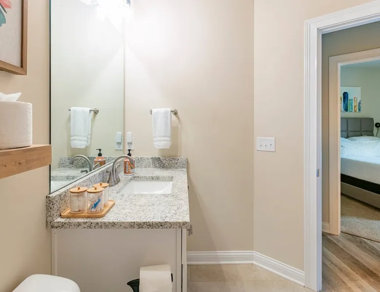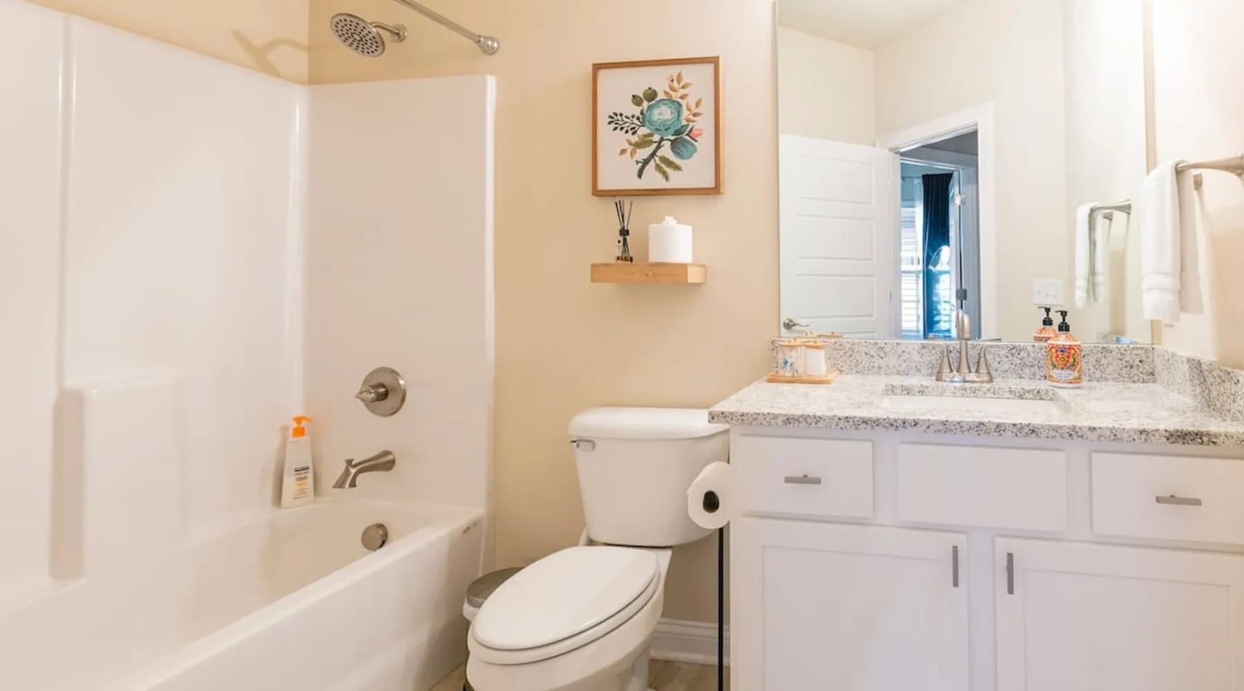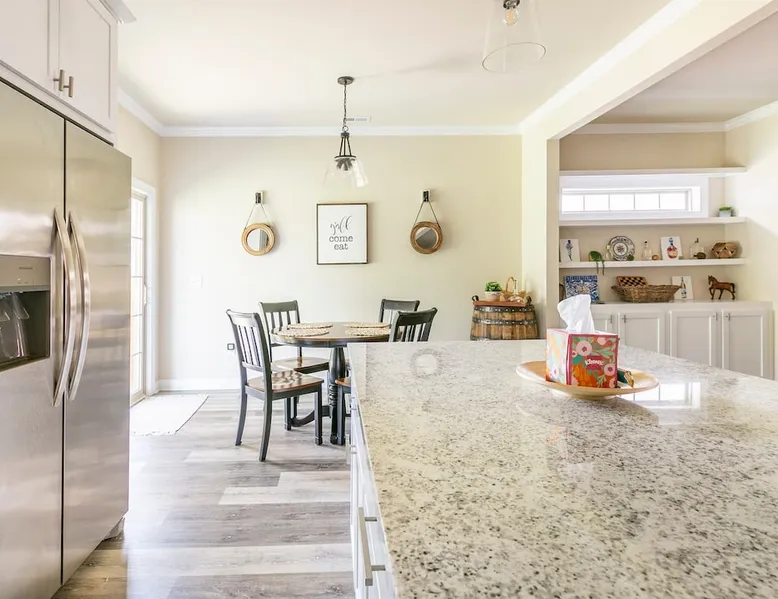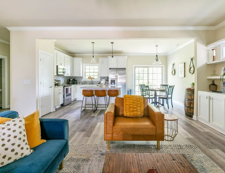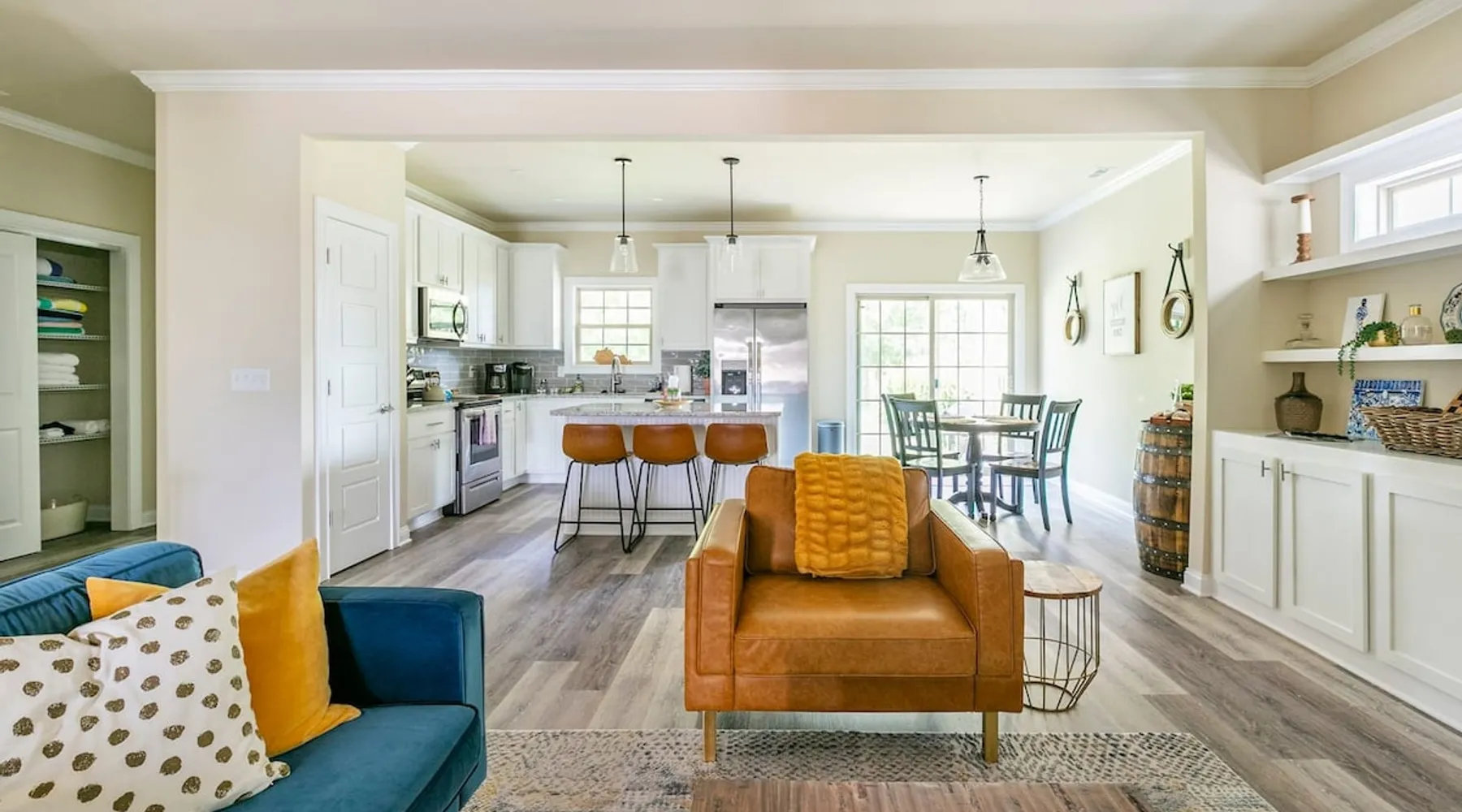 Unbeatable location for the best experiences in Central Kentucky! You will be close to the Kentucky Horse Park, historic Keeneland, downtown Midway, the Ark Encounter, Rupp Arena and downtown Lexington, UK sporting events, golf courses, and several highly desirable distilleries including our personal favorite - Buffalo Trace Distillery. There are so many great restaurants nearby! Be sure to check out our Guidebook when you book a stay at Bluegrass Retreat. The space Location, Location, Location is where you will find this adorable ne construction! Bluegrass Retreat is a vacation rental nestled in the heart of the outskirts of Downtown Lexington. Whether in town for a sporting event, horse racing, a show at Rupp Arena, work trip, Bourbon Trail, wedding, or just an incredible weekend getaway, this home offers a 5-Star experience every guest will enjoy. Bluegrass Retreat is warm and cozy and has comfortable, modern furniture. There is a natural gas fireplace that heats up the living room quickly with the flip of a switch. Above the fireplace is a Smart TV with access to our YouTube TV and Netflix subscriptions. The living room is decorative and inviting. There is a second living room with a cozy sofa and computer desk located just off the entry. It isthe perfect place to work remotely or read a book. The kitchen is full size with a dual fuel range and all features and utensils for cooking. Guests can enjoy the bar and dining table while staying with us. Our 3 bedrooms are carpeted and have very comfortable beds with luxurious linens and pillows. The master bathroom has two vanities, a fully tiled shower, water closet, and soaker tub. The back patio has a hot tub that fits 5-6 adults, and a propane 2-burner Weber grill. The backyard has 6 Adirondack chairs and a large fire pit. We supply firewood, fire pit tools, roasting sticks, and S’mores ingredients. This is a single-story home with no steps into the house from the front porch or the garage. There are two steps from the dining room to the back patio. Guest access Prior to check-in, guests will receive their own unique passcode to enter through the front door. A two car garage is available for parking, in addition to the driveway which can accommodate two vehicles. Other things to note Guests will self check-in with a unique passcode using the Lockly Secure Plus Smart Lock.