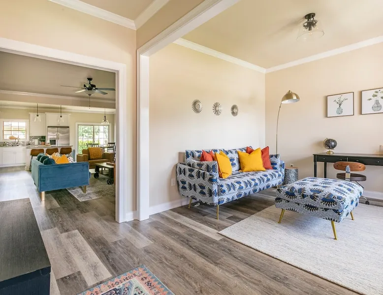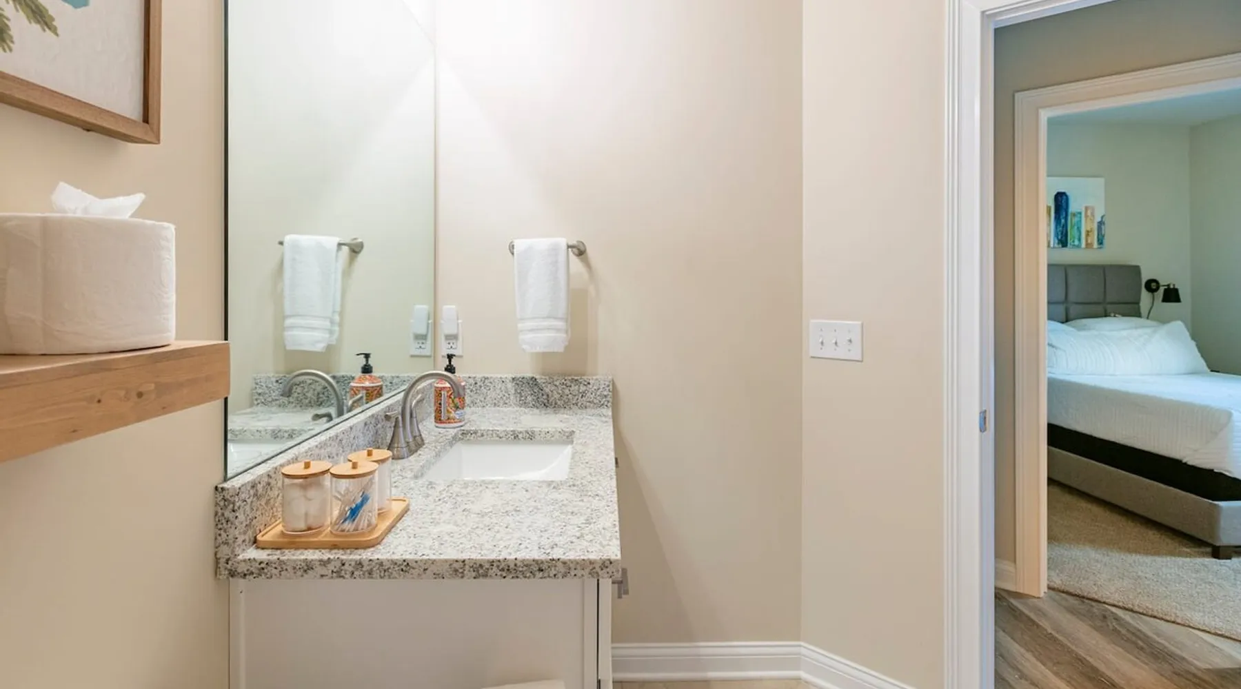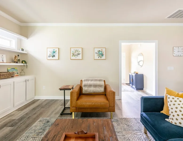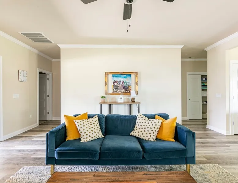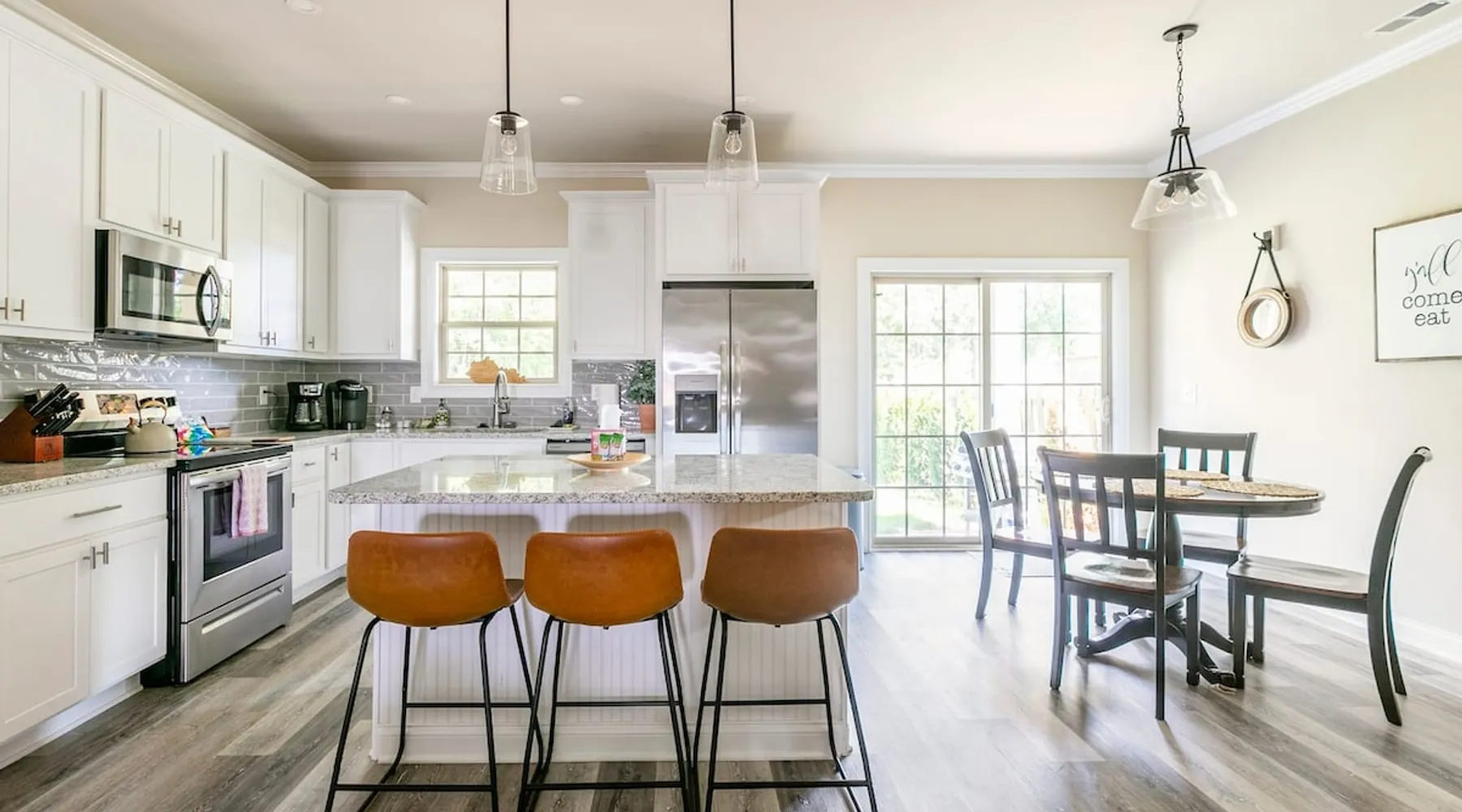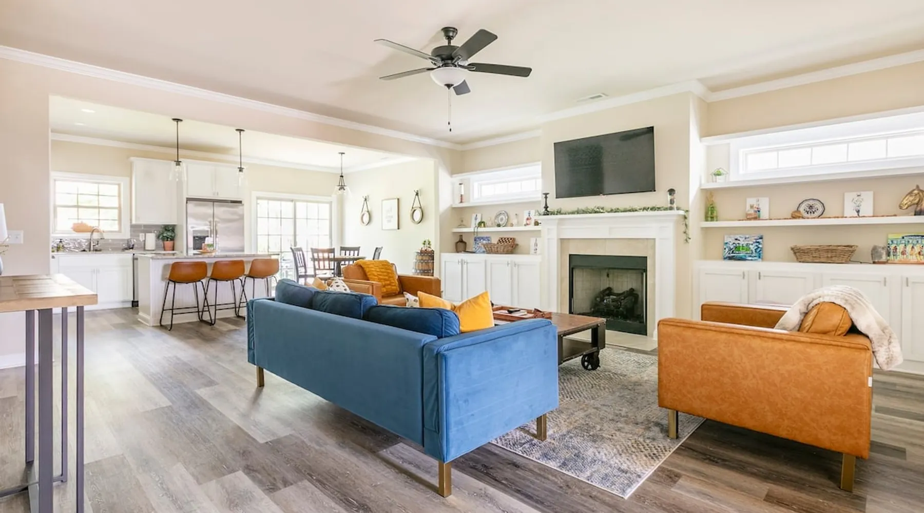 Unbeatable location for the best experiences in Central Kentucky! You will be close to the Kentucky Horse Park, historic Keeneland, downtown Midway, the Ark Encounter, Rupp Arena and downtown Lexington, UK sporting events, golf courses, and several highly desirable distilleries including our personal favorite - Buffalo Trace Distillery. There are so many great restaurants nearby! Be sure to check out our Guidebook when you book a stay at Bluegrass Retreat. The space Location, Location, Location is where you will find this adorable ne construction! Bluegrass Retreat is a vacation rental nestled in the heart of the outskirts of Downtown Lexington. Whether in town for a sporting event, horse racing, a show at Rupp Arena, work trip, Bourbon Trail, wedding, or just an incredible weekend getaway, this home offers a 5-Star experience every guest will enjoy. Bluegrass Retreat is warm and cozy and has comfortable, modern furniture. There is a natural gas fireplace that heats up the living room quickly with the flip of a switch. Above the fireplace is a Smart TV with access to our YouTube TV and Netflix subscriptions. The living room is decorative and inviting. There is a second living room with a cozy sofa and computer desk located just off the entry. It isthe perfect place to work remotely or read a book. The kitchen is full size with a dual fuel range and all features and utensils for cooking. Guests can enjoy the bar and dining table while staying with us. Our 3 bedrooms are carpeted and have very comfortable beds with luxurious linens and pillows. The master bathroom has two vanities, a fully tiled shower, water closet, and soaker tub. The back patio has a hot tub that fits 5-6 adults, and a propane 2-burner Weber grill. The backyard has 6 Adirondack chairs and a large fire pit. We supply firewood, fire pit tools, roasting sticks, and S’mores ingredients. This is a single-story home with no steps into the house from the front porch or the garage. There are two steps from the dining room to the back patio. Guest access Prior to check-in, guests will receive their own unique passcode to enter through the front door. A two car garage is available for parking, in addition to the driveway which can accommodate two vehicles. Other things to note Guests will self check-in with a unique passcode using the Lockly Secure Plus Smart Lock.