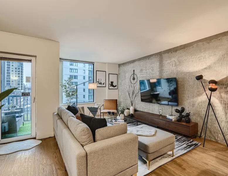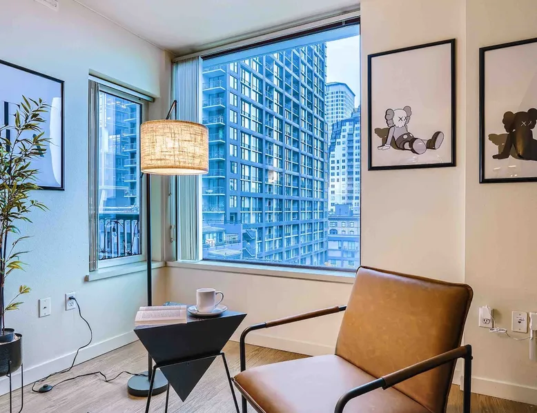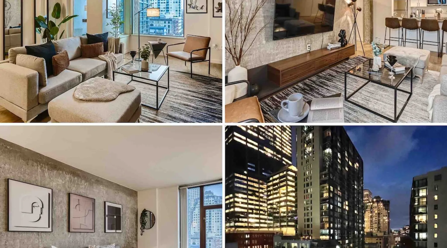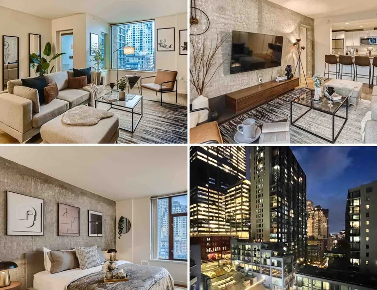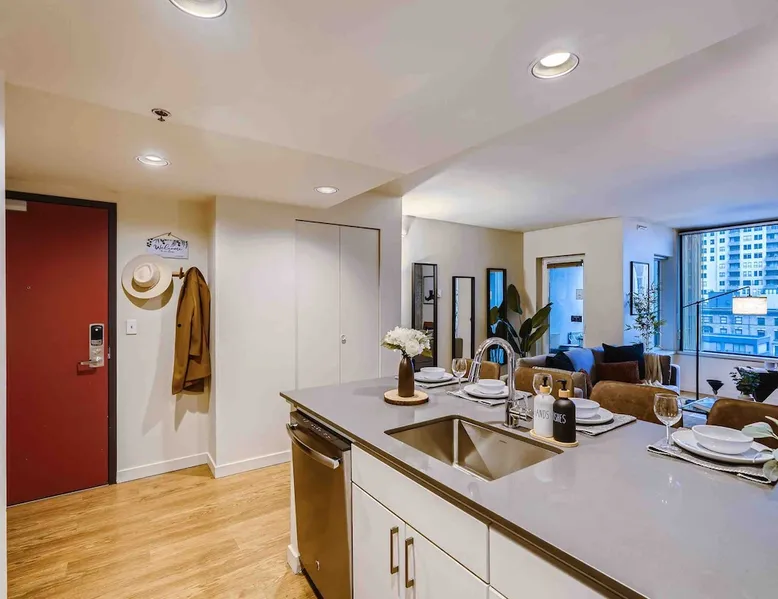 🔥🔥🔥LOCATION,LOCATION,LOCATION!!!This modern luxury building located conveniently in Heart of Downtown Seattle, just steps away from Pike Place Market, Post Alley, Waterfront Park, and notable attractions like the Seattle Art Museum. The unit is fully stocked & beautifully decorated with City & peek-a-poo Water views at the private patio! Apartments offers a downtown living experience like no other. Fine art galleries, restaurants, shopping, bars and nightlife are all at your doorstep!! The space ✨✨This spacious apartment is having a unique design and furnishing with all new and high-quality furniture. A convenient building that give you easy access to multiple area such as Waterfront, Downtown 1st Ave, Seattle Art Museum, Pike Place Market and much more.. just within walking distance! Our apartment features windows with awesome Seattle City views and has partial views of the waterfront at a private balcony, upscale appliances, and wood floors putting you in the lap of luxury. We also have a full-size folding foam mattress that can sleep comfortably two people in the living room with a 4k 65" TV with access to lots of free streaming services. Bedroom is equipped with comfortable mattress and smart Roku 50” TV that you can enjoy after a long day. The kitchen has modern granite countertops and a lot of cooking basics and utensils for making meals at home. 🟢 Portable AC is installed in the bedroom only. Tower fan is provided. ‼️‼️NO CAR IS NEEDED!! Featuring a Walk Score of 99, the building is a walker's paradise and is conveniently located near shopping, dining, and entertainment, with direct access to 1st Avenue and Waterfront. So if you not going to plan to drive outside of the city, staying at this location, you can absolutely walk to everything!! All of the tourist sightseeing is within walking distance. ‼️ There’s a covered parking garage at 1 block away and there are a few other parking options around for 2 or 3 block away from the building at lower prices. Please use the SpotHero website to find the closest parking and reserve it at the best rate during your stay. Street parking is available and it’s free from 8 pm to 8 am, paid parking from 8 am to 8 pm with a 2hr max, and free all day Sunday. ‼️We are located right in the Heart of the City so please be aware of city noise. Other things to note Easy to take Uber or Lyft. Car isn't necessarily needed since the Central Light Rail Station is just about 5 minutes walk from the unit. The Light Rail runs from UW, downtown Seattle, the SoDo district ( home to CenturyLink Field and Safeco Field ), South Center and SeaTac Airport. 🟢 Portable AC is installed in the bedroom only. Tower fan is provided. 🟢 Folding mattress and folding frame are in the closet and available for guest to use. ( This is Not a sofa bed - You can place the frame & mattress in the living room for extra sleep space ) 🟢 Front desk is exclusively for permanent residents and please contact us directly or through the booking platform for any support needed during your stay. Registration Details STR-OPLI-24-000309
