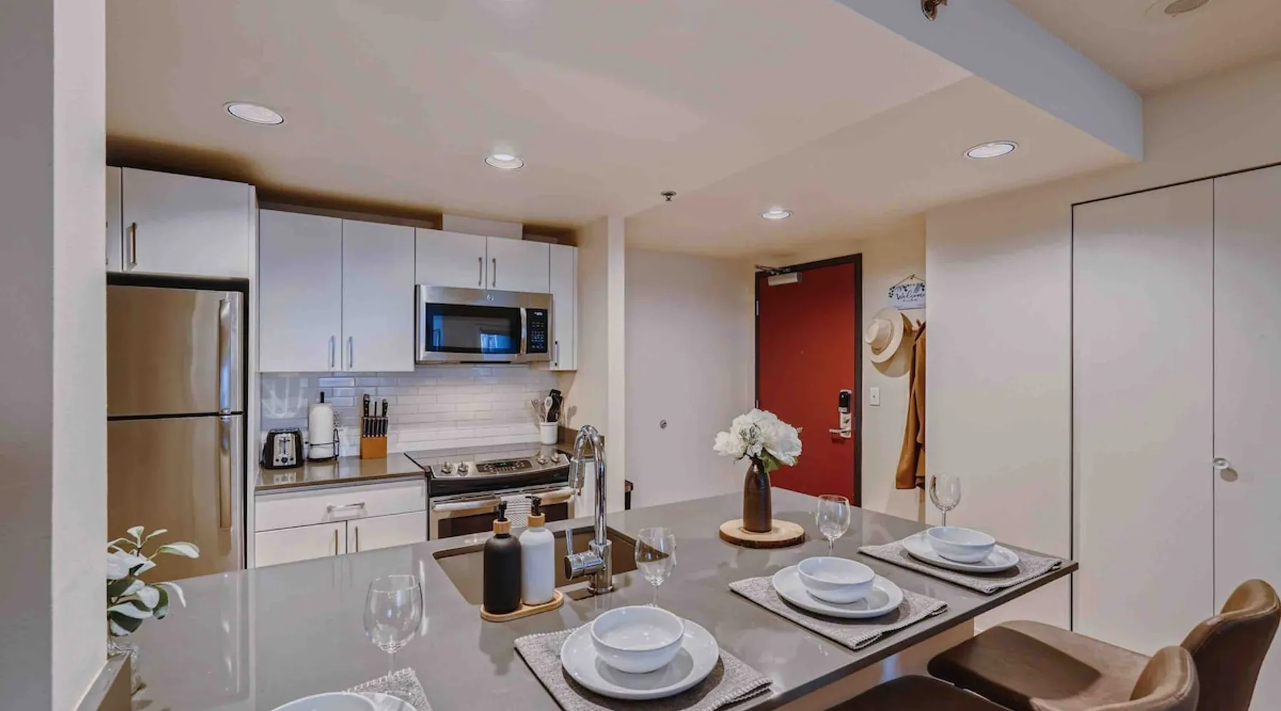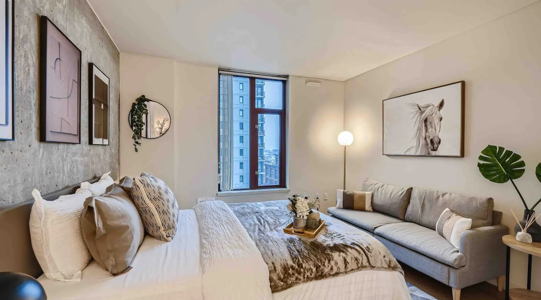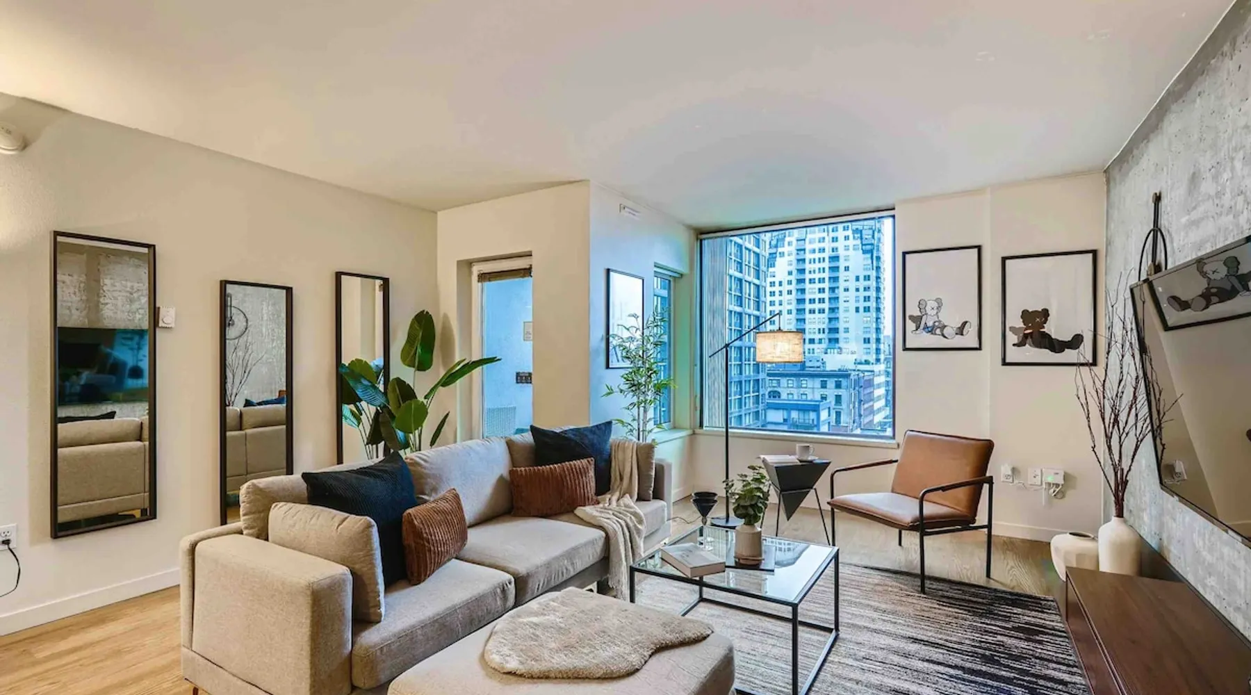🔥🔥🔥LOCATION,LOCATION,LOCATION!!!This modern luxury building located conveniently in Heart of Downtown Seattle, just steps away from Pike Place Market, Post Alley, Waterfront Park, and notable attractions like the Seattle Art Museum. The unit is fully stocked & beautifully decorated with City & peek-a-poo Water views at the private patio! Apartments offers a downtown living experience like no other. Fine art galleries, restaurants, shopping, bars and nightlife are all at your doorstep!! The space ✨✨This spacious apartment is having a unique design and furnishing with all new and high-quality furniture. A convenient building that give you easy access to multiple area such as Waterfront, Downtown 1st Ave, Seattle Art Museum, Pike Place Market and much more.. just within walking distance! Our apartment features windows with awesome Seattle City views and has partial views of the waterfront at a private balcony, upscale appliances, and wood floors putting you in the lap of luxury. We also have a full-size folding foam mattress that can sleep comfortably two people in the living room with a 4k 65" TV with access to lots of free streaming services. Bedroom is equipped with comfortable mattress and smart Roku 50” TV that you can enjoy after a long day. The kitchen has modern granite countertops and a lot of cooking basics and utensils for making meals at home. 🟢 Portable AC is installed in the bedroom only. Tower fan is provided. ‼️‼️NO CAR IS NEEDED!! Featuring a Walk Score of 99, the building is a walker's paradise and is conveniently located near shopping, dining, and entertainment, with direct access to 1st Avenue and Waterfront. So if you not going to plan to drive outside of the city, staying at this location, you can absolutely walk to everything!! All of the tourist sightseeing is within walking distance. ‼️ There’s a covered parking garage at 1 block away and there are a few other parking options around for 2 or 3 block away from the building at lower prices. Please use the SpotHero website to find the closest parking and reserve it at the best rate during your stay. Street parking is available and it’s free from 8 pm to 8 am, paid parking from 8 am to 8 pm with a 2hr max, and free all day Sunday. ‼️We are located right in the Heart of the City so please be aware of city noise. Other things to note Easy to take Uber or Lyft. Car isn't necessarily needed since the Central Light Rail Station is just about 5 minutes walk from the unit. The Light Rail runs from UW, downtown Seattle, the SoDo district ( home to CenturyLink Field and Safeco Field ), South Center and SeaTac Airport. 🟢 Portable AC is installed in the bedroom only. Tower fan is provided. 🟢 Folding mattress and folding frame are in the closet and available for guest to use. ( This is Not a sofa bed - You can place the frame & mattress in the living room for extra sleep space ) 🟢 Front desk is exclusively for permanent residents and please contact us directly or through the booking platform for any support needed during your stay. Registration Details STR-OPLI-24-000309